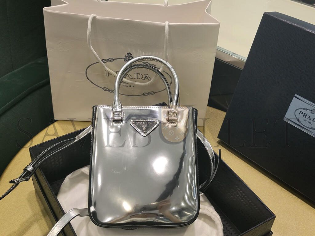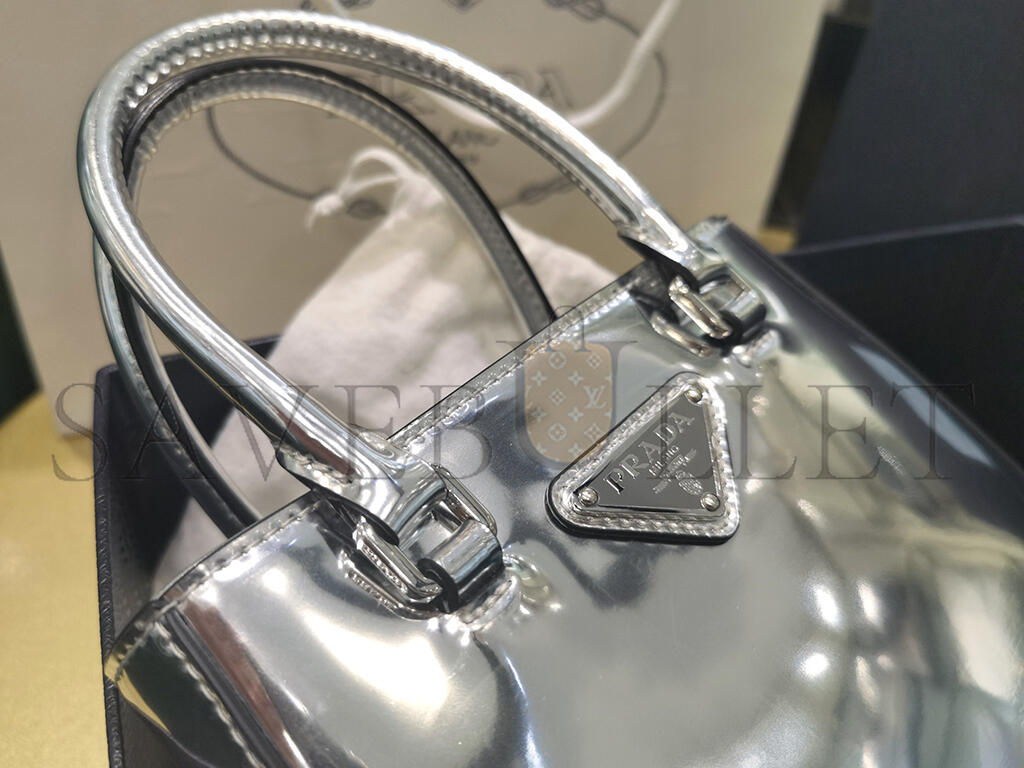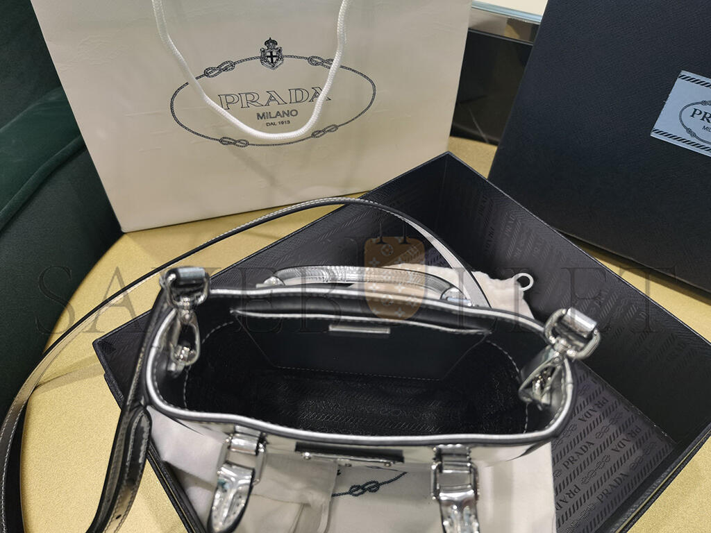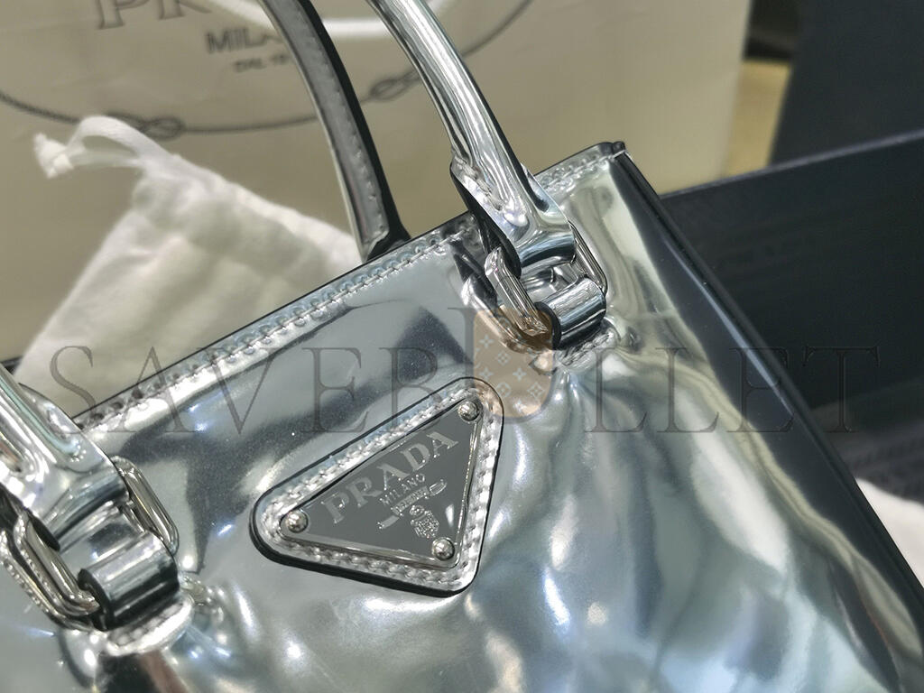 PRADA SMALL TRIANGLE PLAQUE TOTE BAG IN SILVER 1BA331 (17.5*15*5cm)