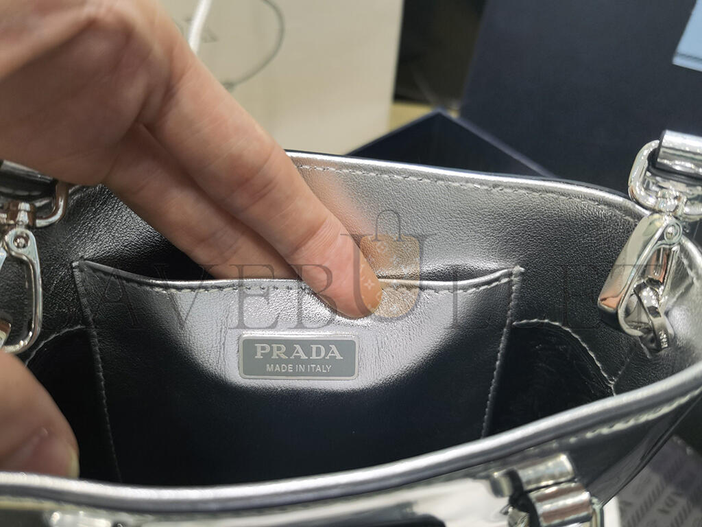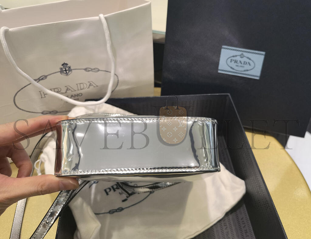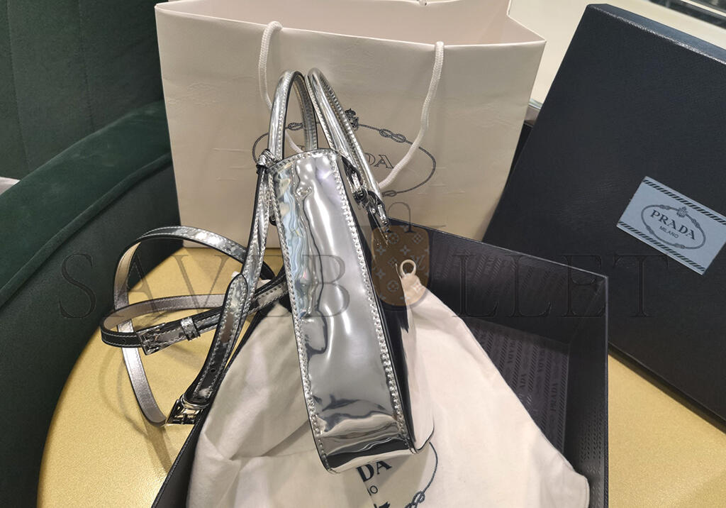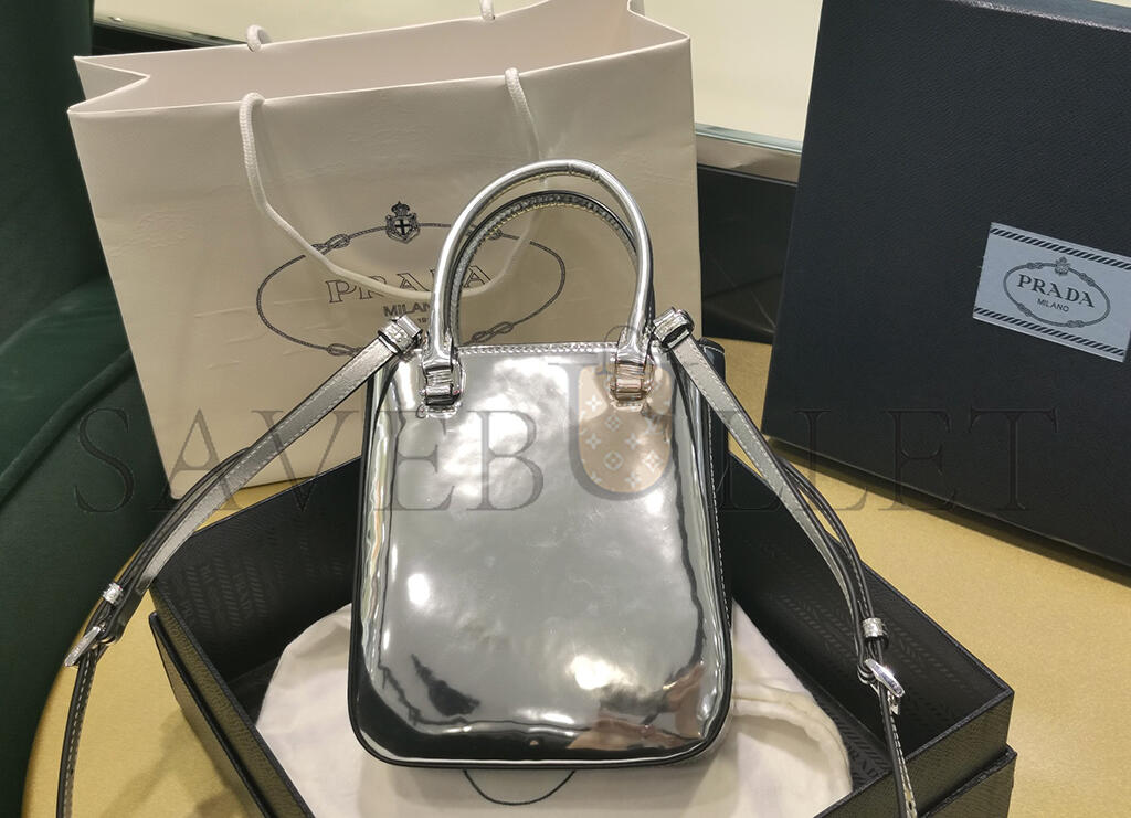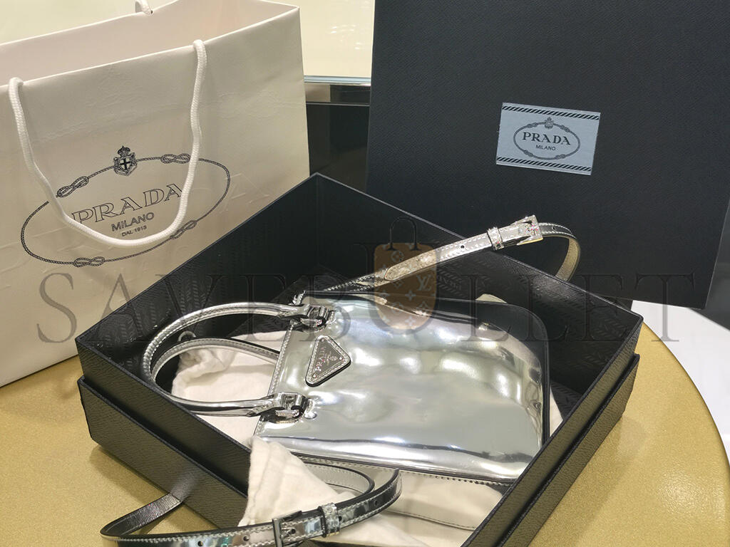 PRADA SMALL TRIANGLE PLAQUE TOTE BAG IN SILVER 1BA331 (17.5*15*5cm)