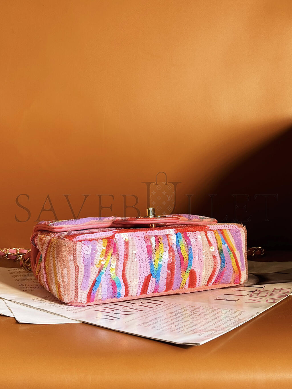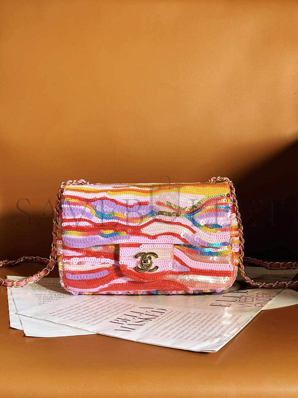 CHANEL MASTER CLASSIC FLAP CF 24C EMBROIDERED SATIN SEQUIN SHOULDER BAG A69900 (20*12*6cm)