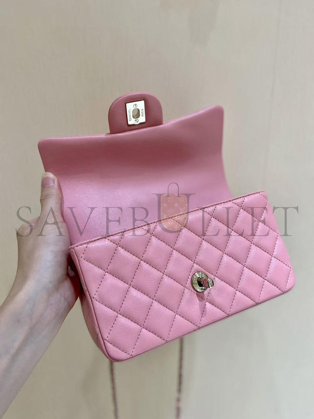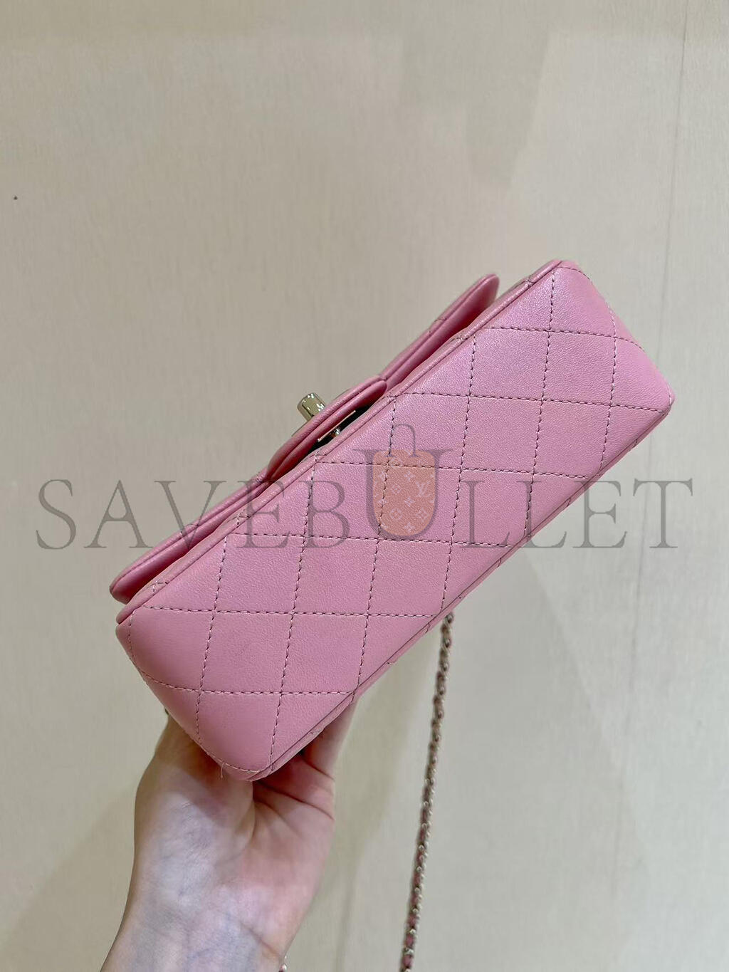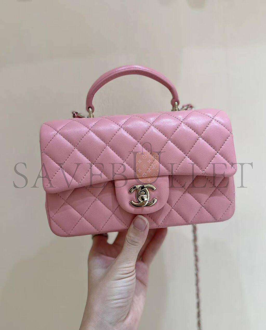 CHANEL QUILTED TOP HANDLE MINI RECTANGULAR PINK LAMBSKIN AS2431 (20*12*6cm)