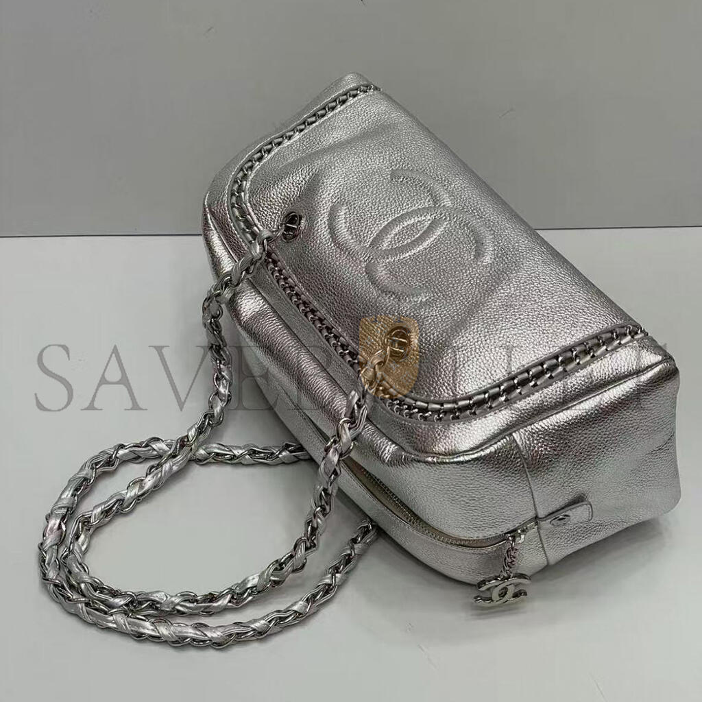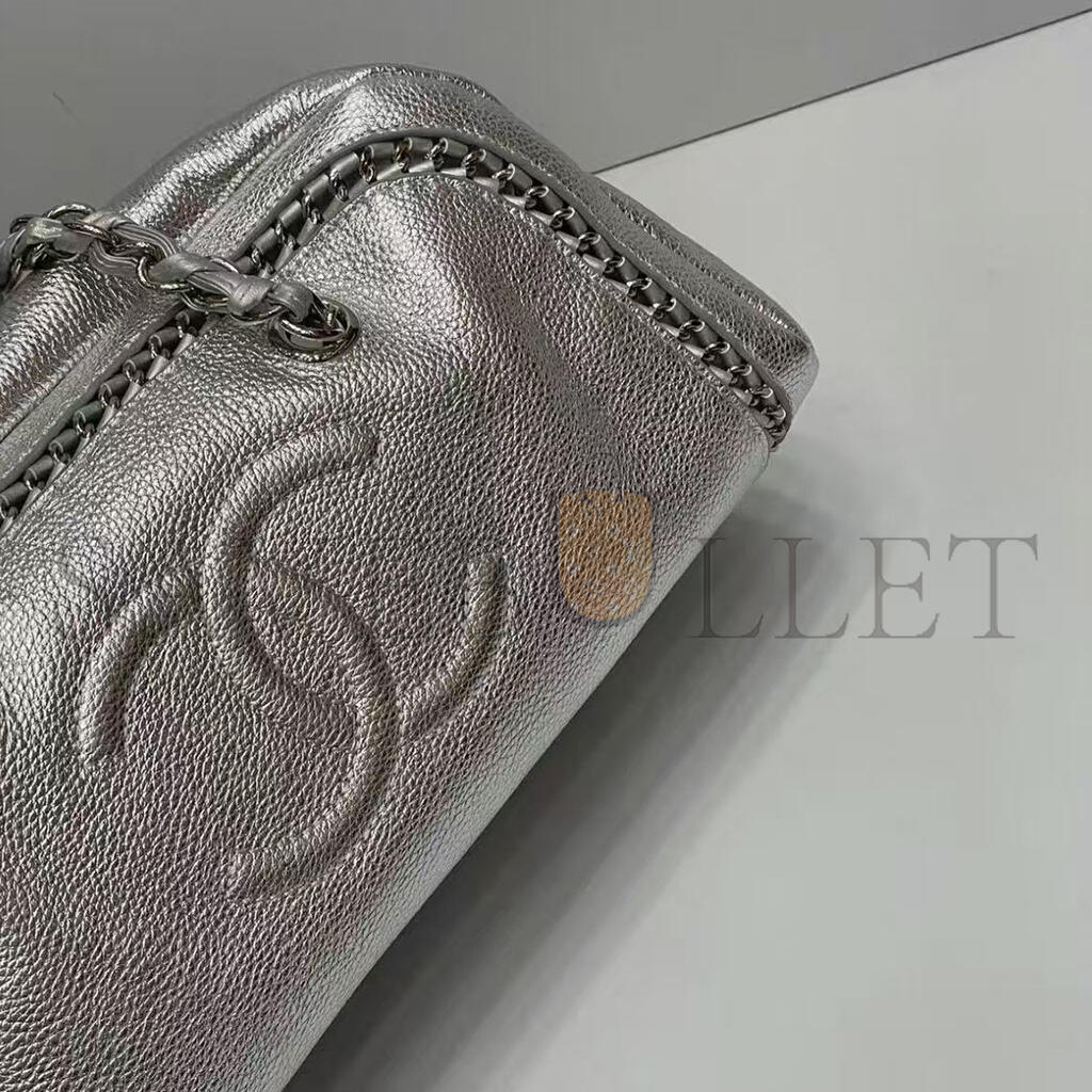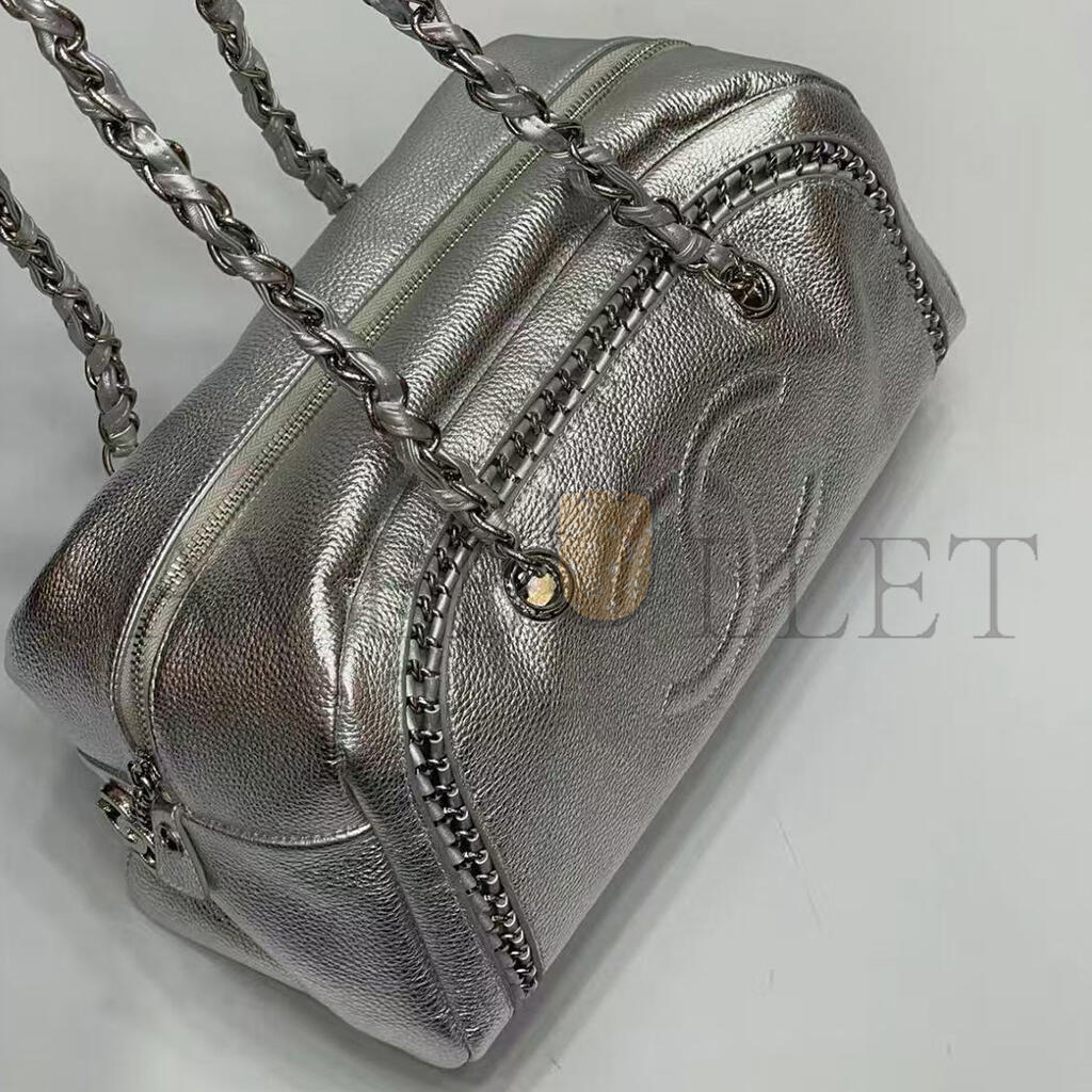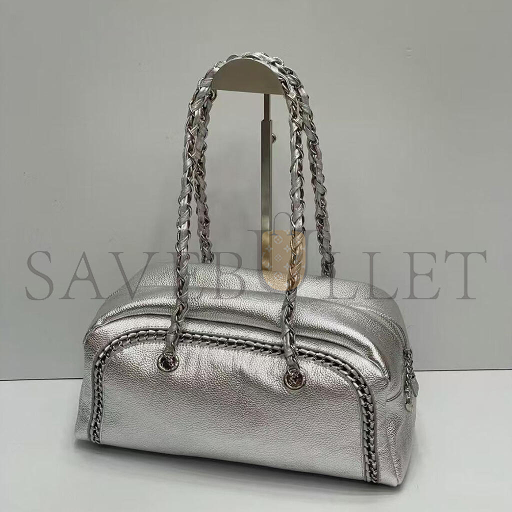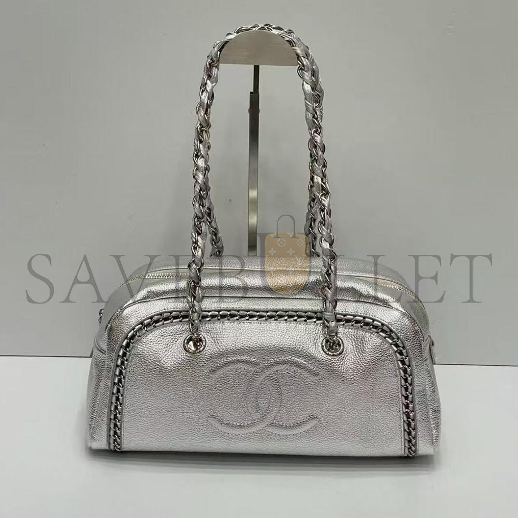 CHANEL METALLIC GRAINED CALFSKIN LUXE LIGNE BOWLER BAG (33*17*15cm)