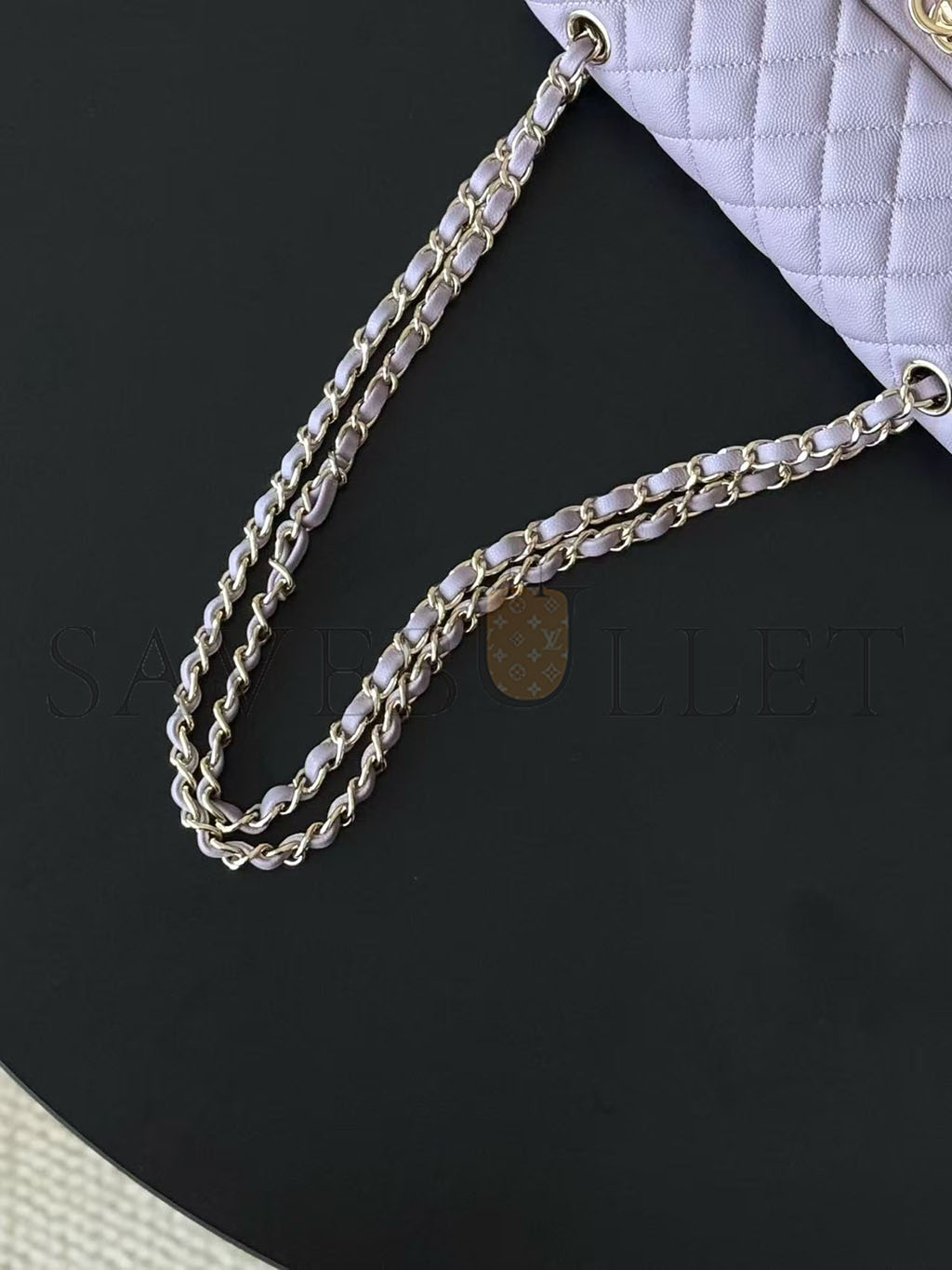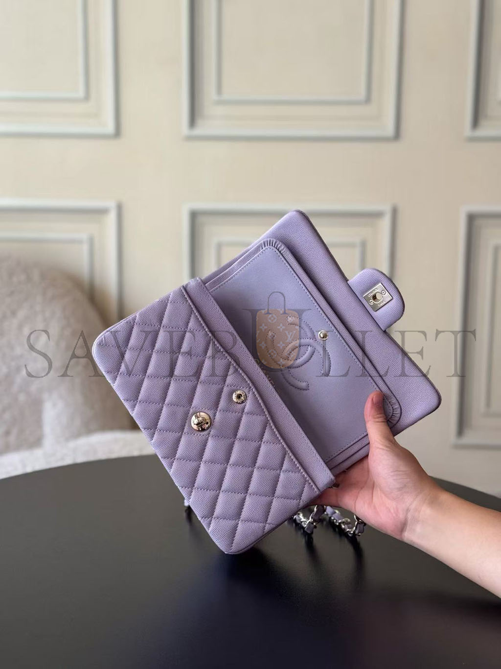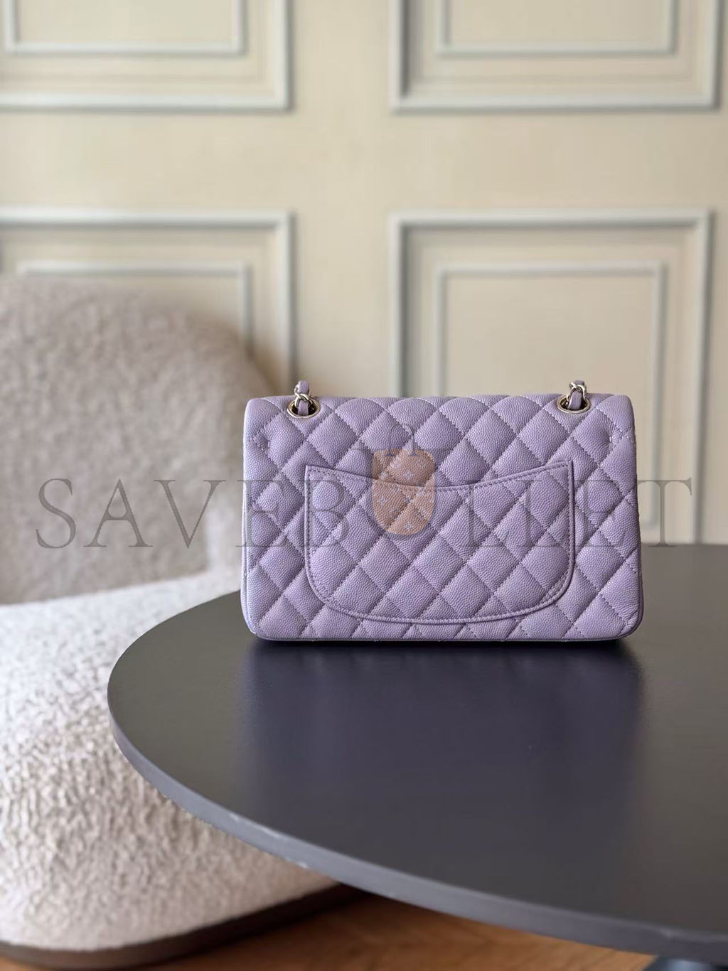 CHANEL SMALL DOUBLE FLAP BAG IN PURPLE CAVIAR QUILTED PATTERN A01113 (23*14*6.5cm)