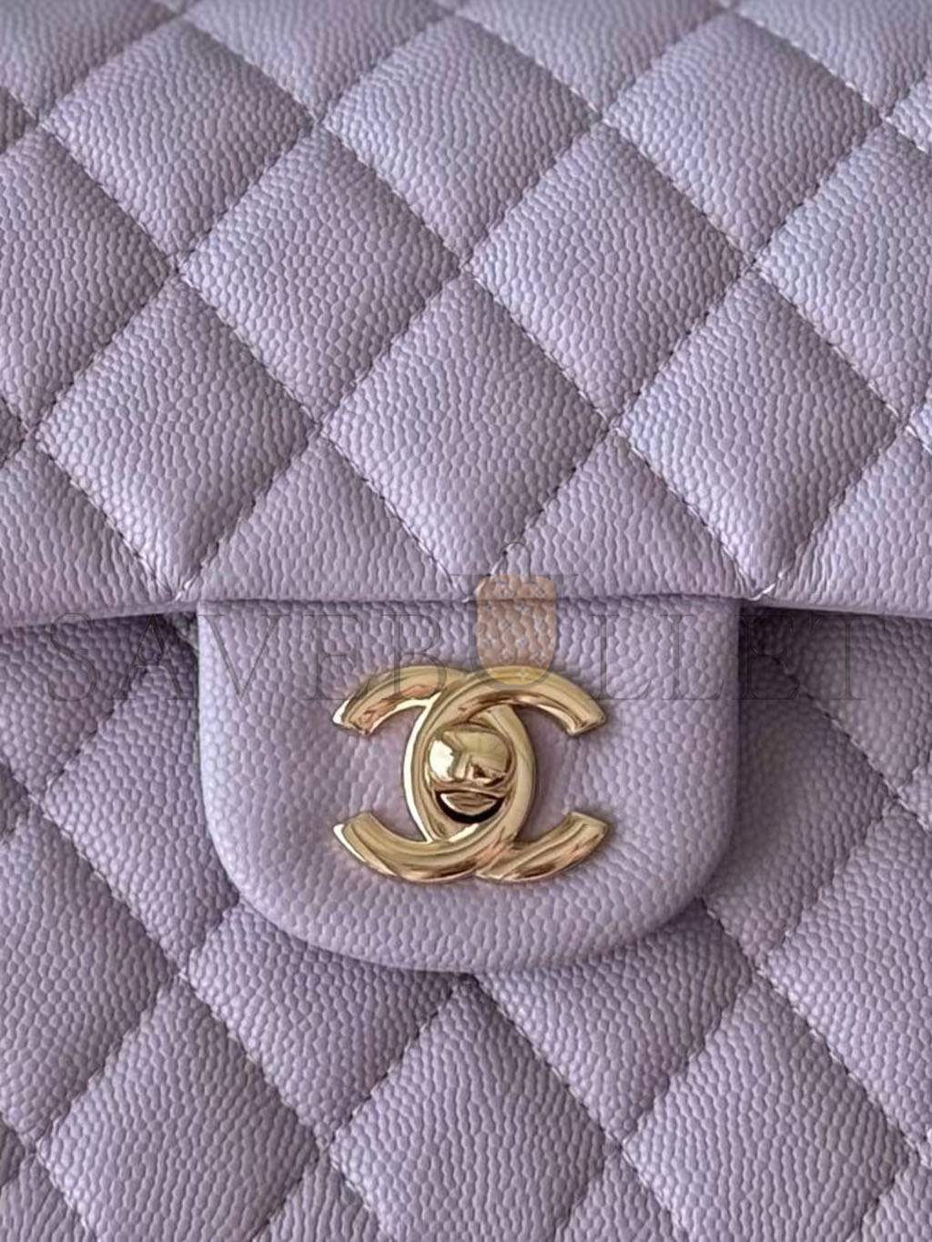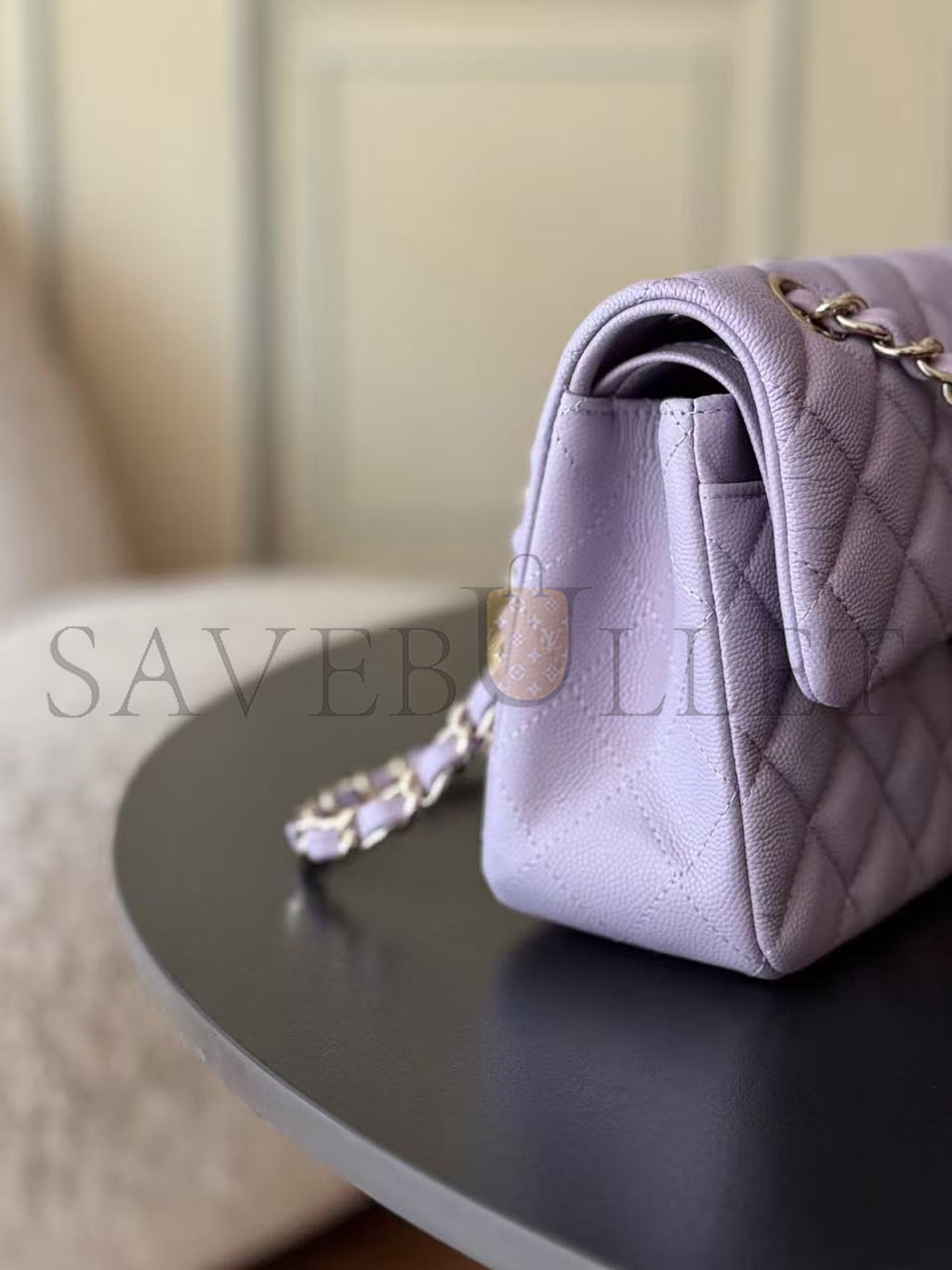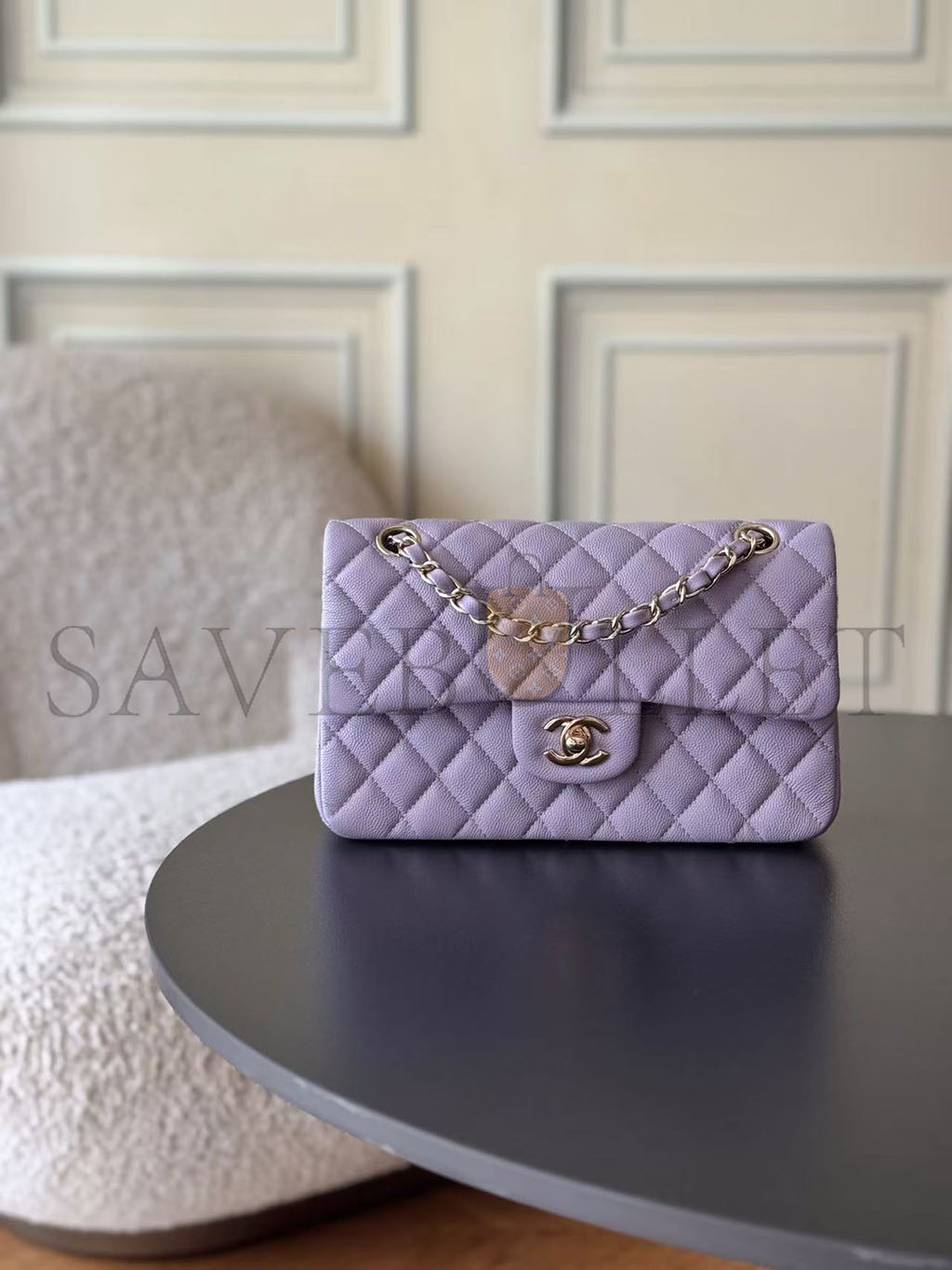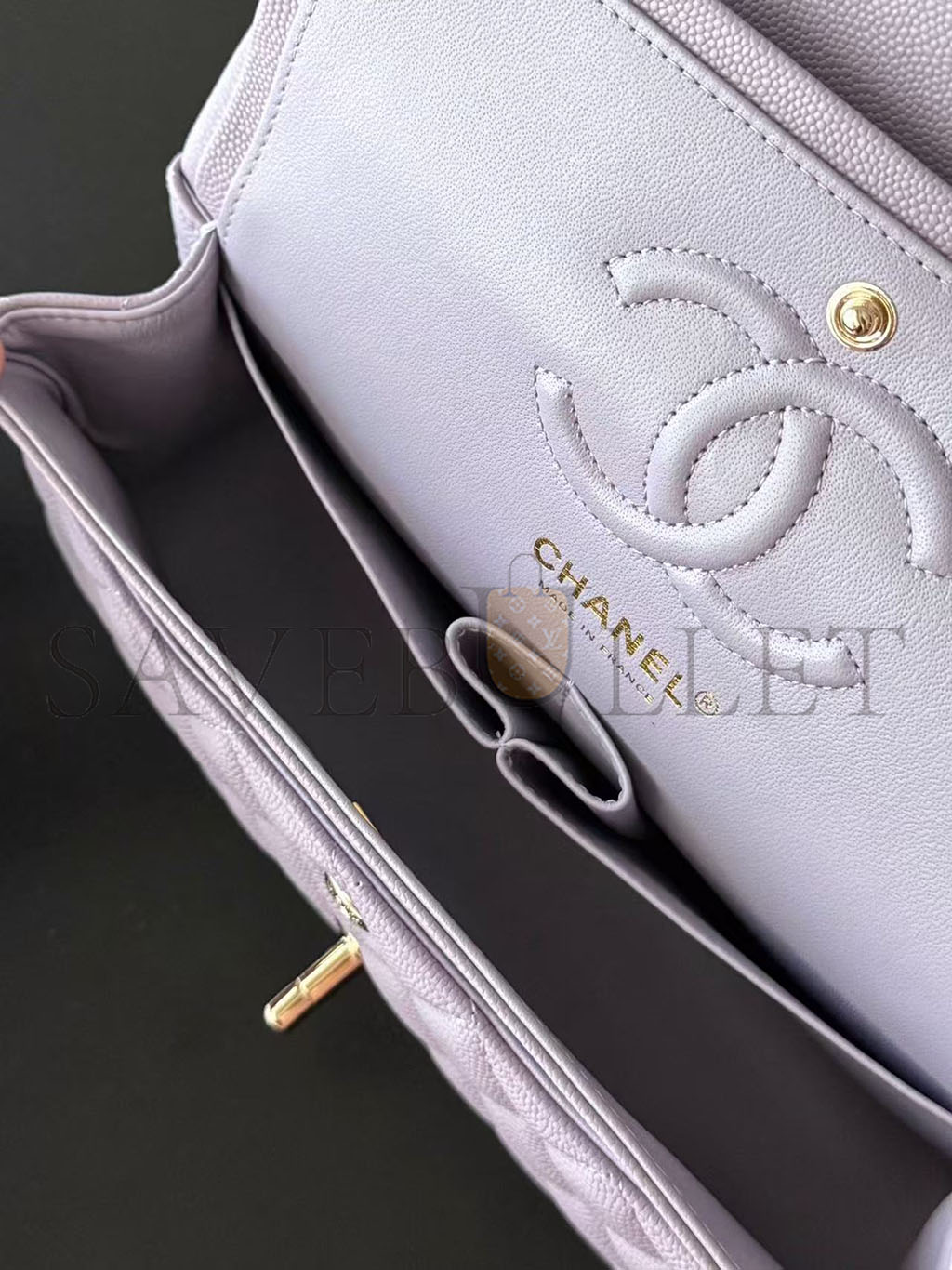 CHANEL SMALL DOUBLE FLAP BAG IN PURPLE CAVIAR QUILTED PATTERN A01113 (23*14*6.5cm)