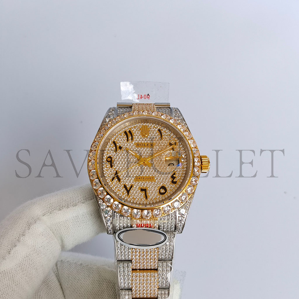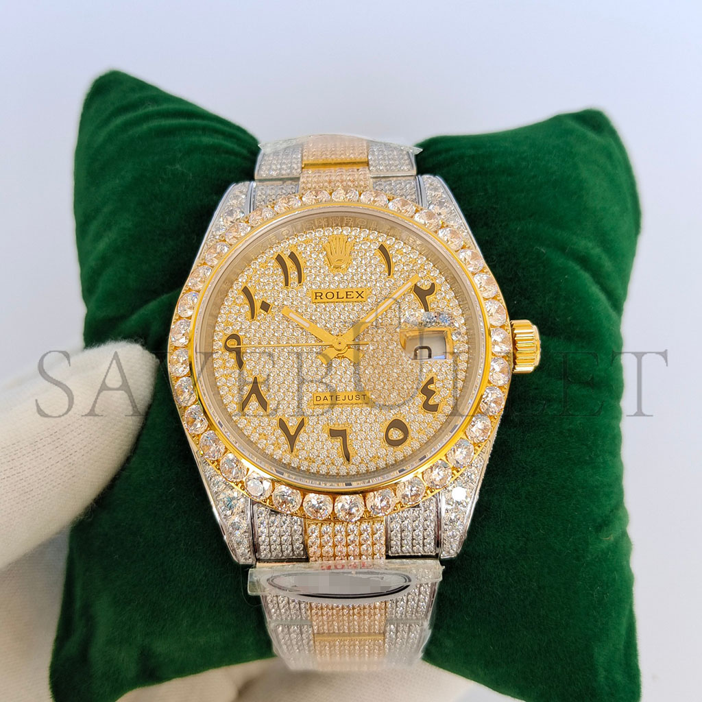ROLEX DATEJUST SERIES MECHANICAL MEN'S WATCH FULL DIAMOND SAPPHIRE CRYSTAL, 41MM DIAMETER