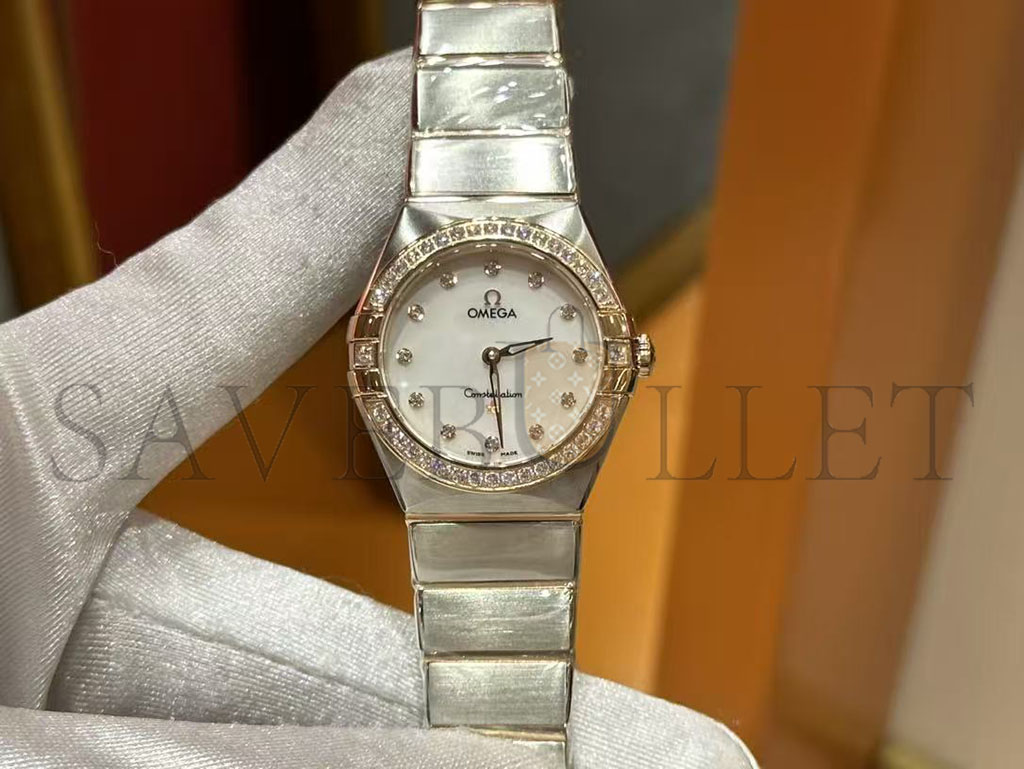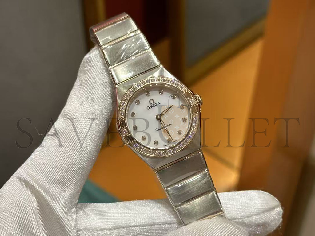 OMEGA CONSTELLATION METEORITE 25MM GREY DIAL DIAMOND DOTS STEEL & YELLOW GOLD BRACELET WATCH O13125256099002