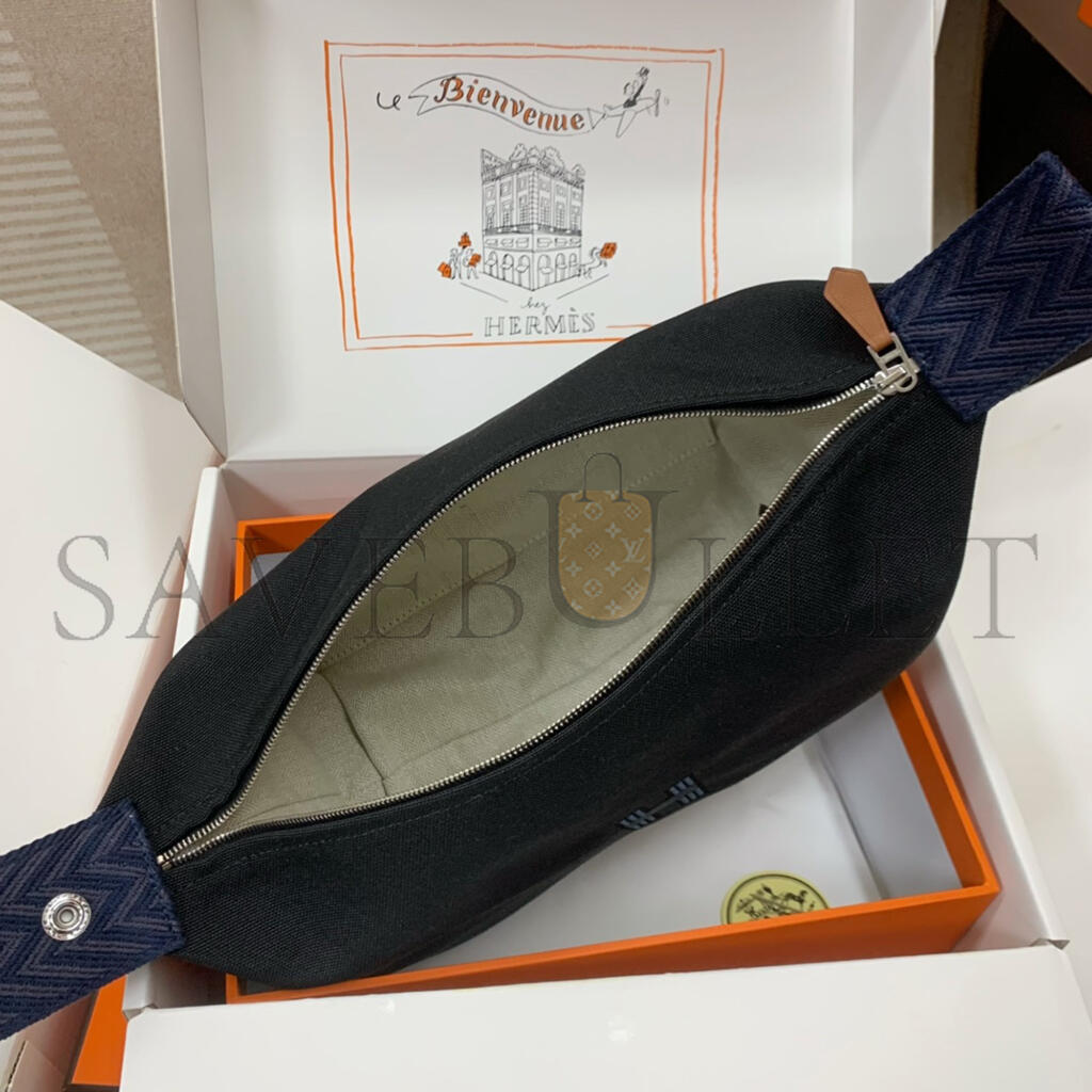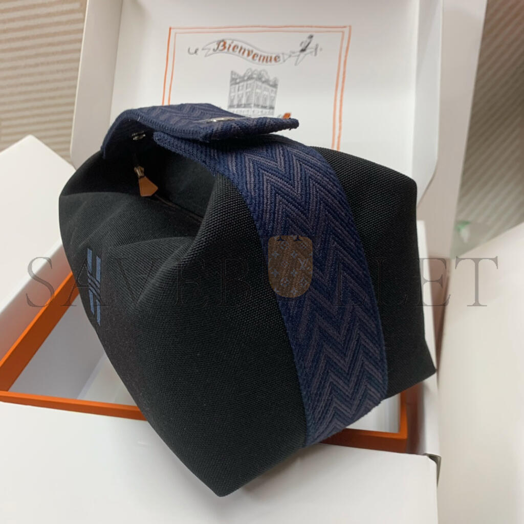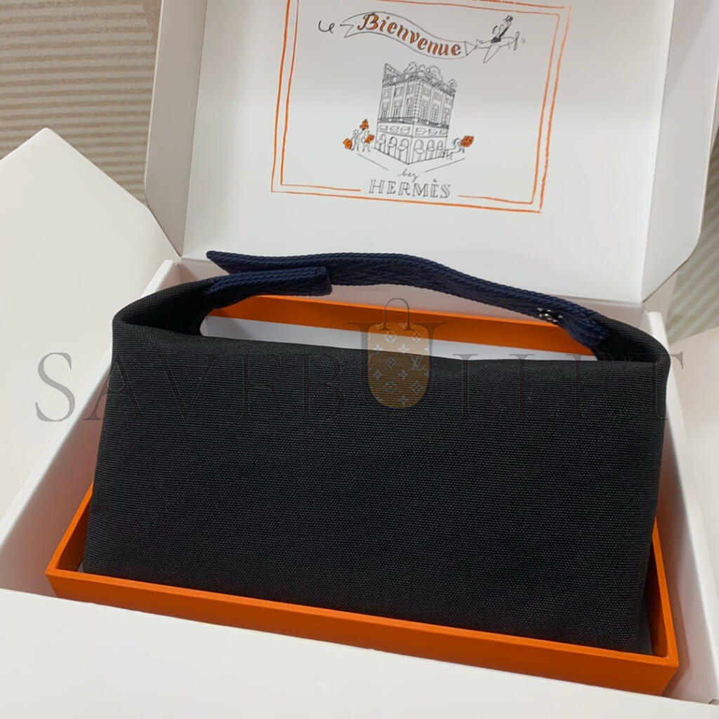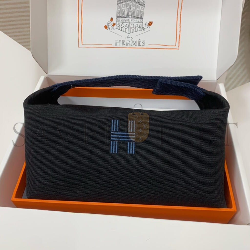 HERMÈS BLEU NUIT BLACK COTTON CANVAS SMALL MODEL BRIDE-A-BRAC CASE (25*21*14cm)