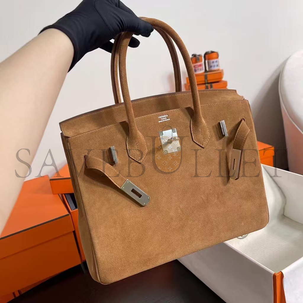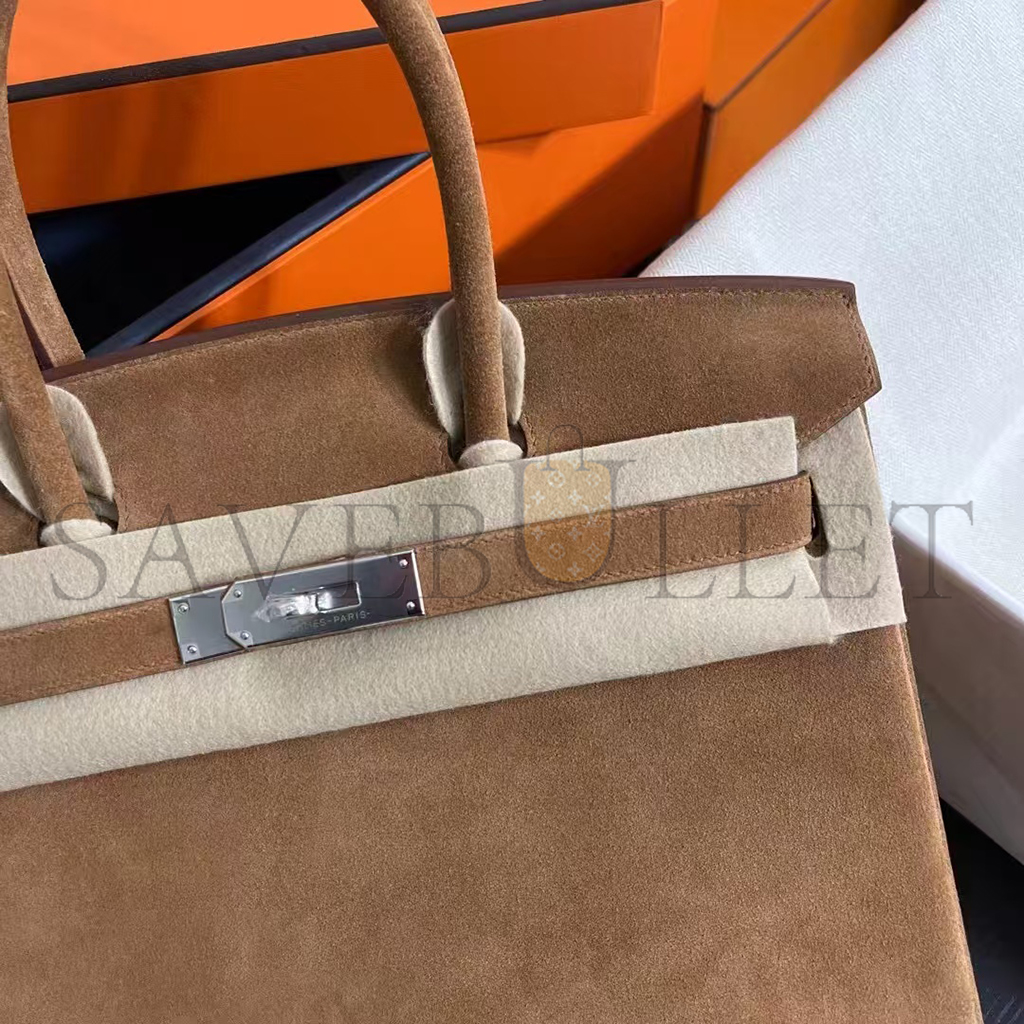 HERMES BIRKIN 25 SUEDE PALLADIUM HARDWARE (25*20*13cm)