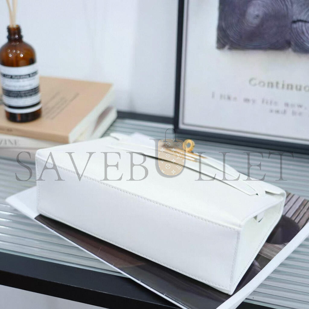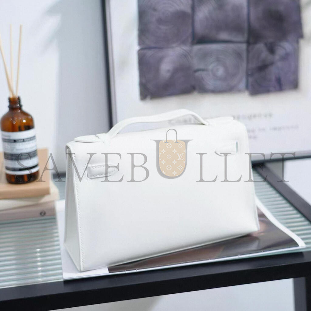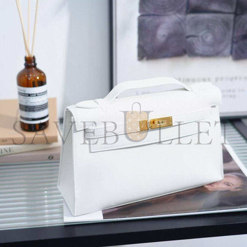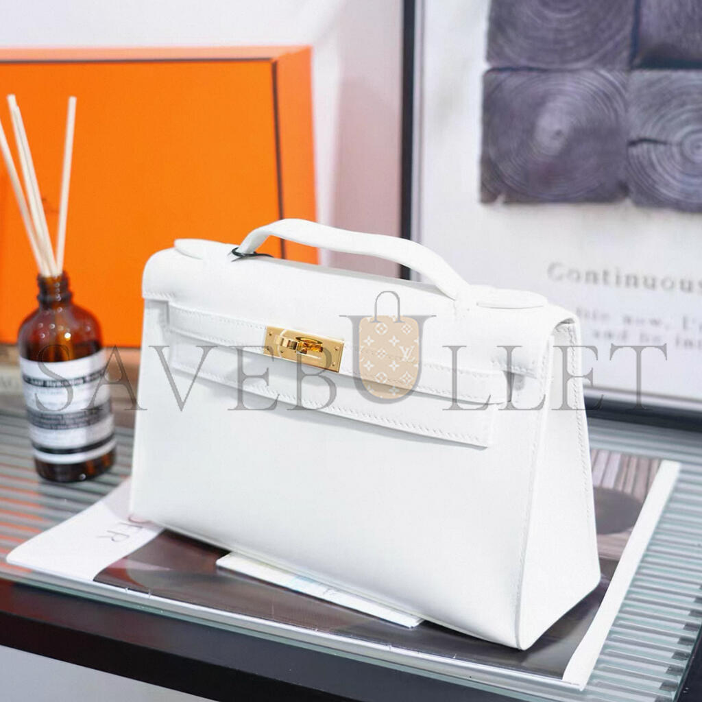 HERMES MINI KELLY POCHETTE WHITE SWIFT GOLD HARDWARE H049417CC01 (22*13*7cm)