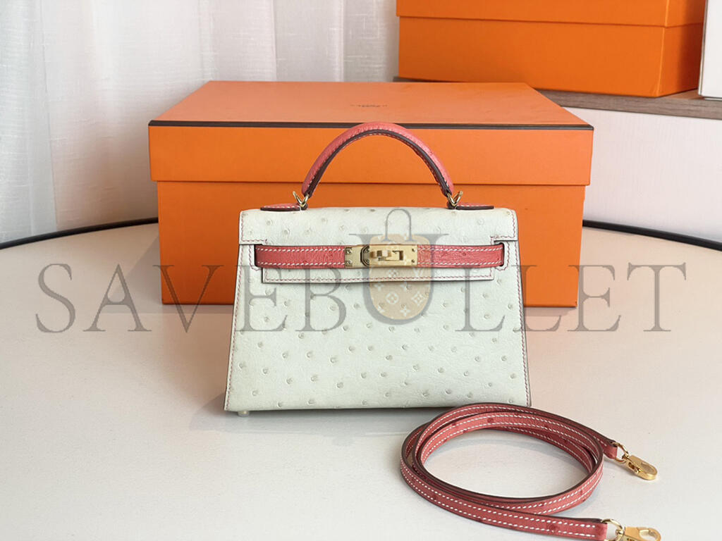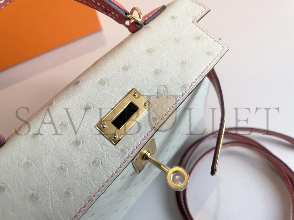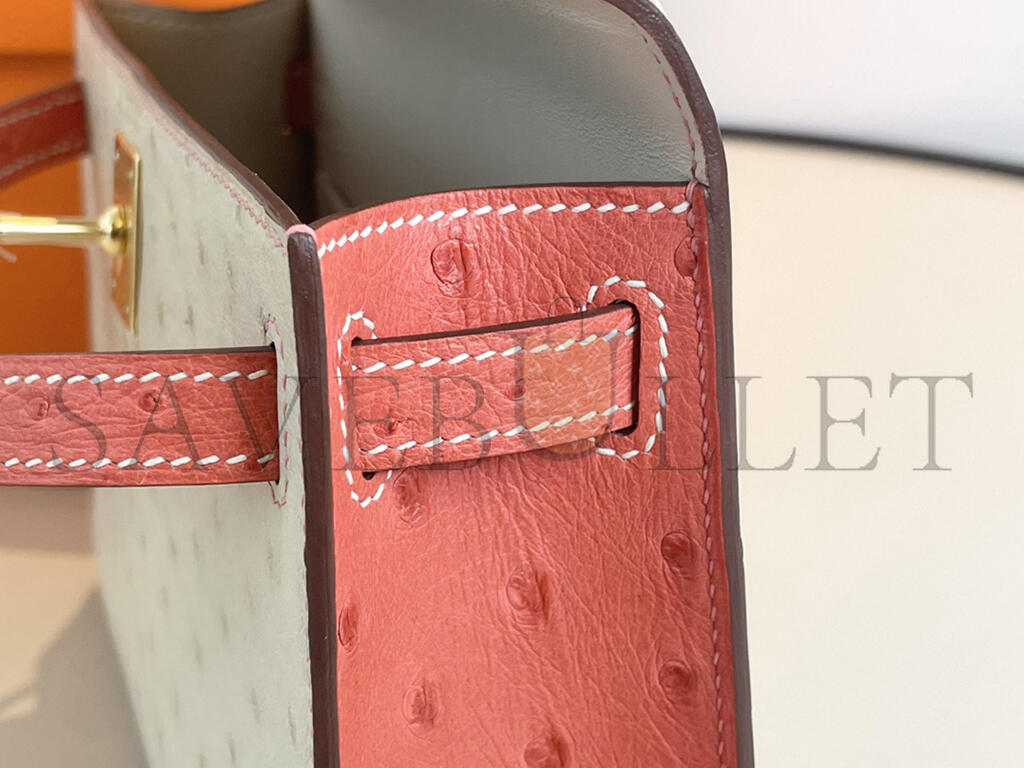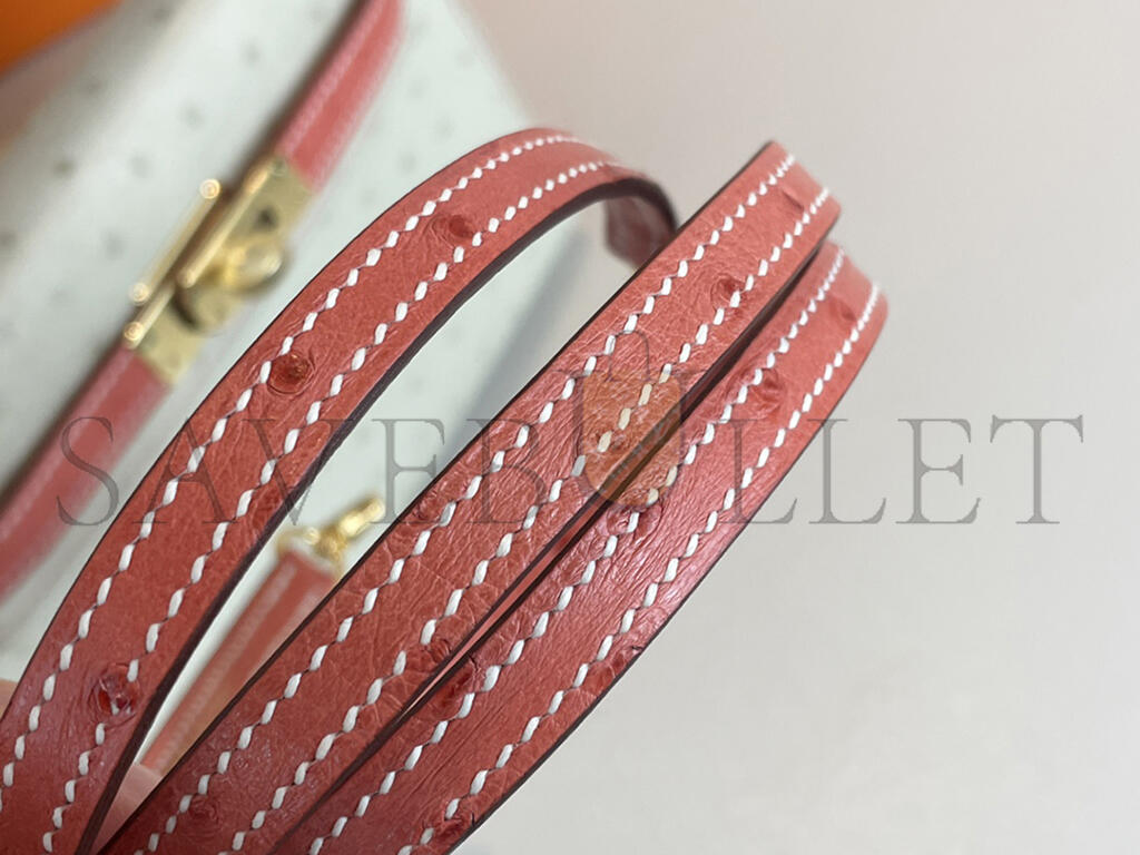 HERMES MASTER MINI KELLY SELLIER OSTRICH GOLD HARDWARE (19*12*5.5cm)