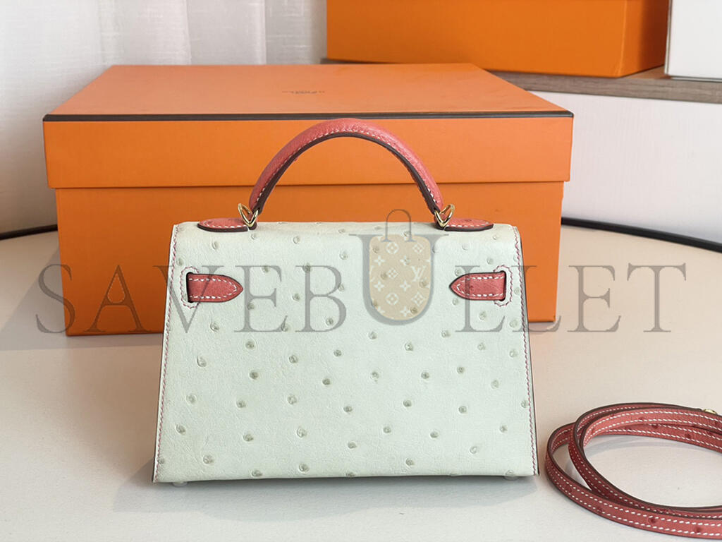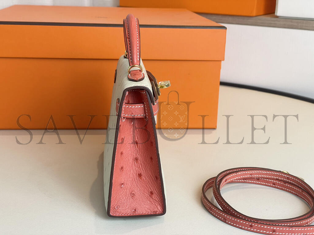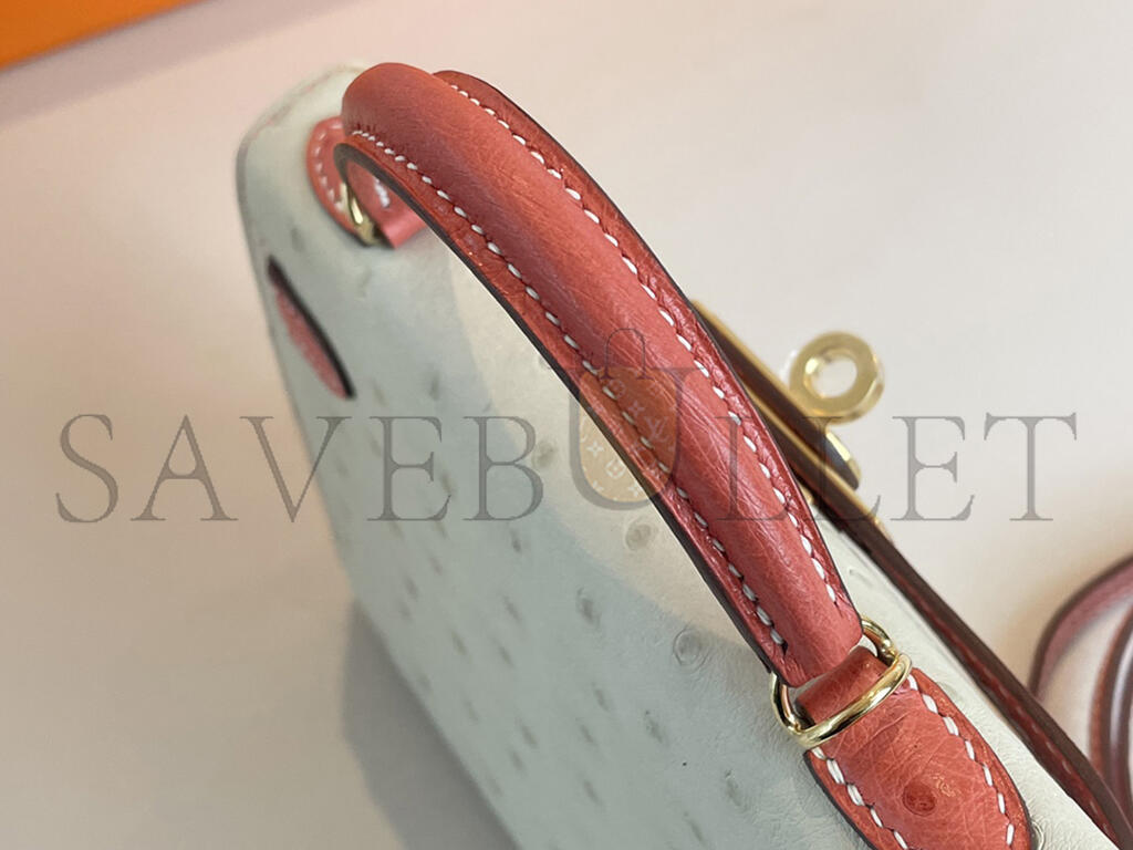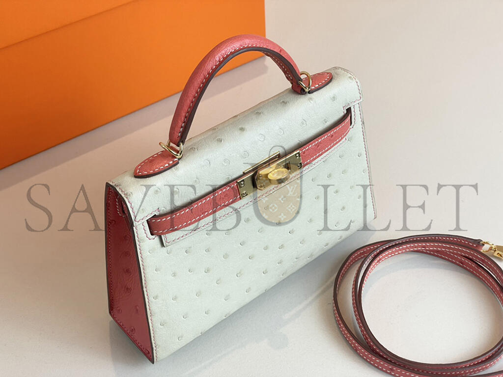 HERMES MASTER MINI KELLY SELLIER OSTRICH GOLD HARDWARE (19*12*5.5cm)