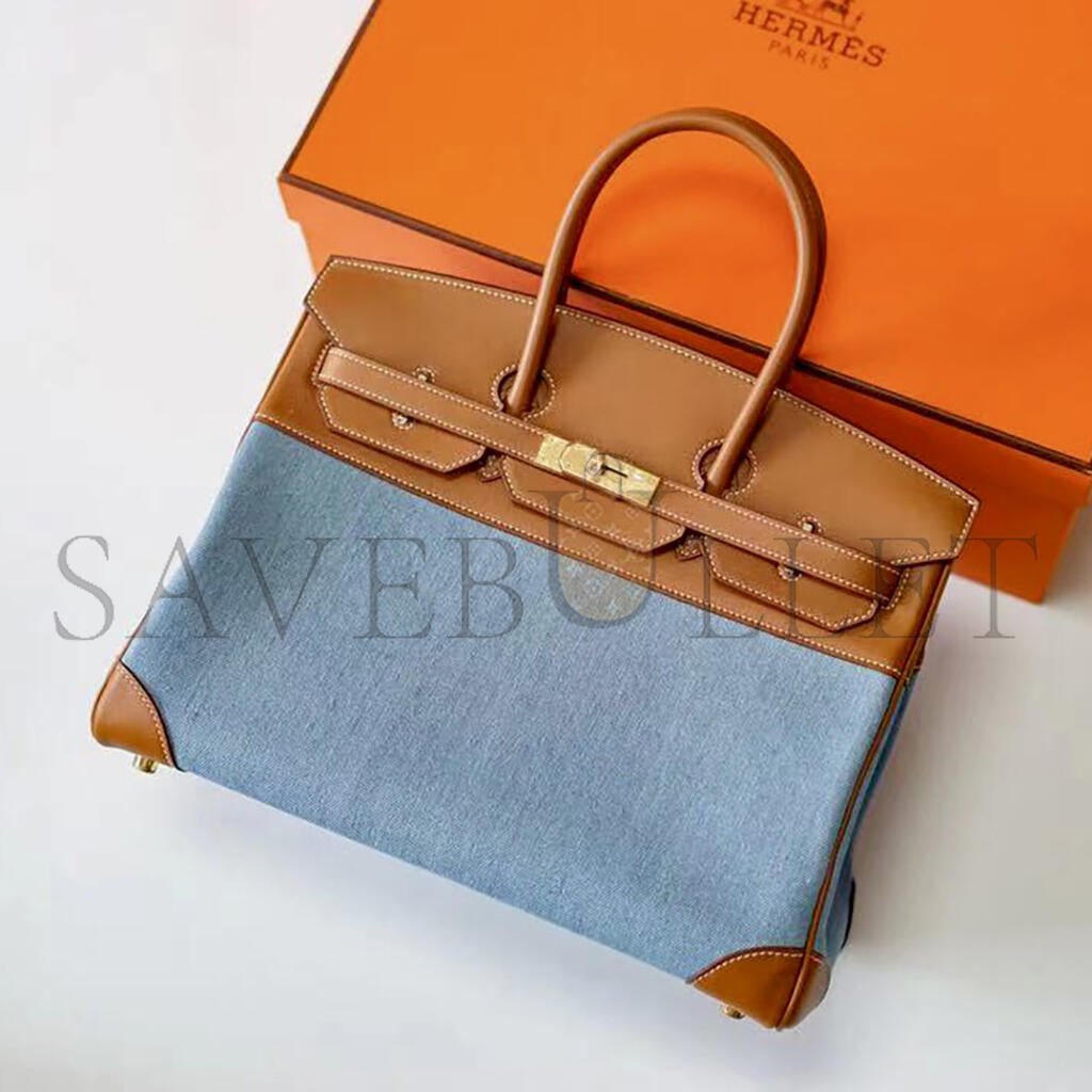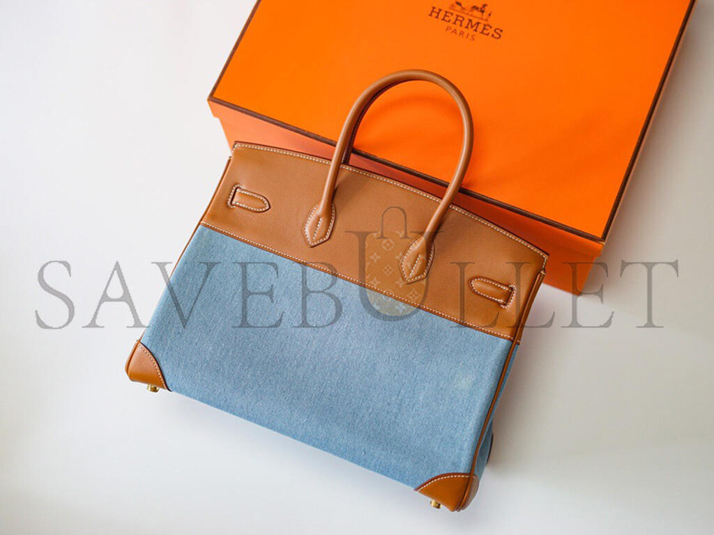 HERMES MASTER BIRKIN 30 DENIM AND BARENIA LEATHER GOLD HARDWARE (30*22*16cm)