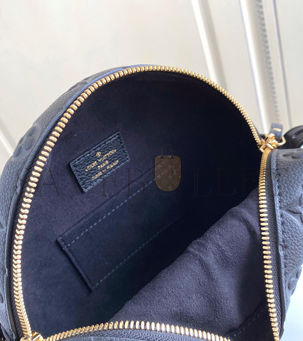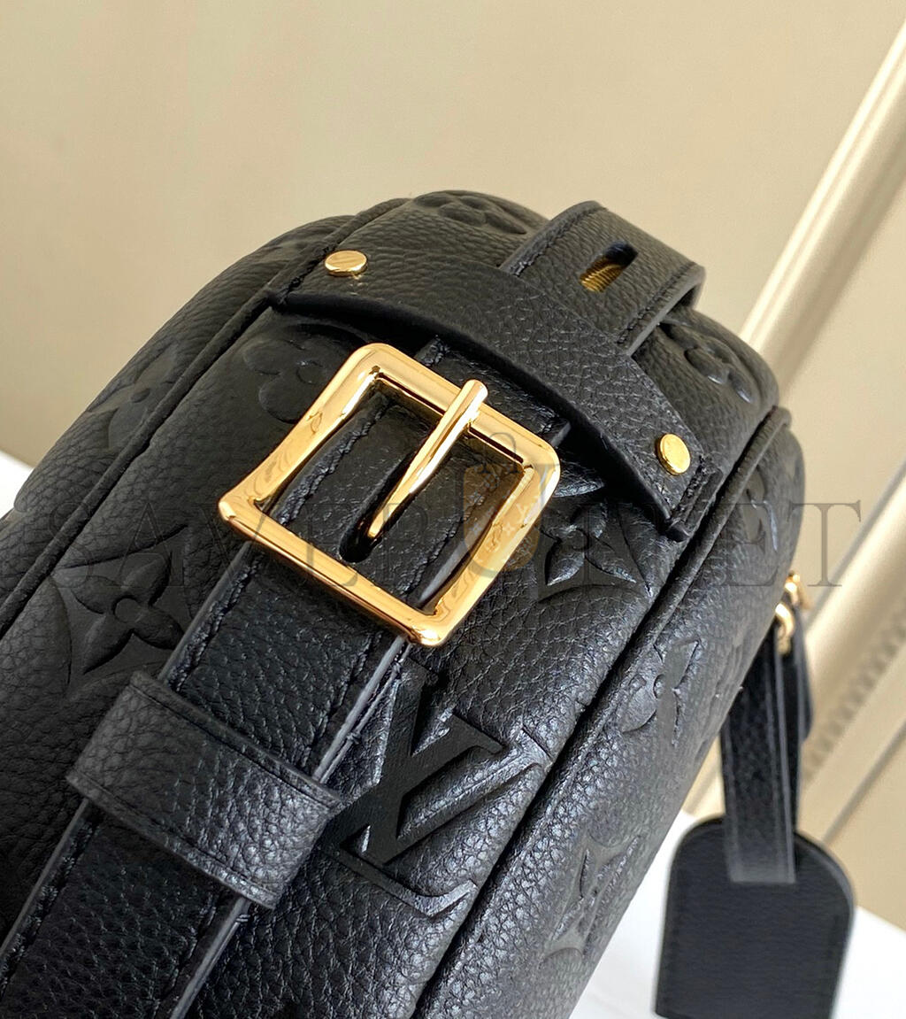 The Boite Chapeau Souple MM handbag, Nicolas Ghesquière’s reinterpretation of the classic hat box with more modern diminutive dimensions, is fashioned from Monogram Empreinte leather. The suppleness of the embossed grained leather perfectly complements the round lines of the bag’s signature shape, making for a piece that is both instantly recognizable and ultra-comfortable.