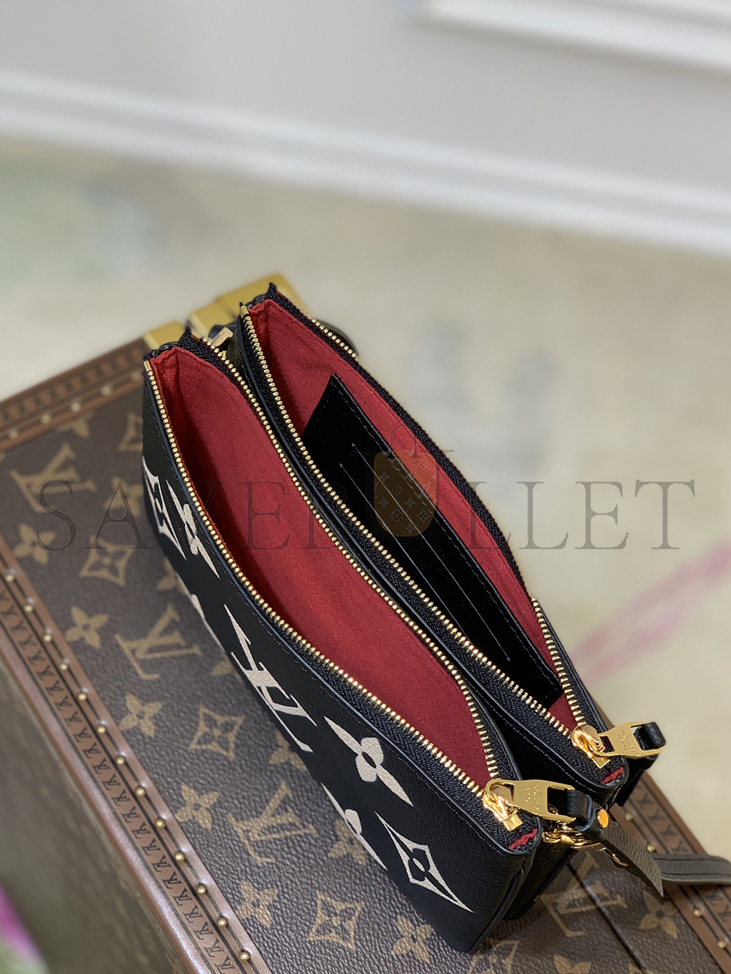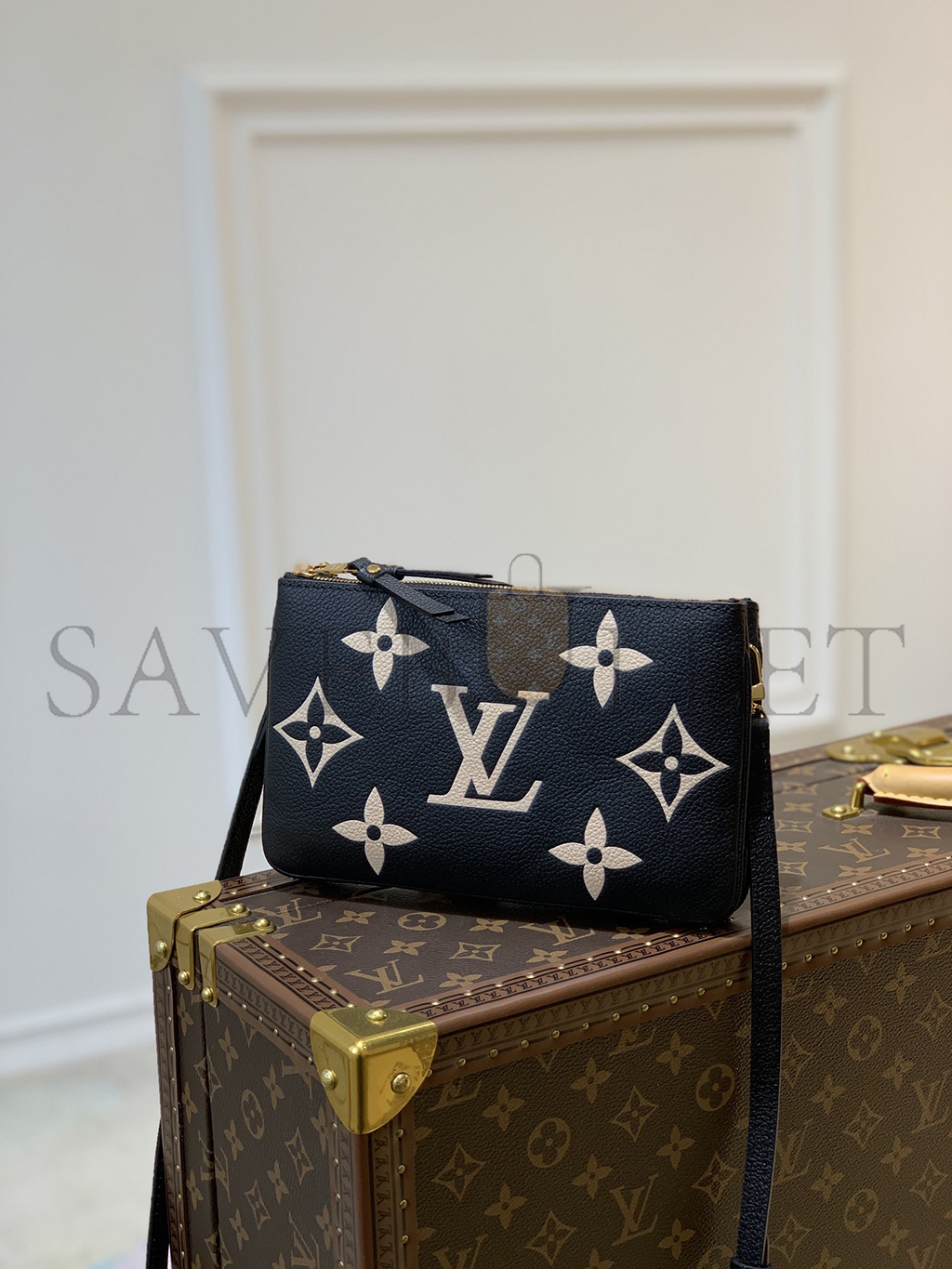 Carried by hand or worn cross-body, the Double Zip Pochette is a stylish and practical accessory. This edition in Monogram Empreinte leather is embossed with a contrasting Monogram Medium motif, for a signature fashion statement. The pouch features two zipped pockets for smartphones and valuables, along with an open central compartment for direct access to essentials.