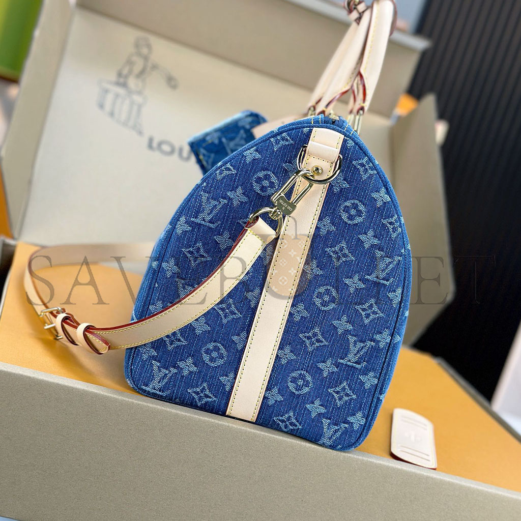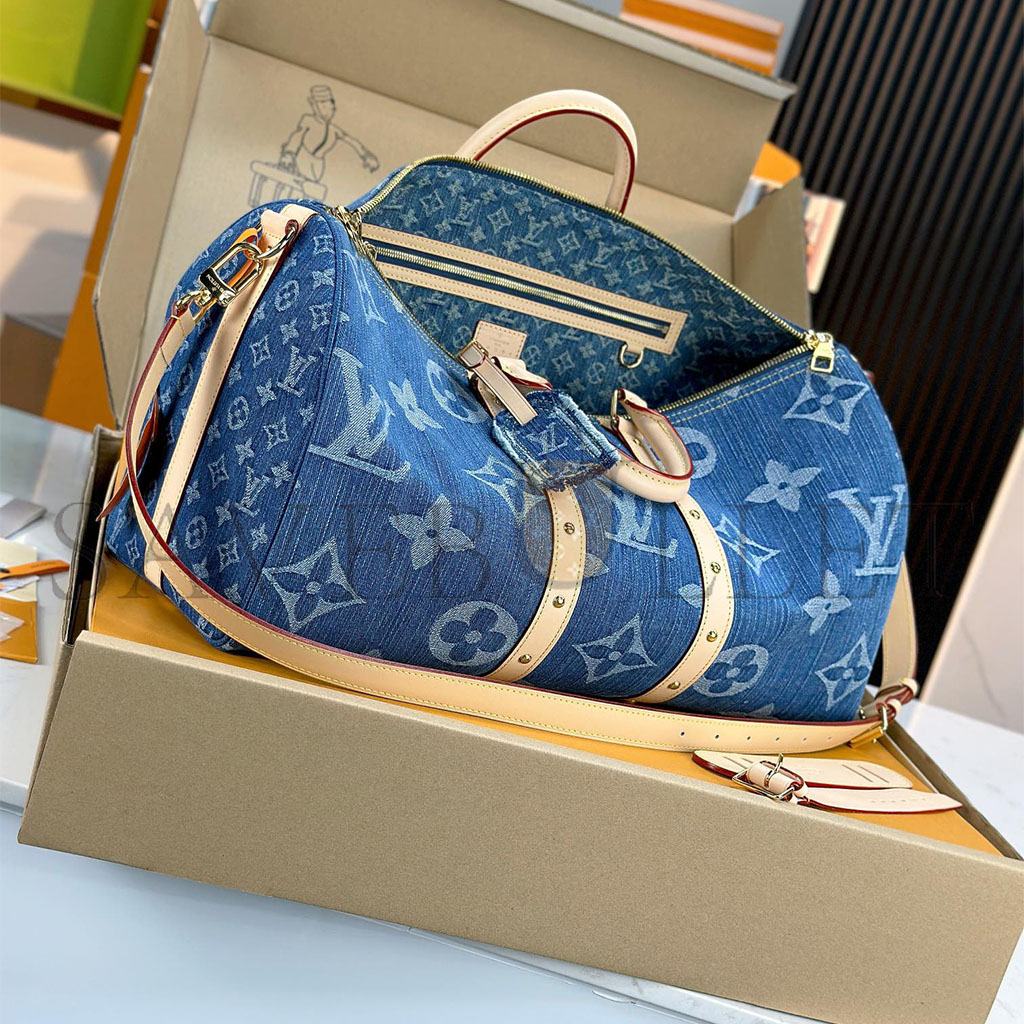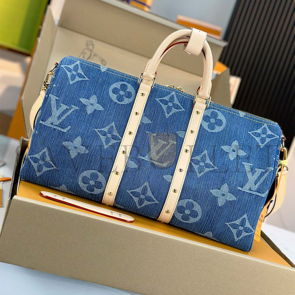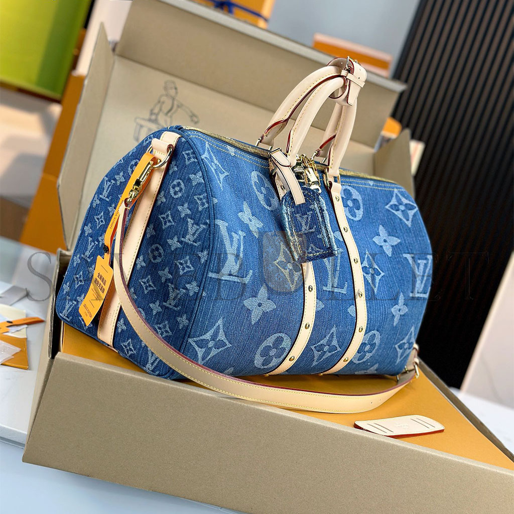 LOUIS VUITTON DENIM KEEPALL BANDOULIERE 45 MONOGRAM BLUE M24315 (45*27*20cm)