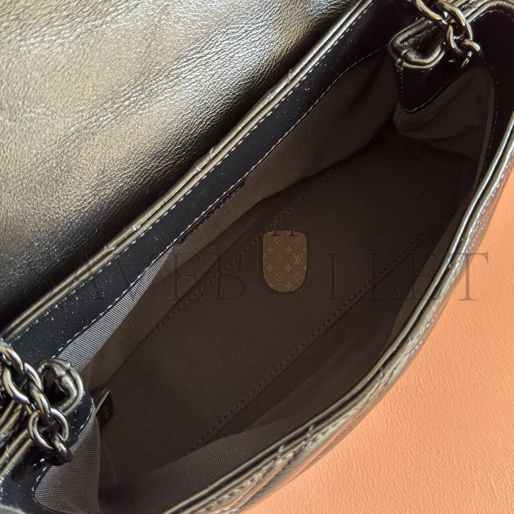 Black matelassé chevron nappa leather