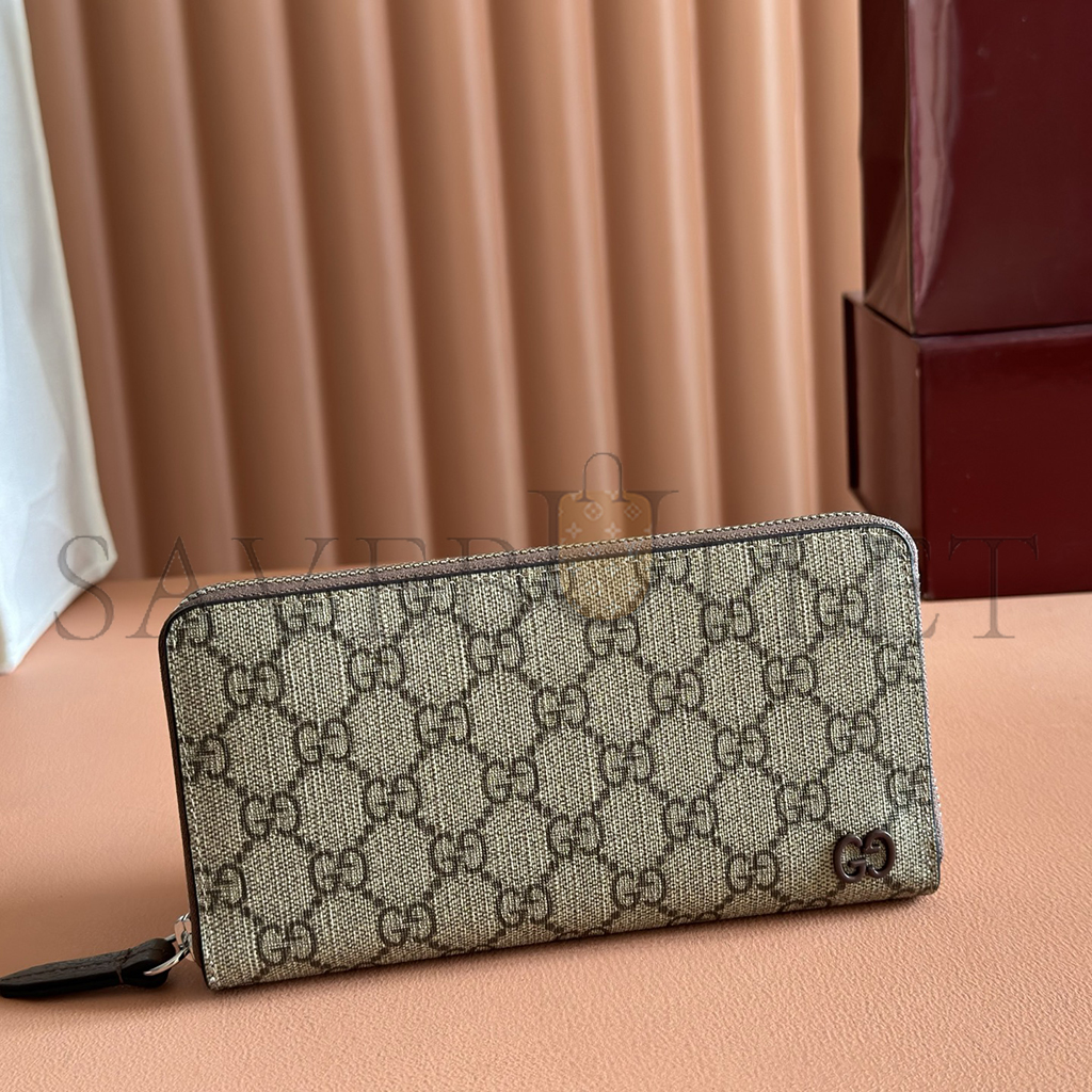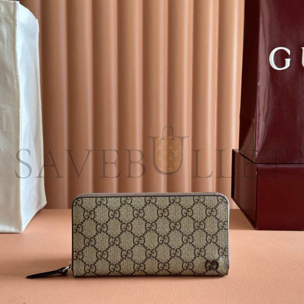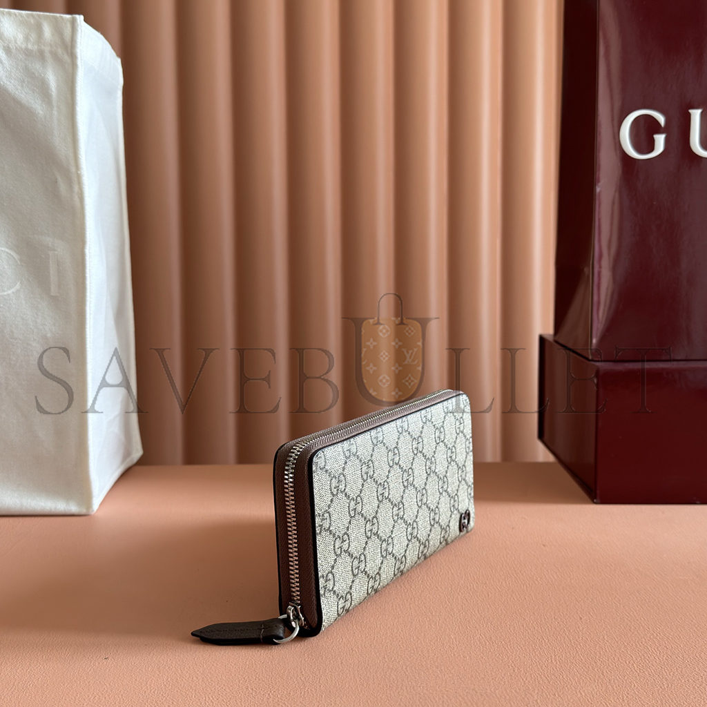 GUCCI BROWN INTERIOR GG ZIP AROUND WALLET 856562 (19*10.5*2.5cm)