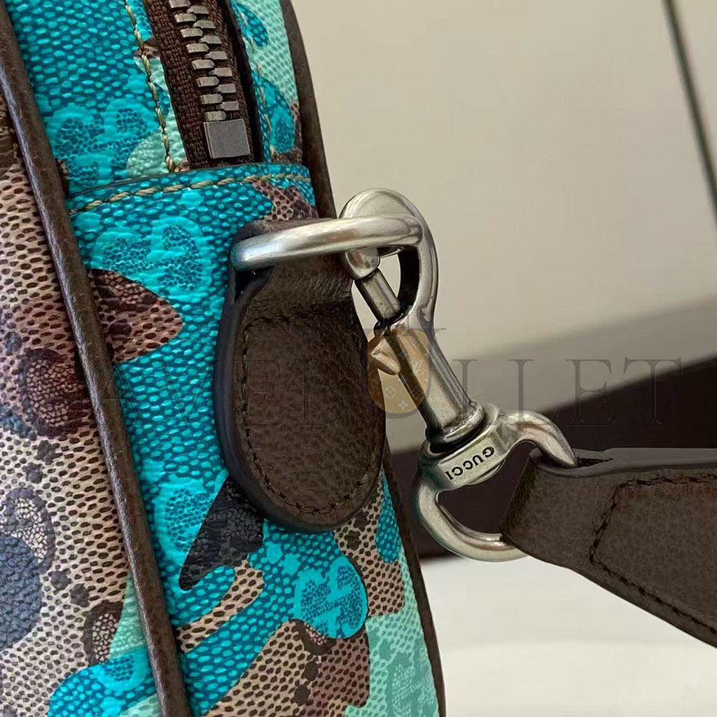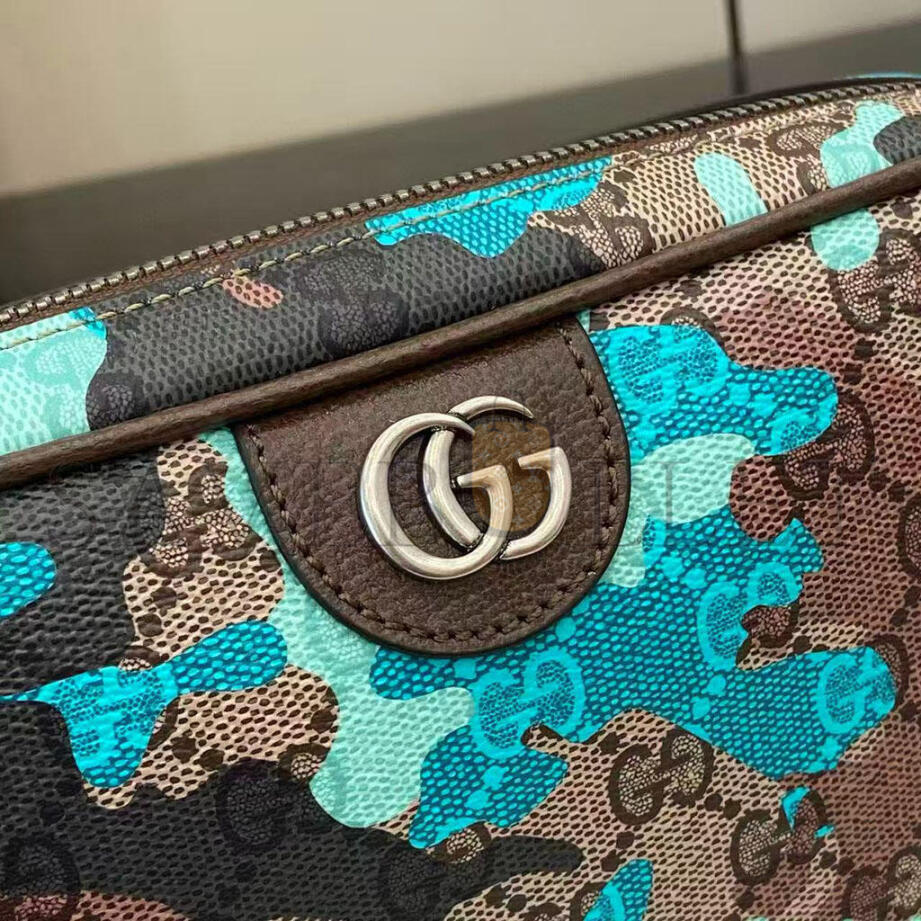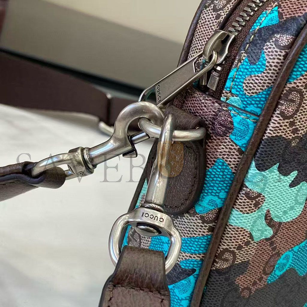 Blue and light blue camouflage marbled GG Monogram coated fabric