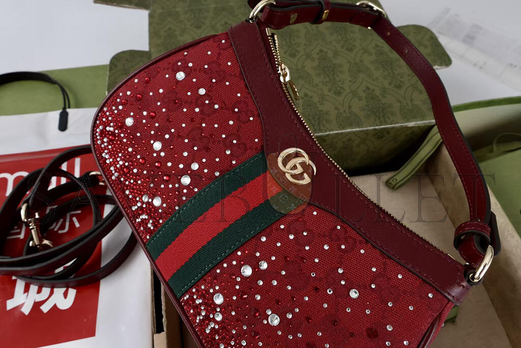 GUCCI OPHIDIA CRYSTALS SMALL SHOULDER BAG 841341 (26*15*6.5cm)