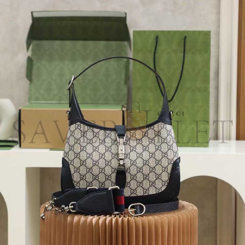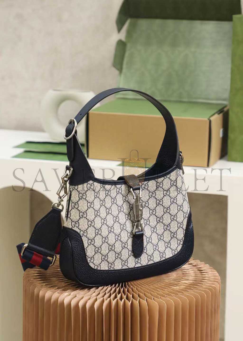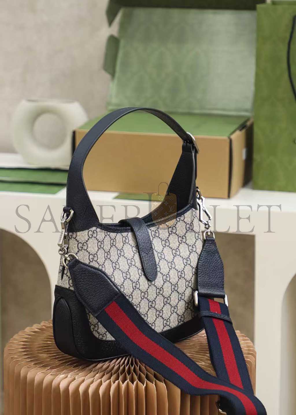 GUCCI JACKIE 1961 GG SMALL SHOULDER BAG BEIGE AND BLUE 678843 (28*19*4.5cm)