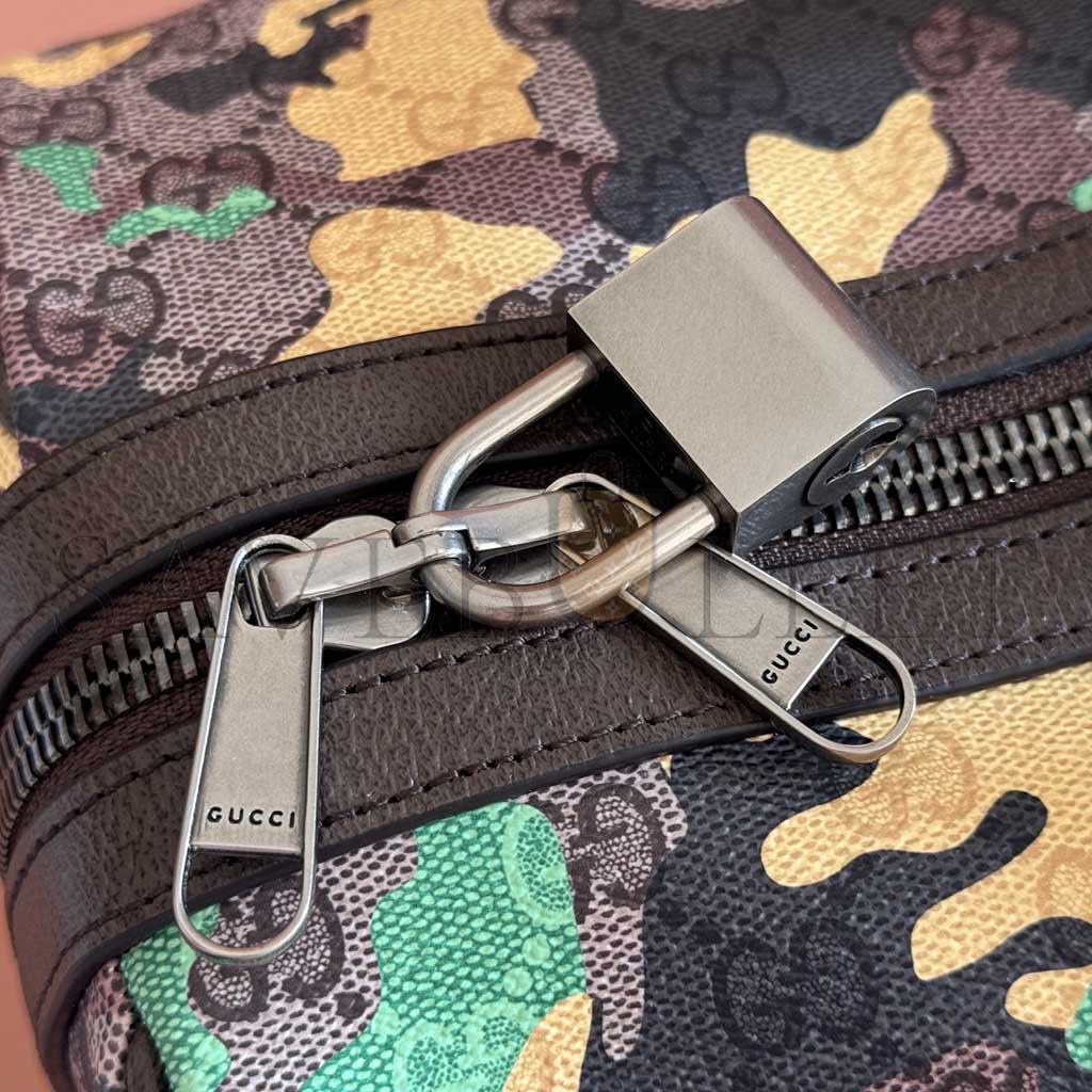 Green and yellow camouflage marbled GG Monogram coated fabric