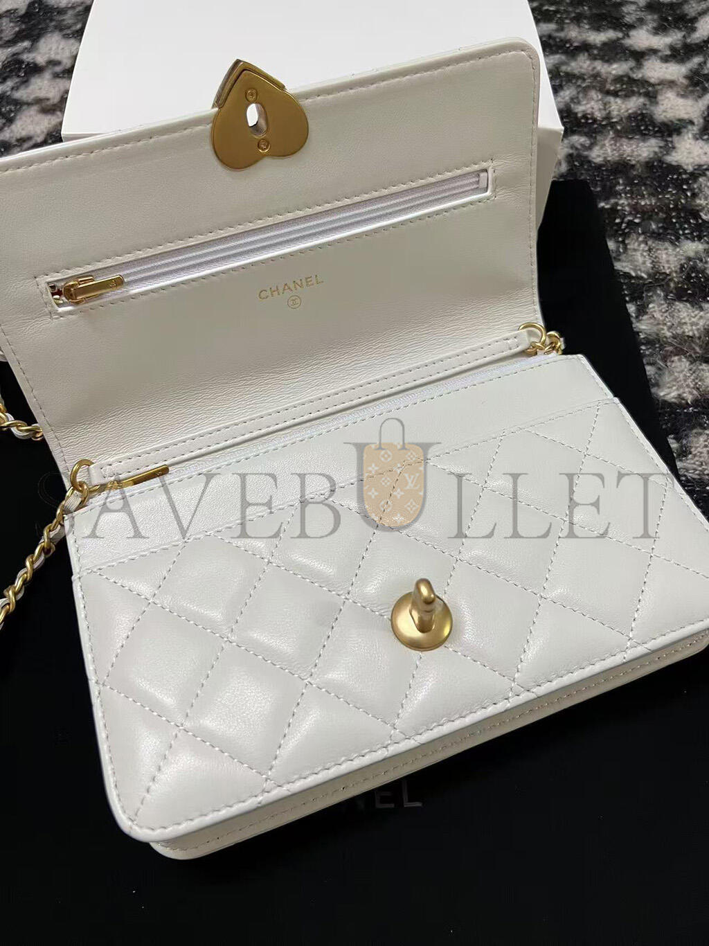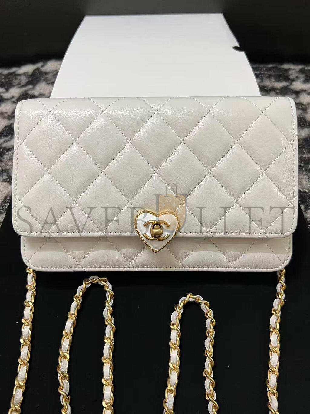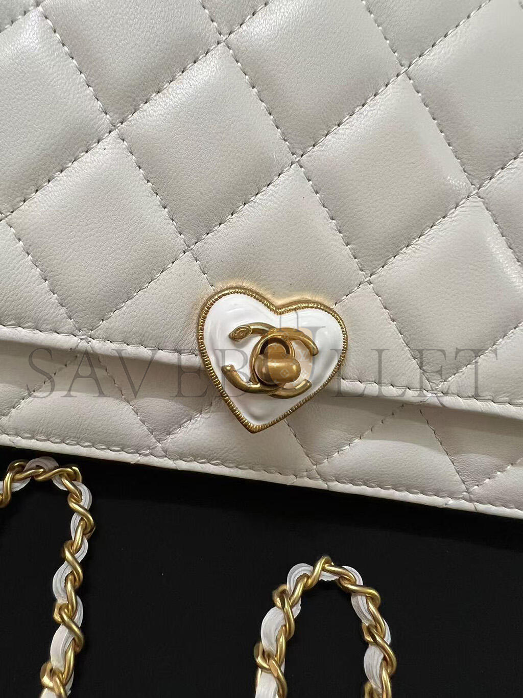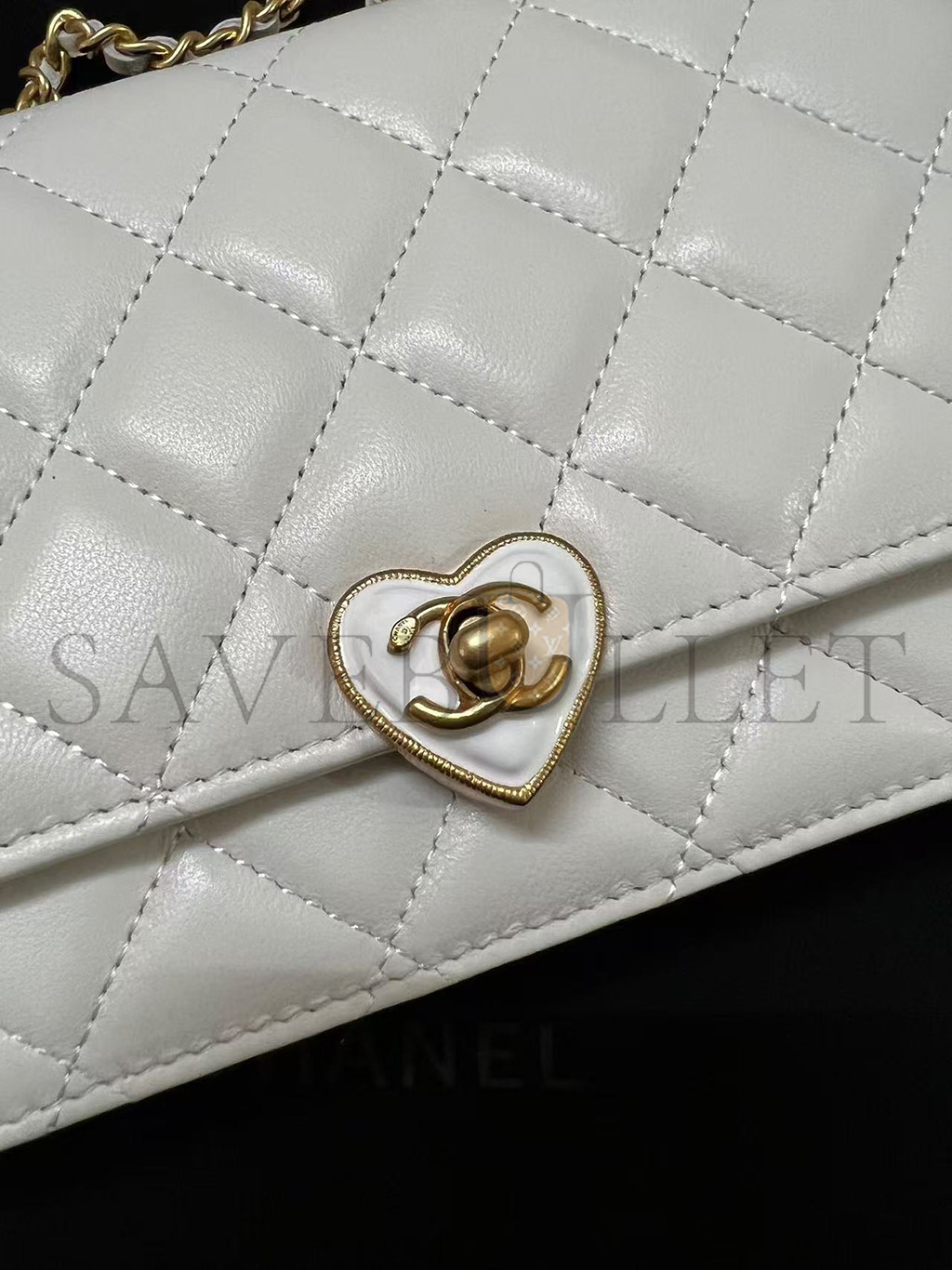CHANEL WHITE HEART ENAMEL BUCKLE WOC (19*13*4cm)