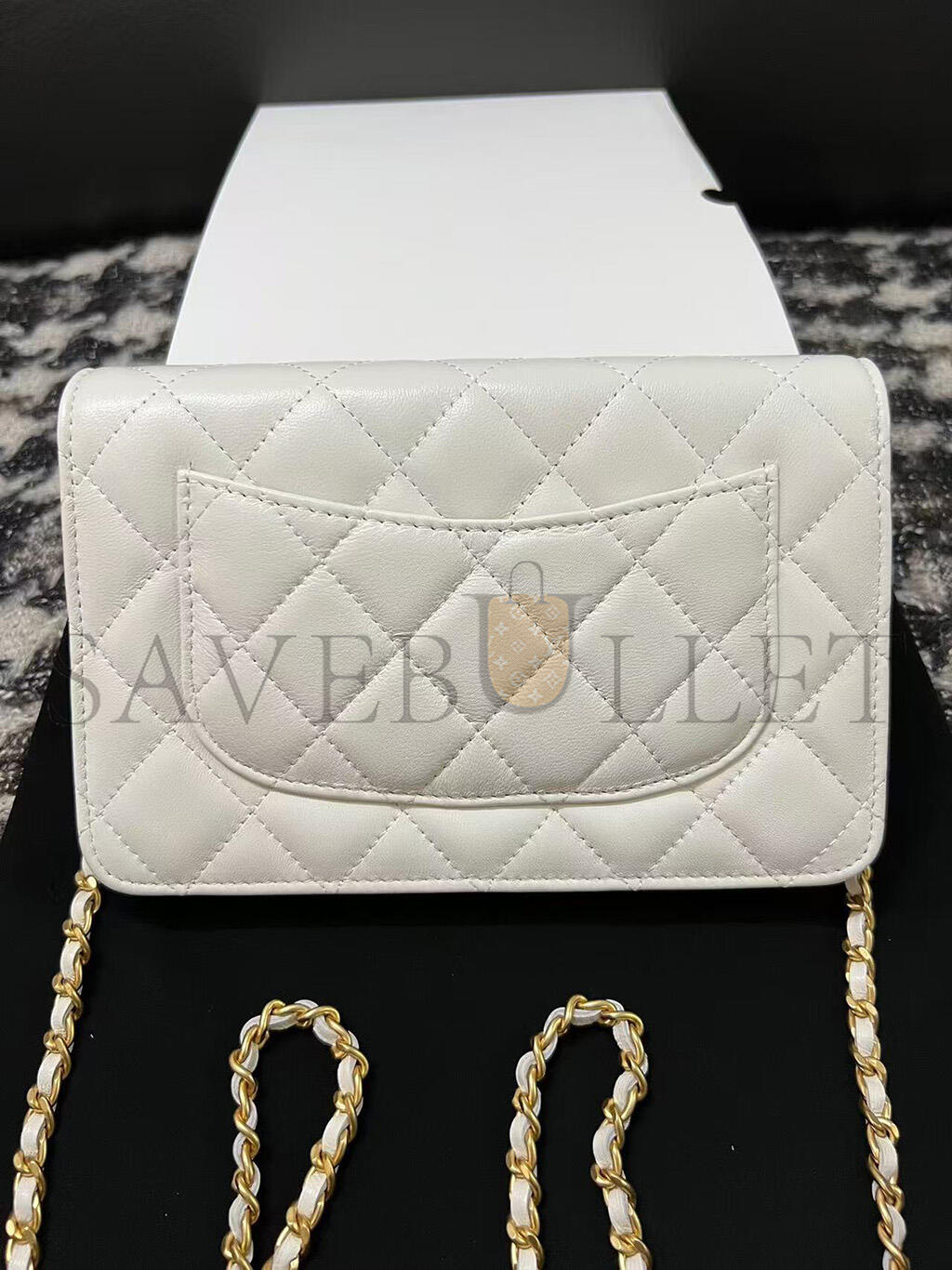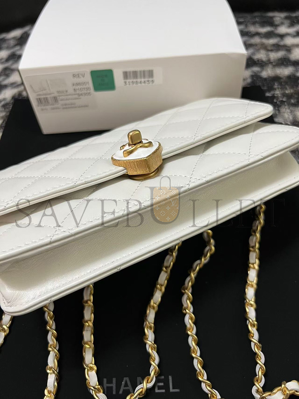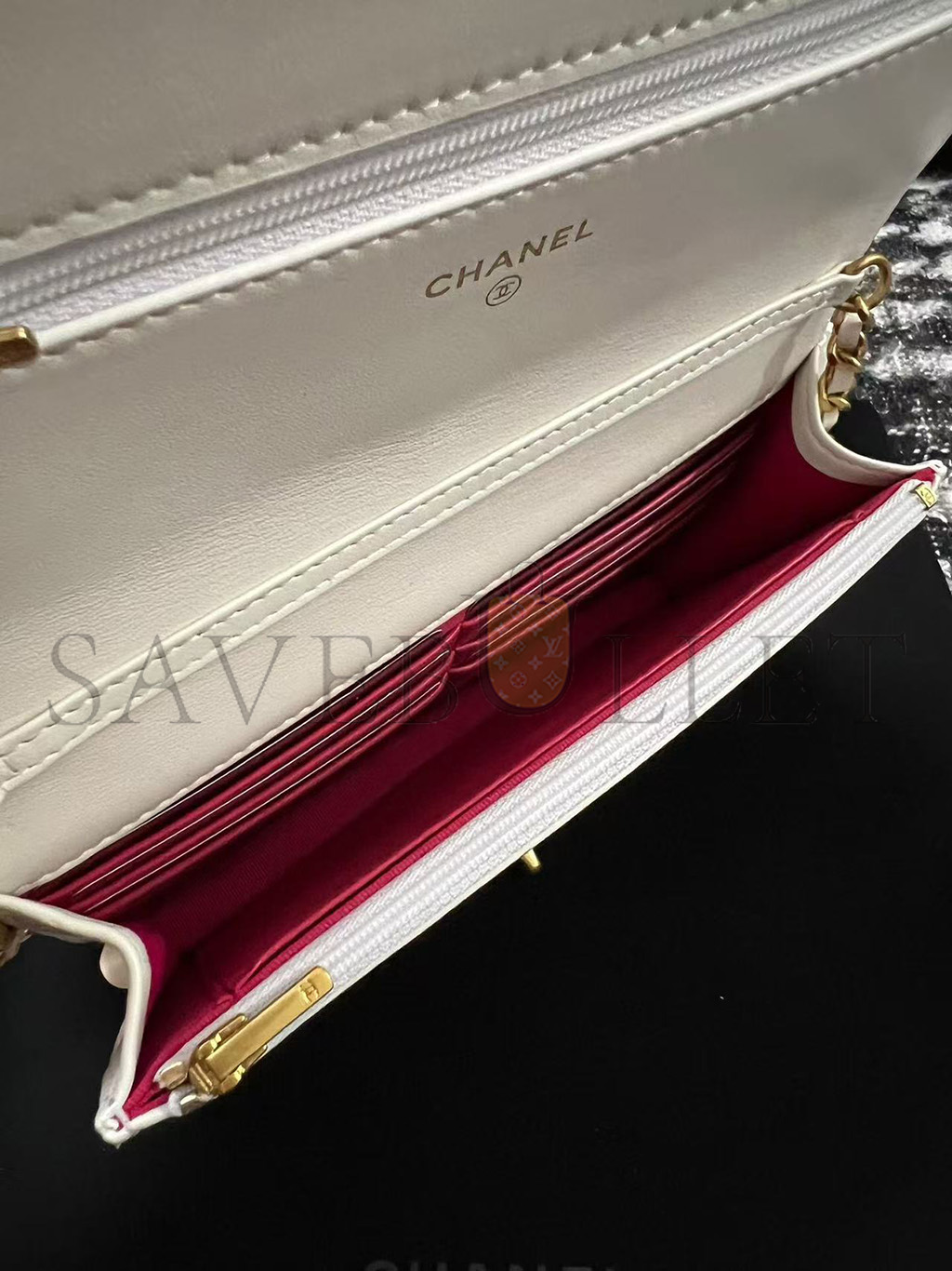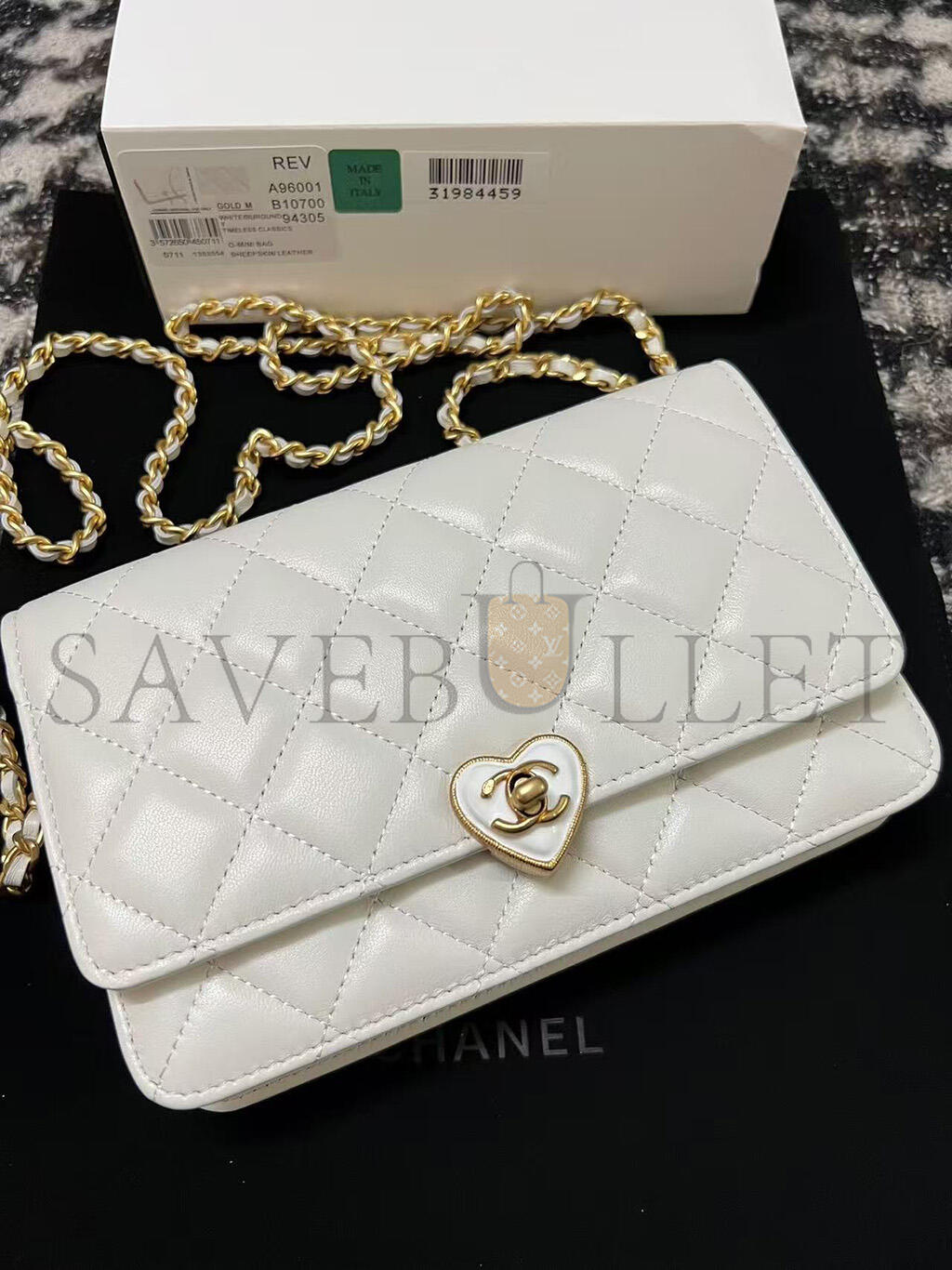 CHANEL WHITE HEART ENAMEL BUCKLE WOC (19*13*4cm)