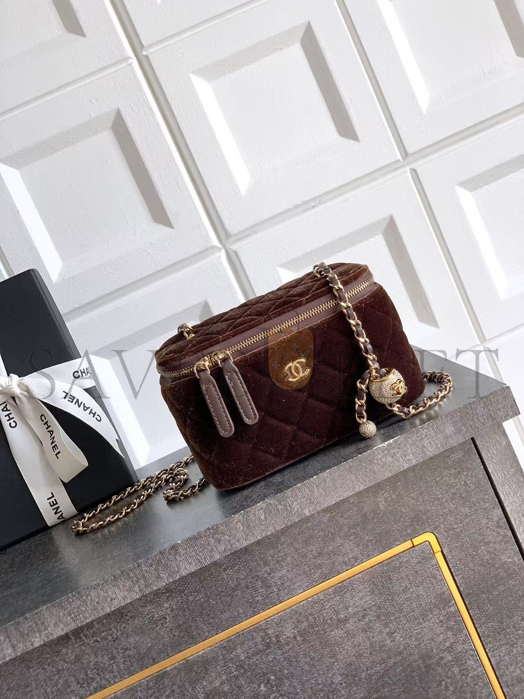 CHANEL SMALL CRYSTAL PEARL CRUSH VANITY CASE FONCE LIGHT GOLD HARDWARE (16*10*8cm)