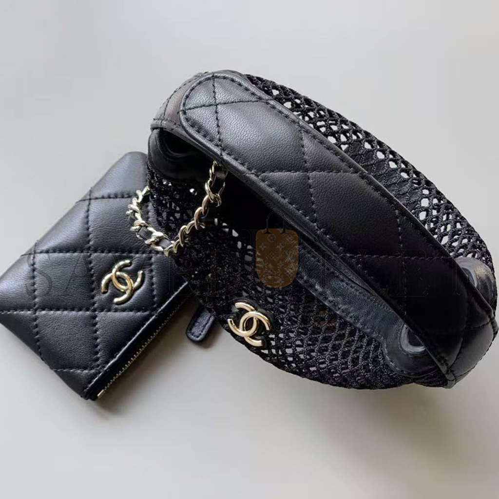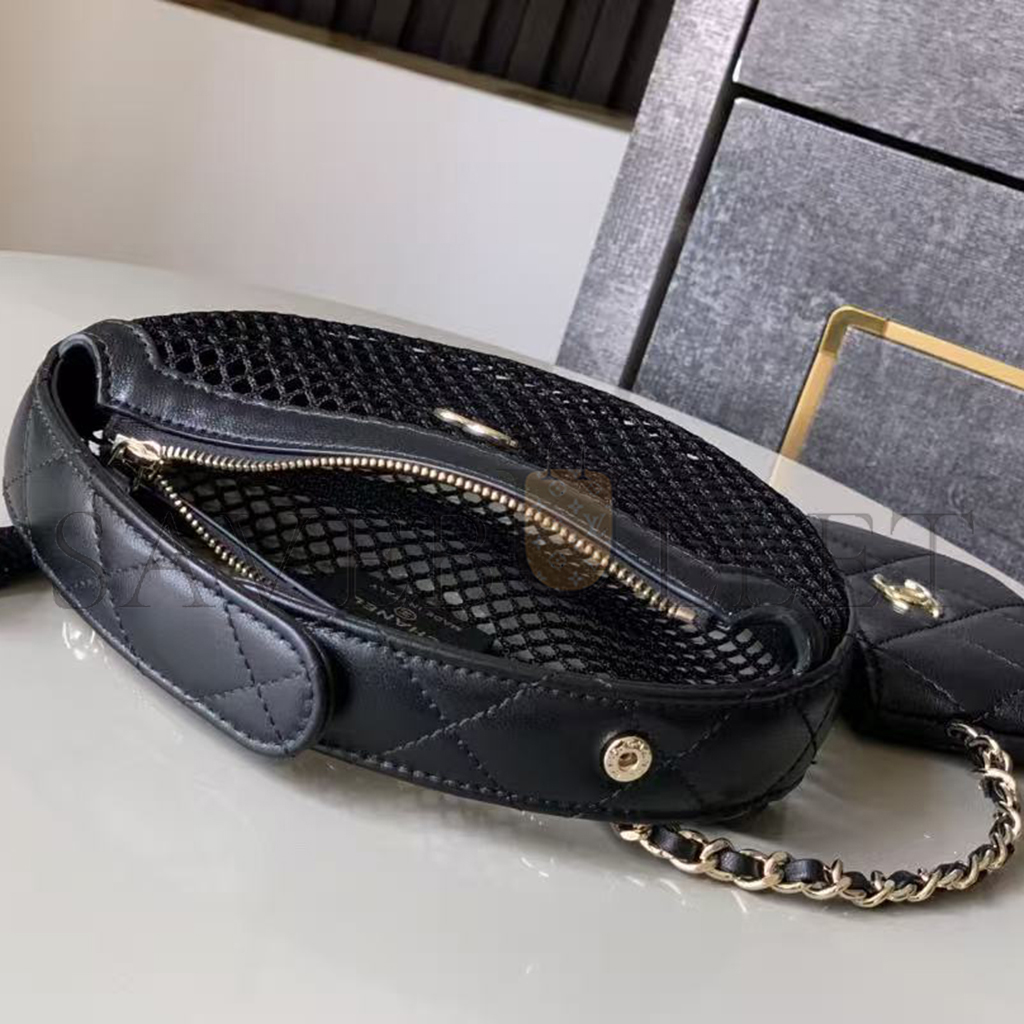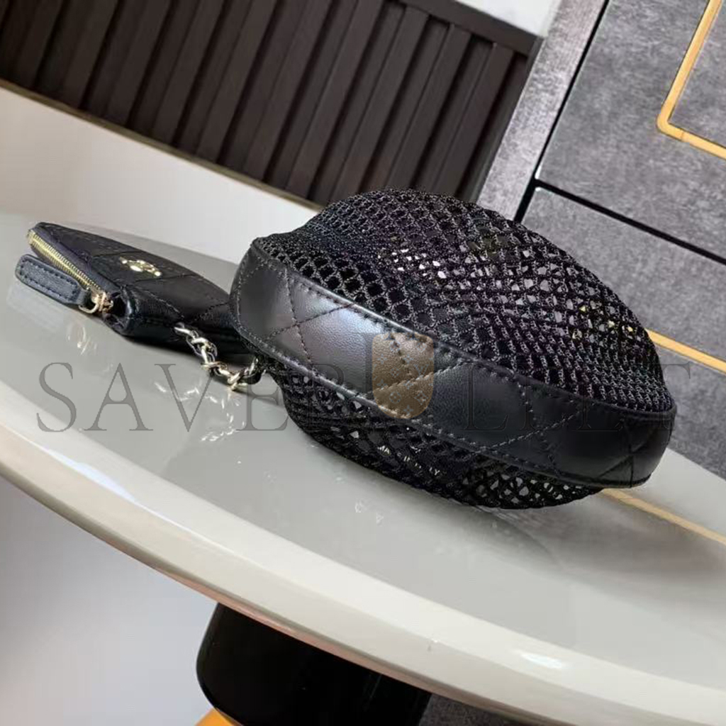 CHANEL MESH SHINY LAMBSKIN POUCH HOBO BLACK AS4063 (19*18*3cm)