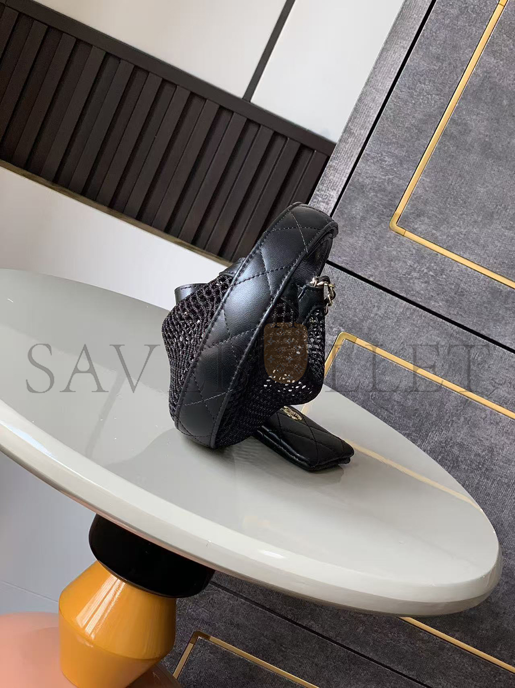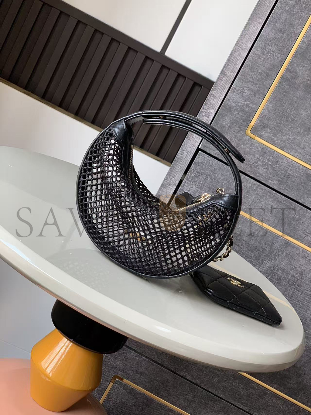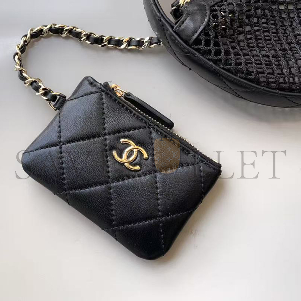 CHANEL MESH SHINY LAMBSKIN POUCH HOBO BLACK AS4063 (19*18*3cm)