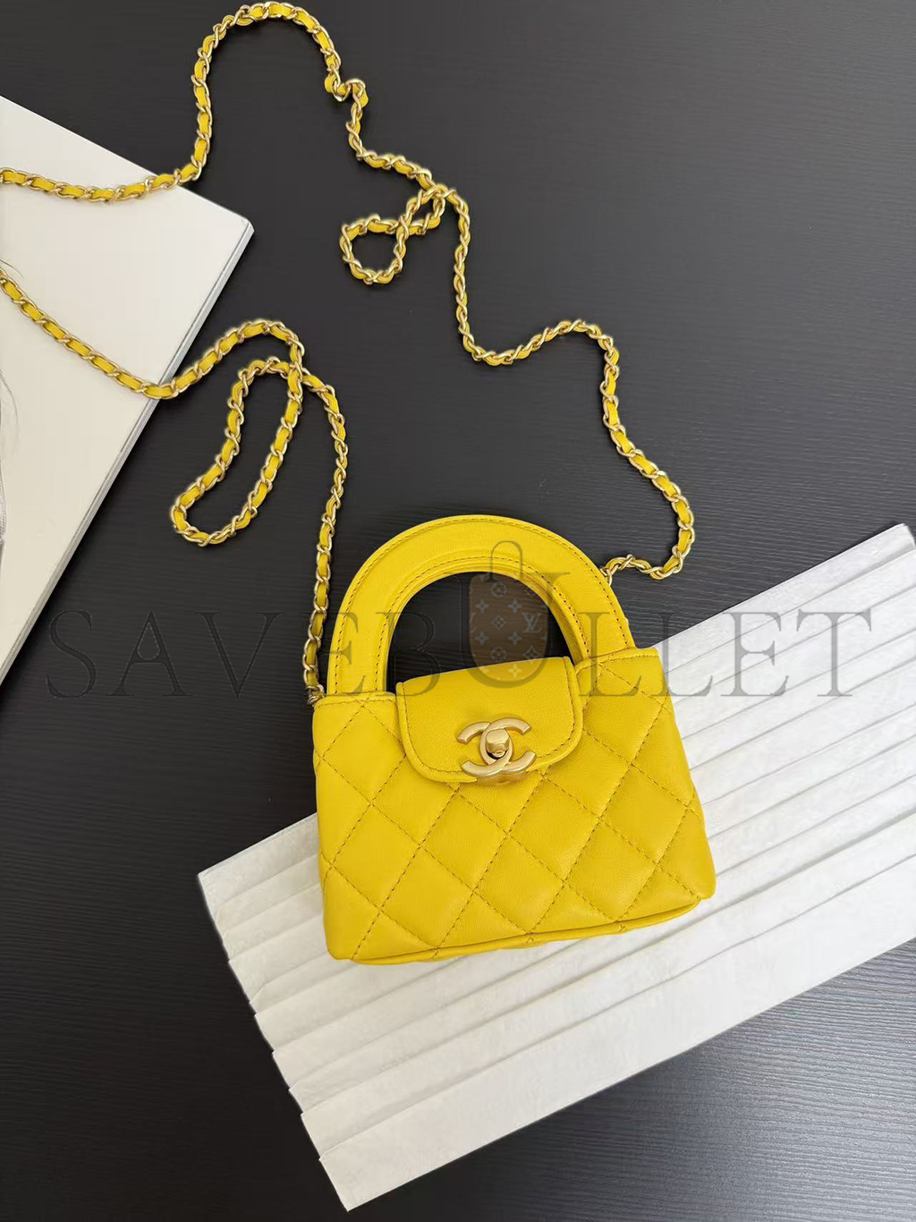CHANEL SHINY AGED CALFSKIN QUILTED KELLY MINI NANO SHOPPER AP3435 (12.5*8*4cm)