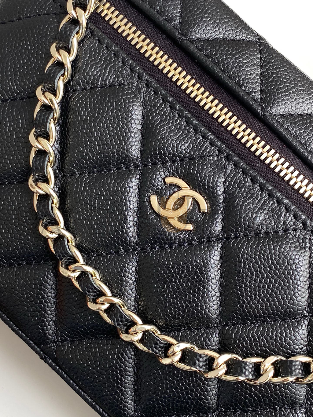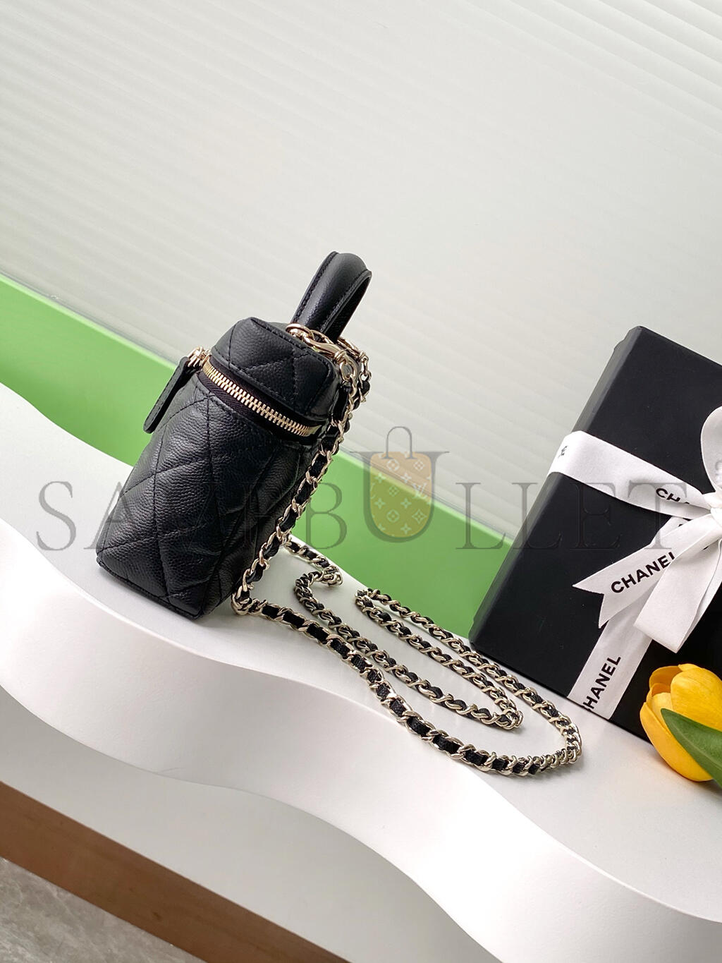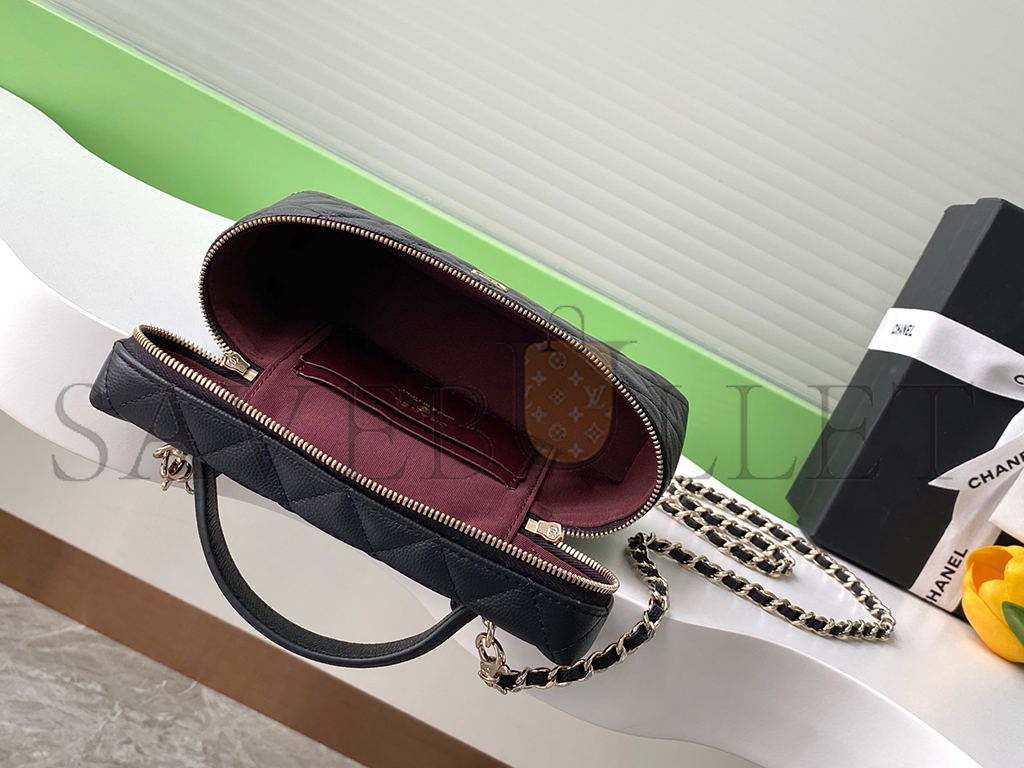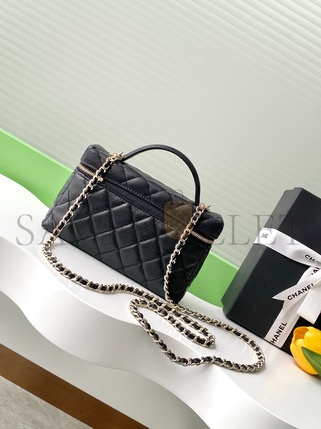 CHANEL CAVIAR QUILTED TOP HANDLE SLIM VANITY WITH CHAIN BLACK AP4385 (19.5*17*5cm)