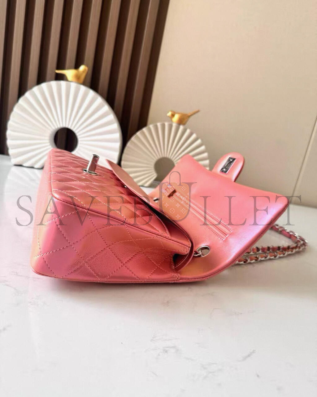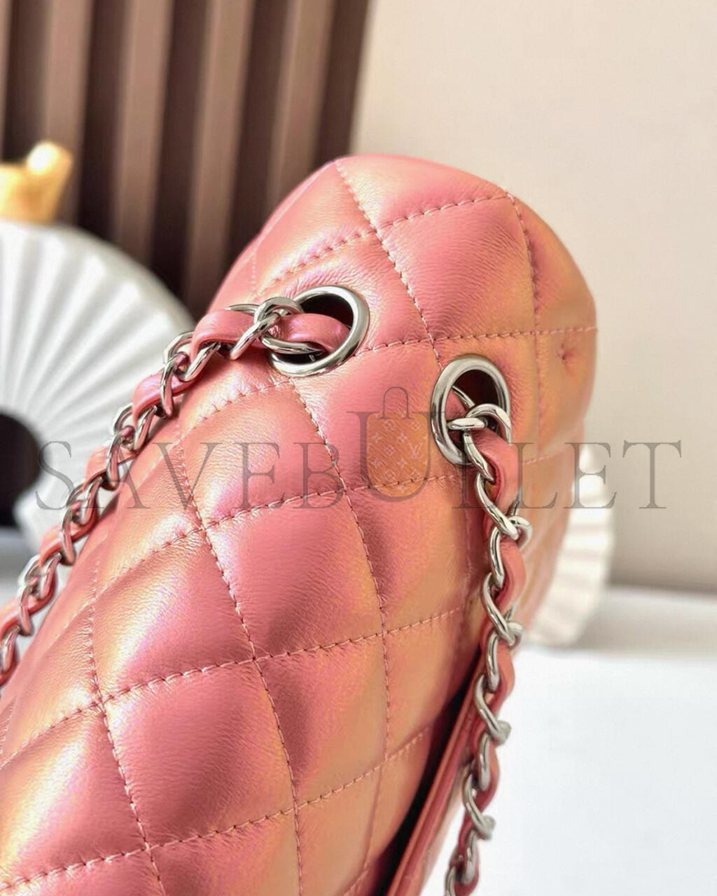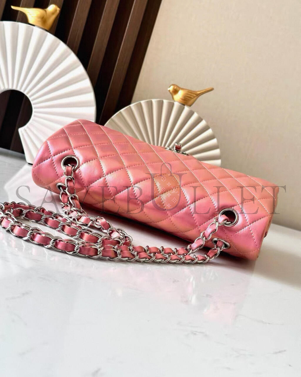 CHANEL IRIDESCENT PINK LAMBSKIN MEDIUM CLASSIC FLAP BAG A01112 (25.5*15*6cm)