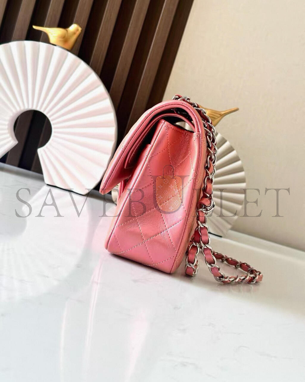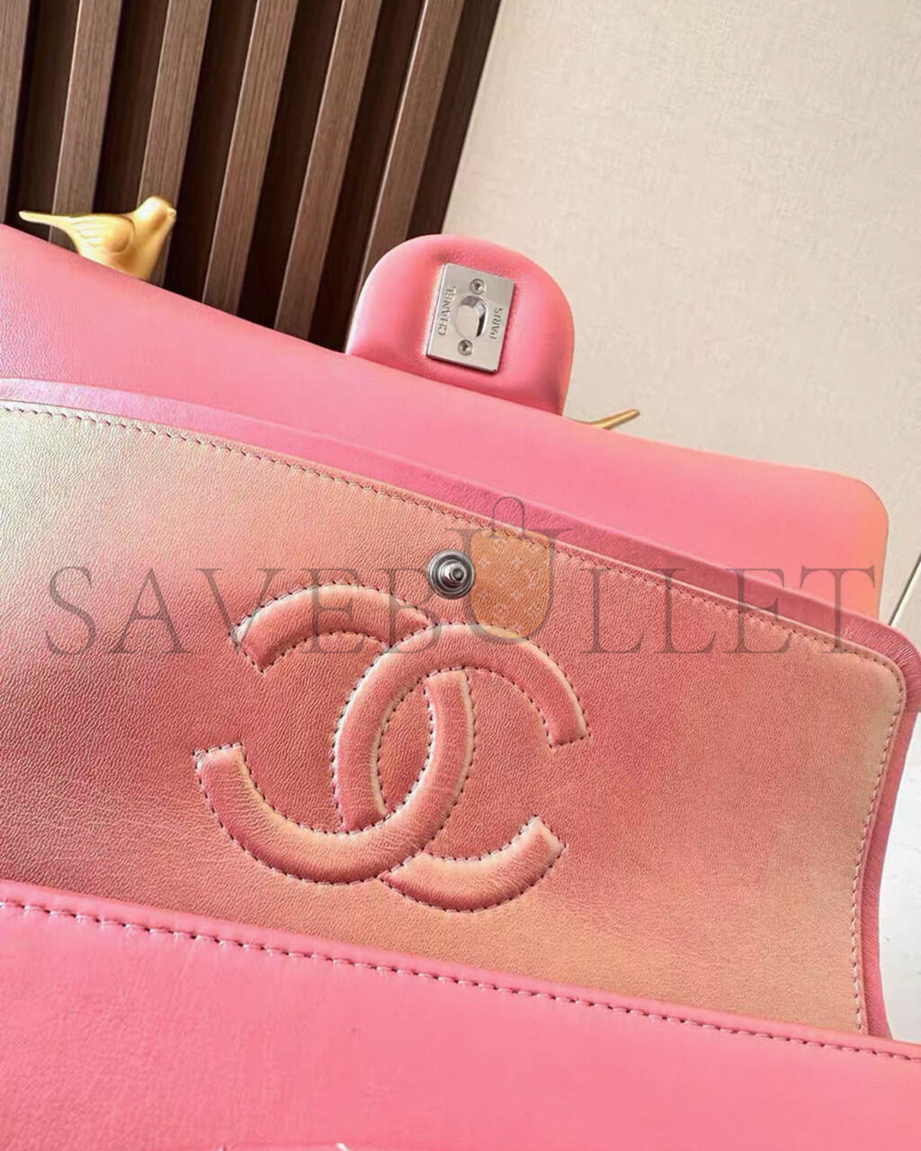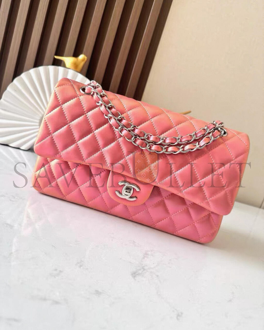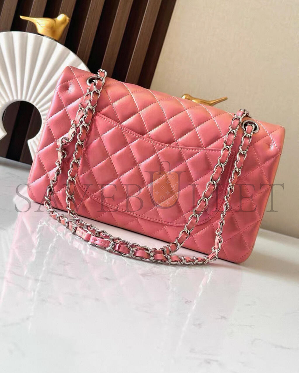 CHANEL IRIDESCENT PINK LAMBSKIN MEDIUM CLASSIC FLAP BAG A01112 (25.5*15*6cm)