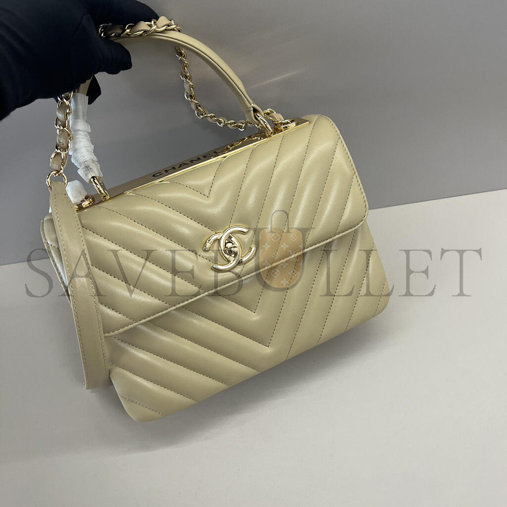 CHANEL TRENDY CC TOP HANDLE BAG CHEVRON LAMBSKIN (25*17.5*8cm)