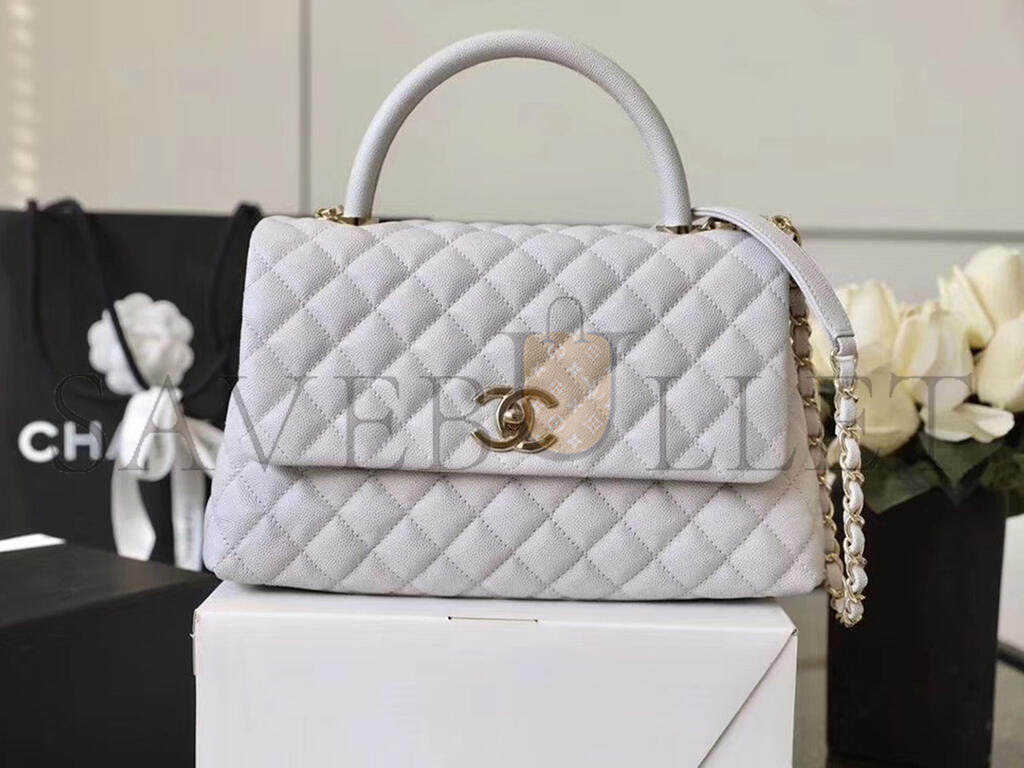 CHANEL MASTER SMALL COCO HANDLE BAG IN CALFSKIN HANDLE LIGHT GREY A92991 (29*19*12cm)