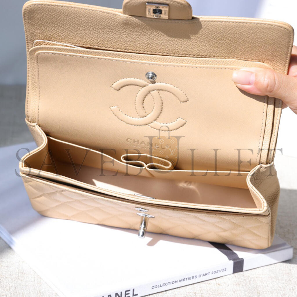 CHANEL MASTER CAVIAR QUILTED JUMBO DOUBLE FLAP BEIGE (23*14.5*6cm)