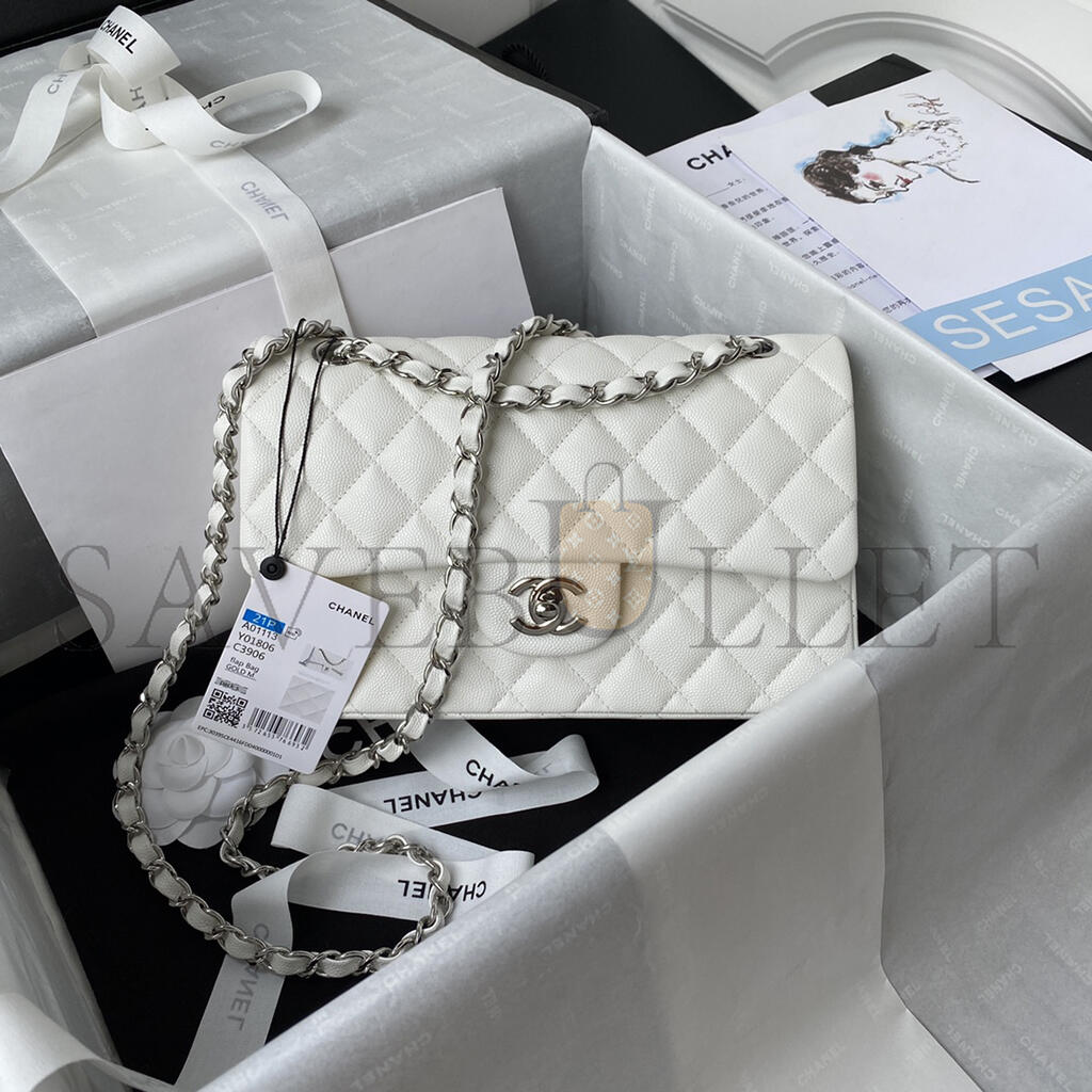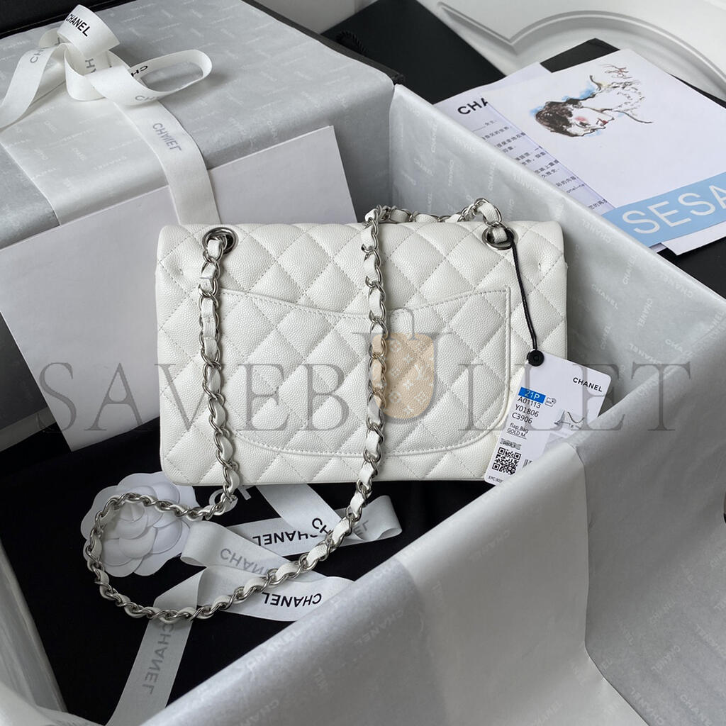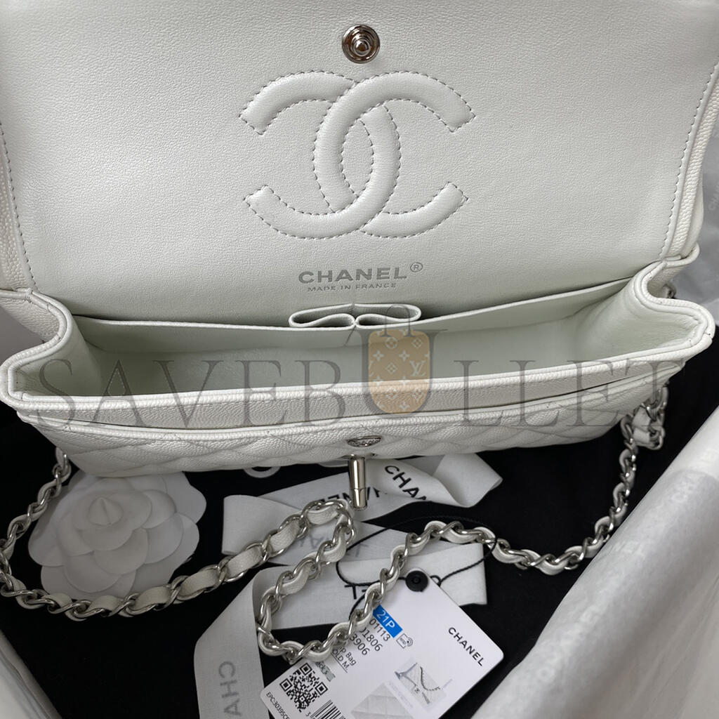 CHANEL MASTER WHITE CAVIAR SMALL CLASSIC FLAP BAG A01113 (23*14.5*6cm)