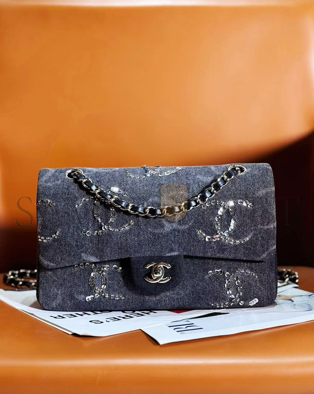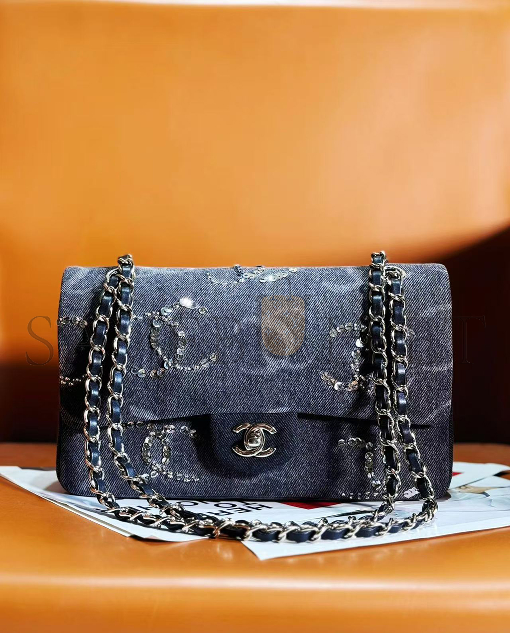 CHANEL MASTER MEDIUM DENIM SEQUIN CC CLASSIC FLAP A01113 (25.5*15.5*6.5cm)