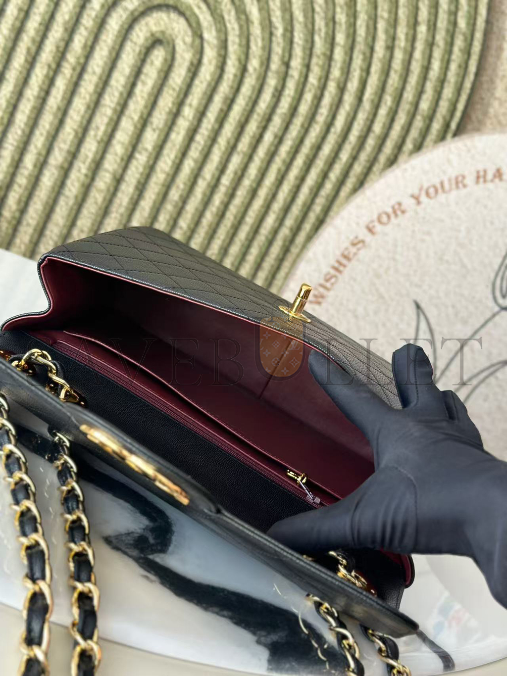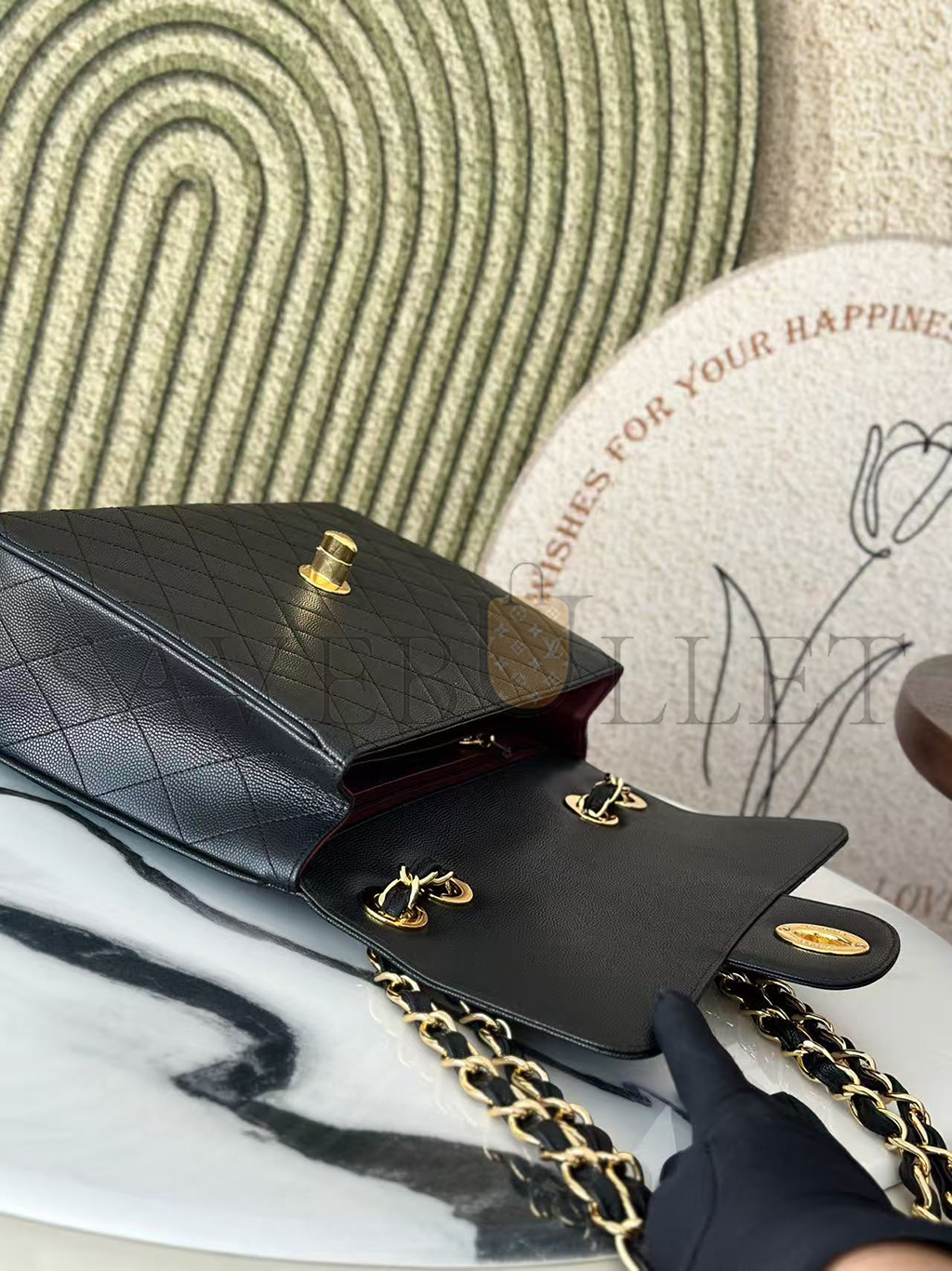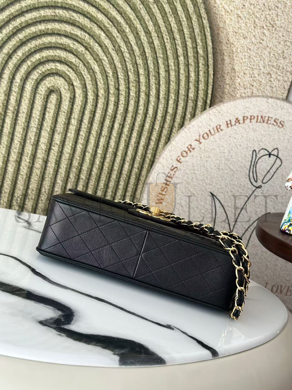 CHANEL VINTAGE BLACK CAVIAR CLASSIC FLAP BAG (34*22*10cm)