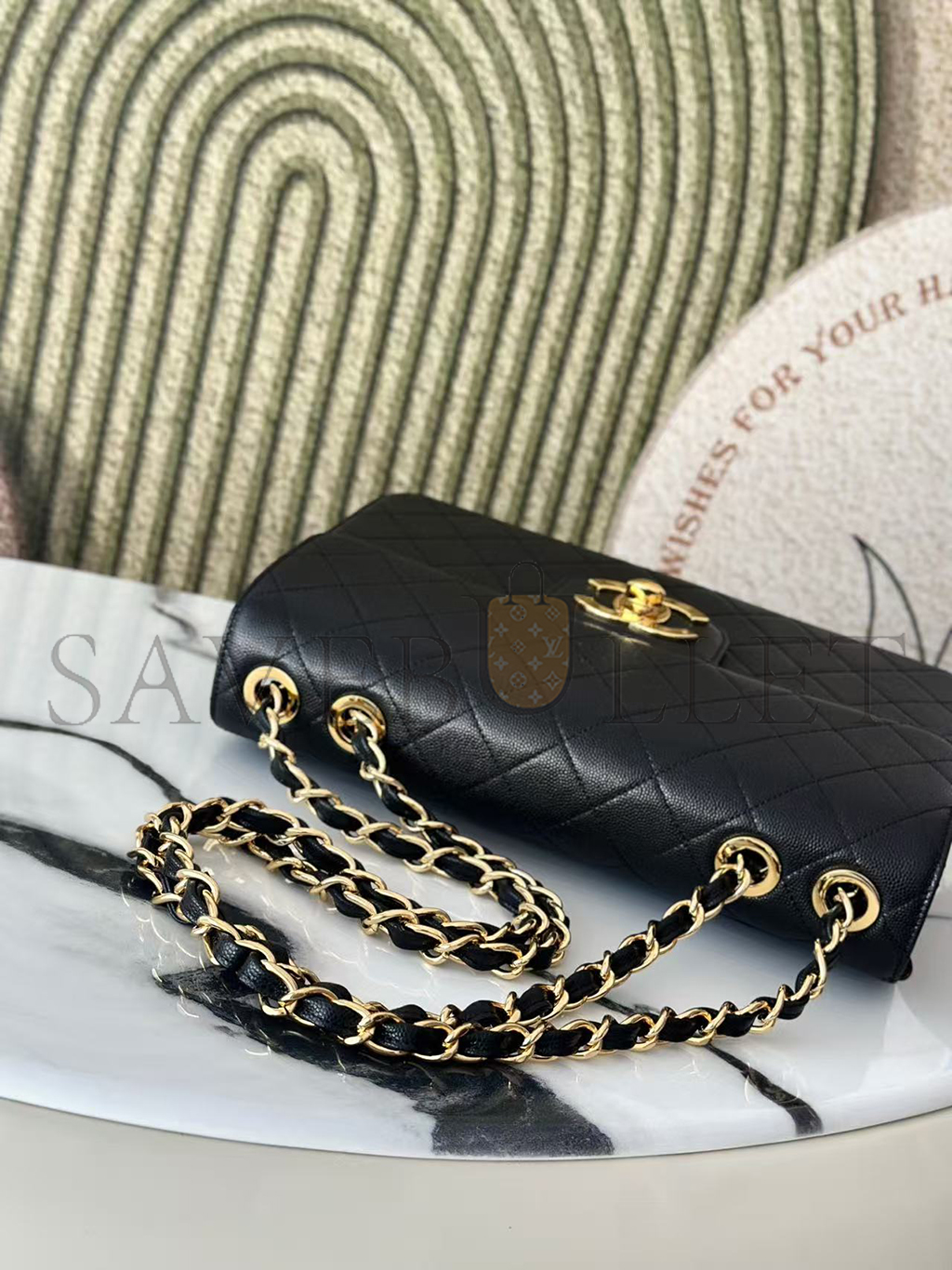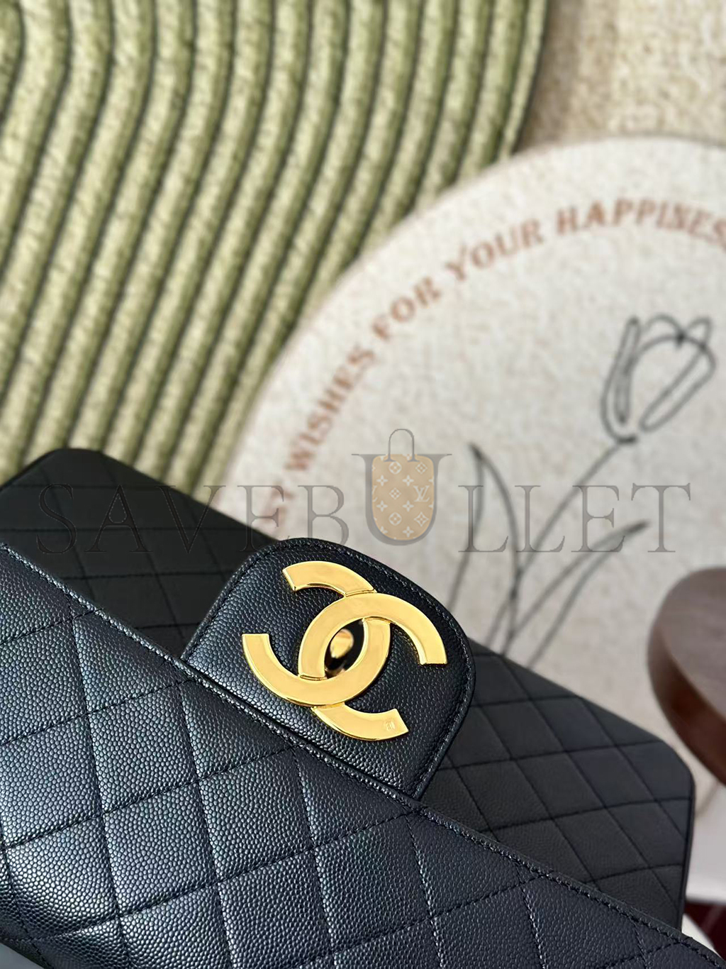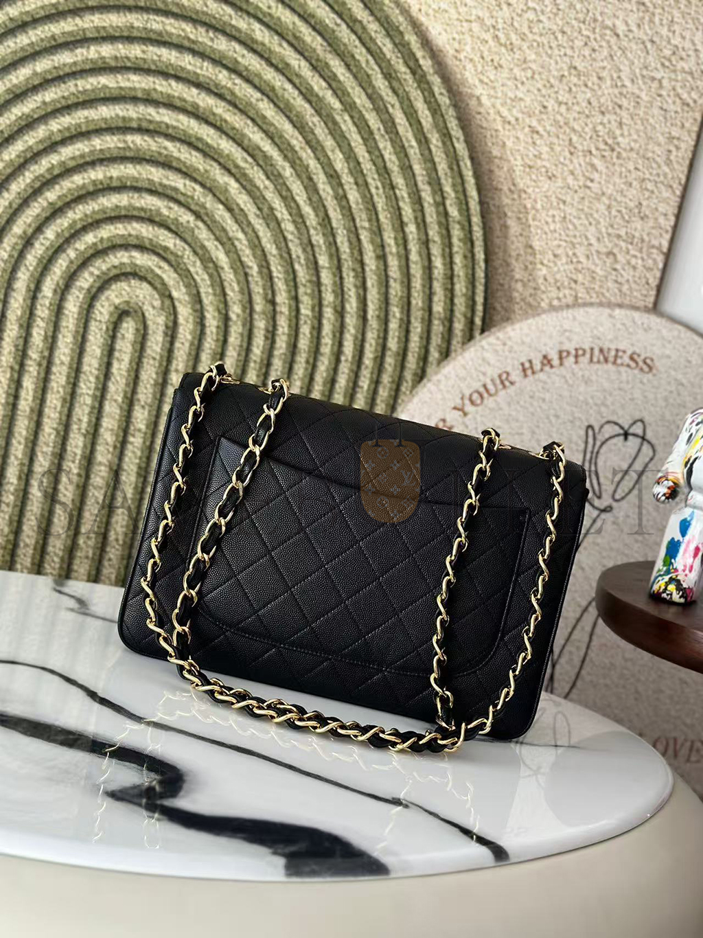 CHANEL VINTAGE BLACK CAVIAR CLASSIC FLAP BAG (34*22*10cm)