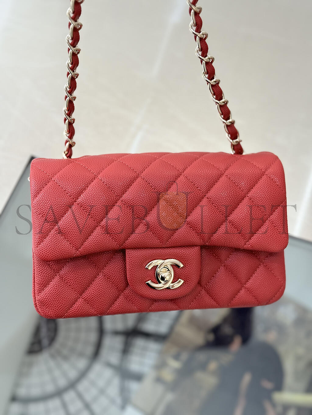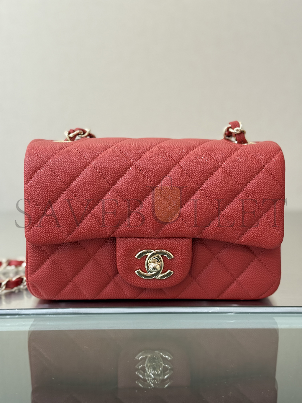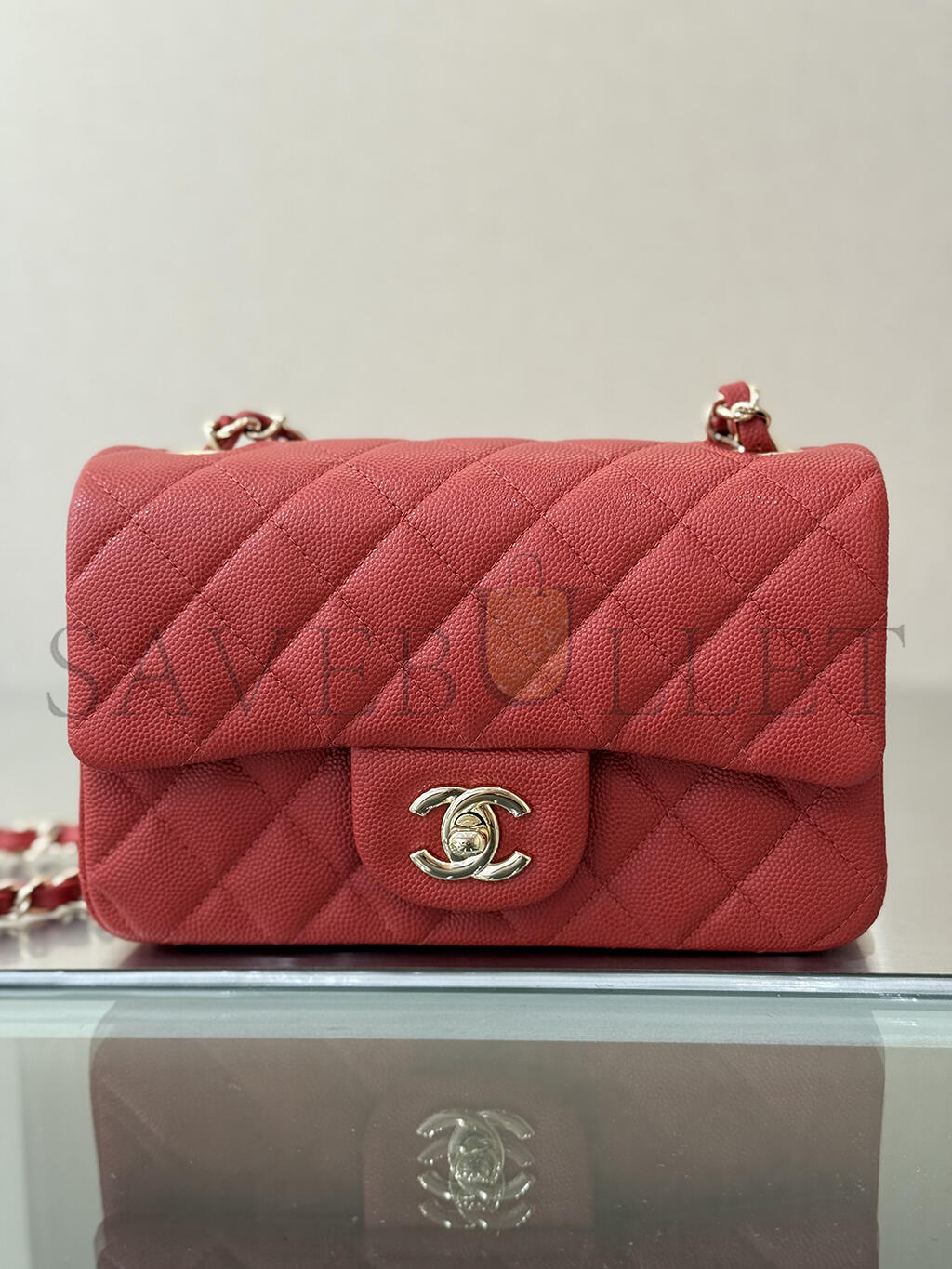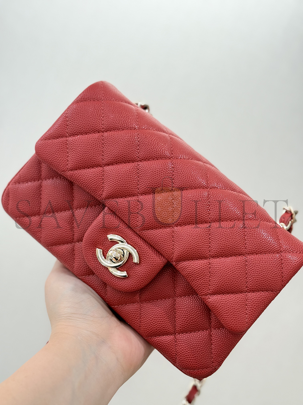 CHANEL MASTER MINI CLASSIC FLAP SHOULDER CAVIAR LEATHER RED (20*12*6cm)