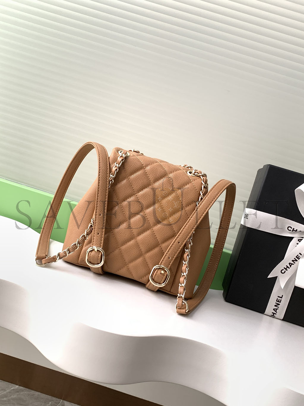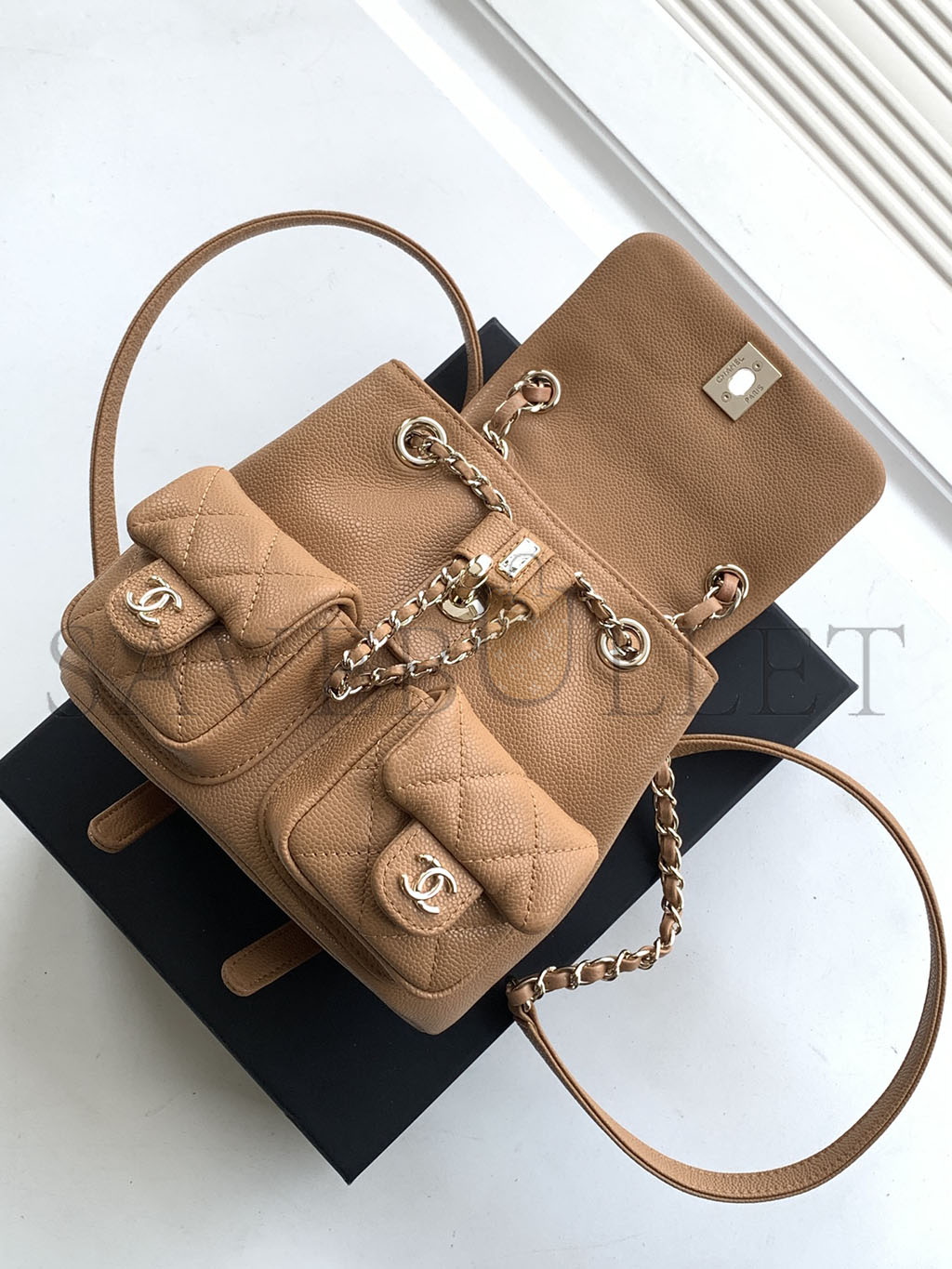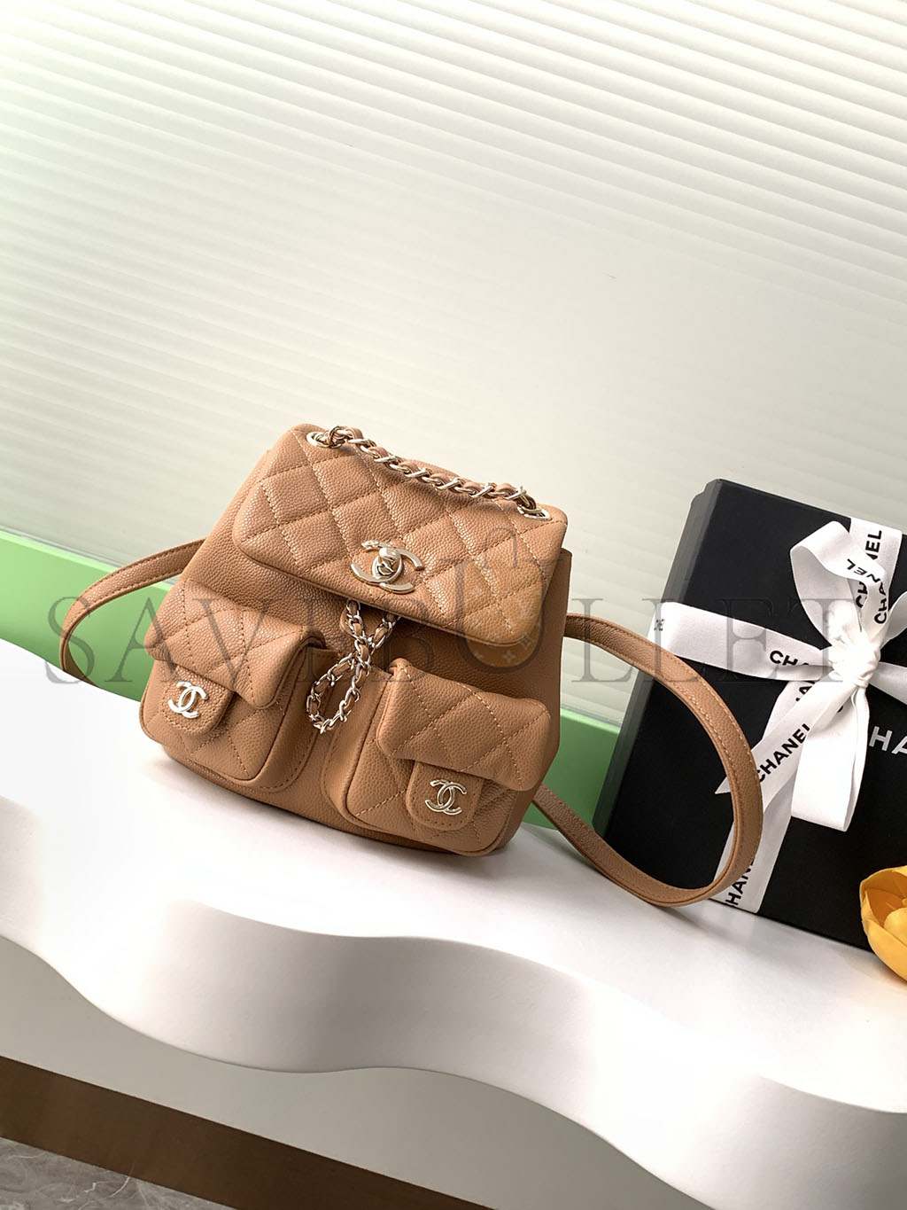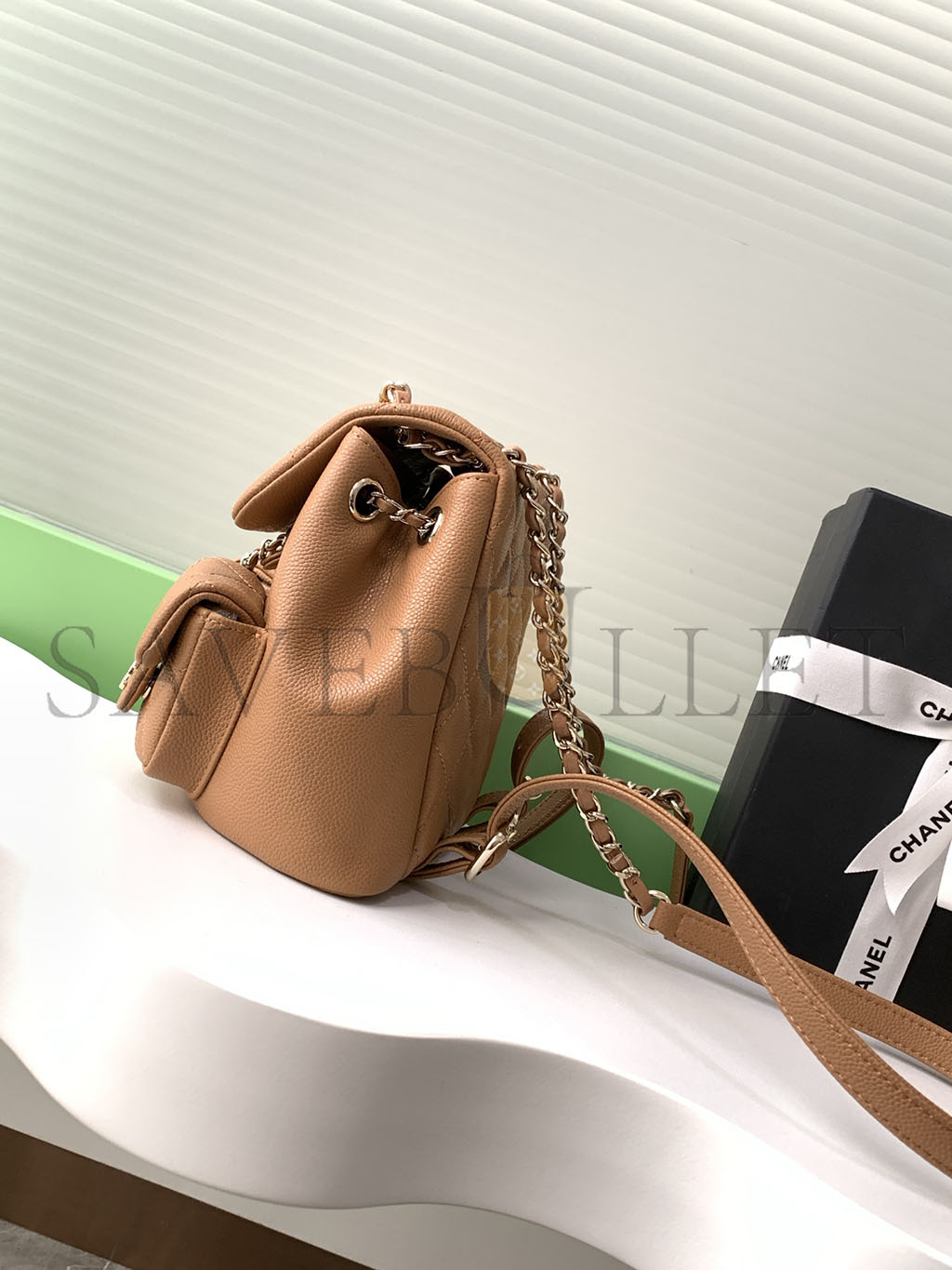 CHANEL MASTER DUMA BACKPACK SMALL BEIGE CAVIAR AS3787 (17.5*16.5*10cm)