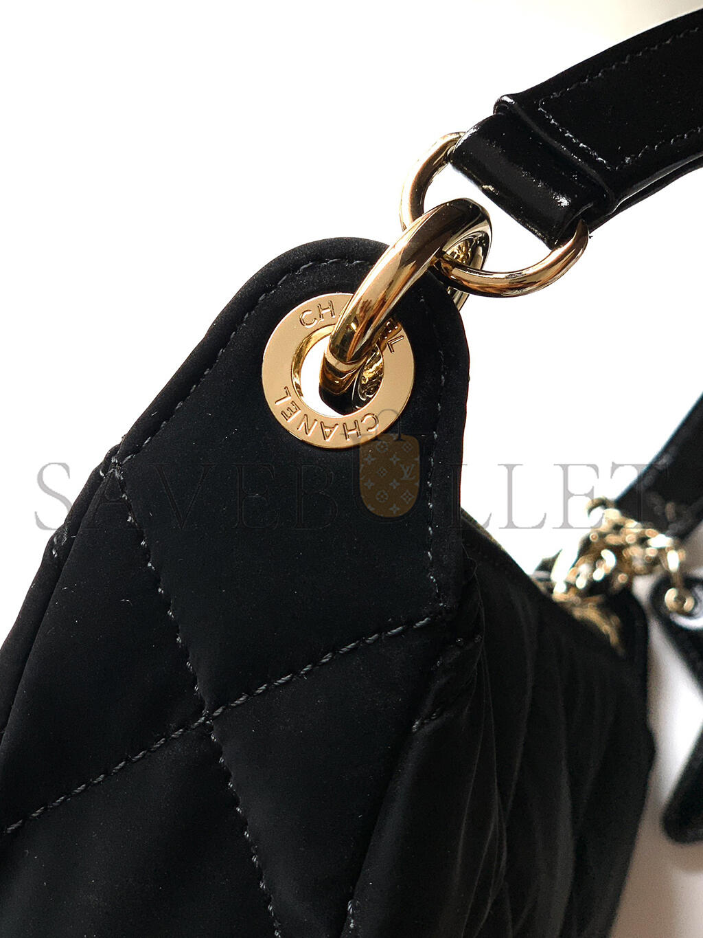 Velvet-Effect Nylon, Shiny Crumpled Calfskin & Gold-Tone Metal