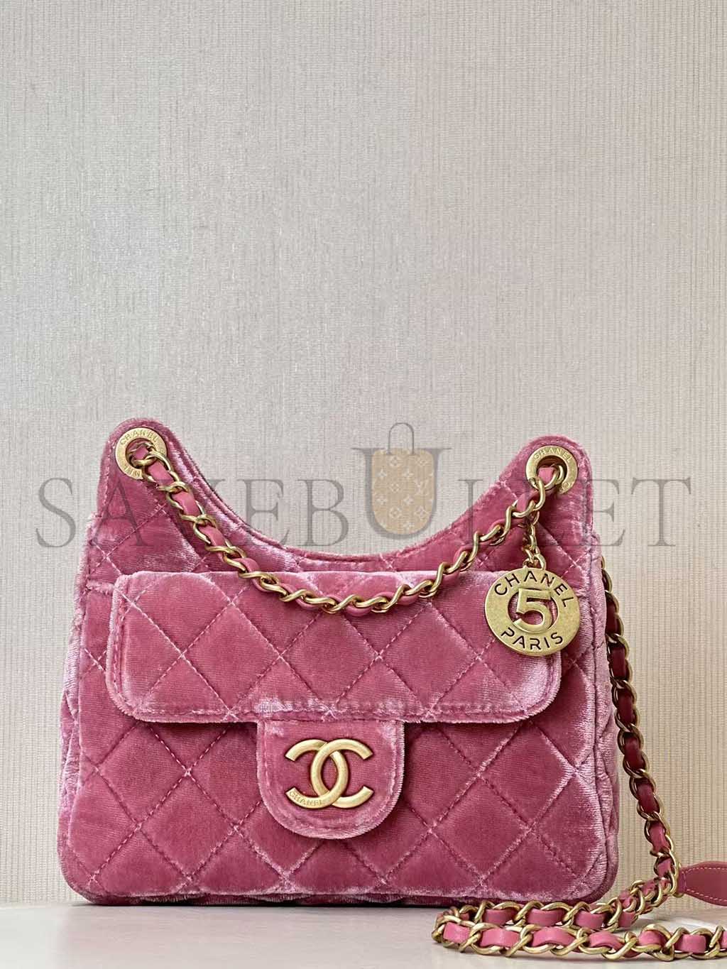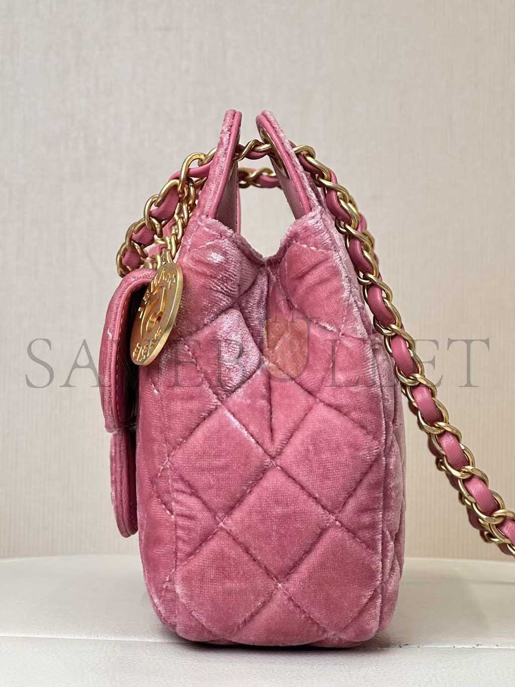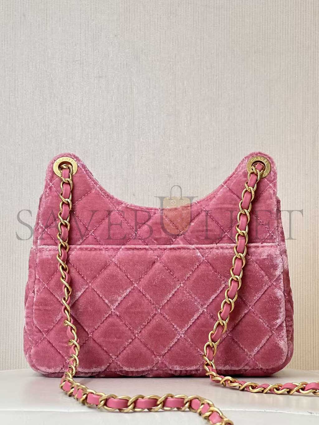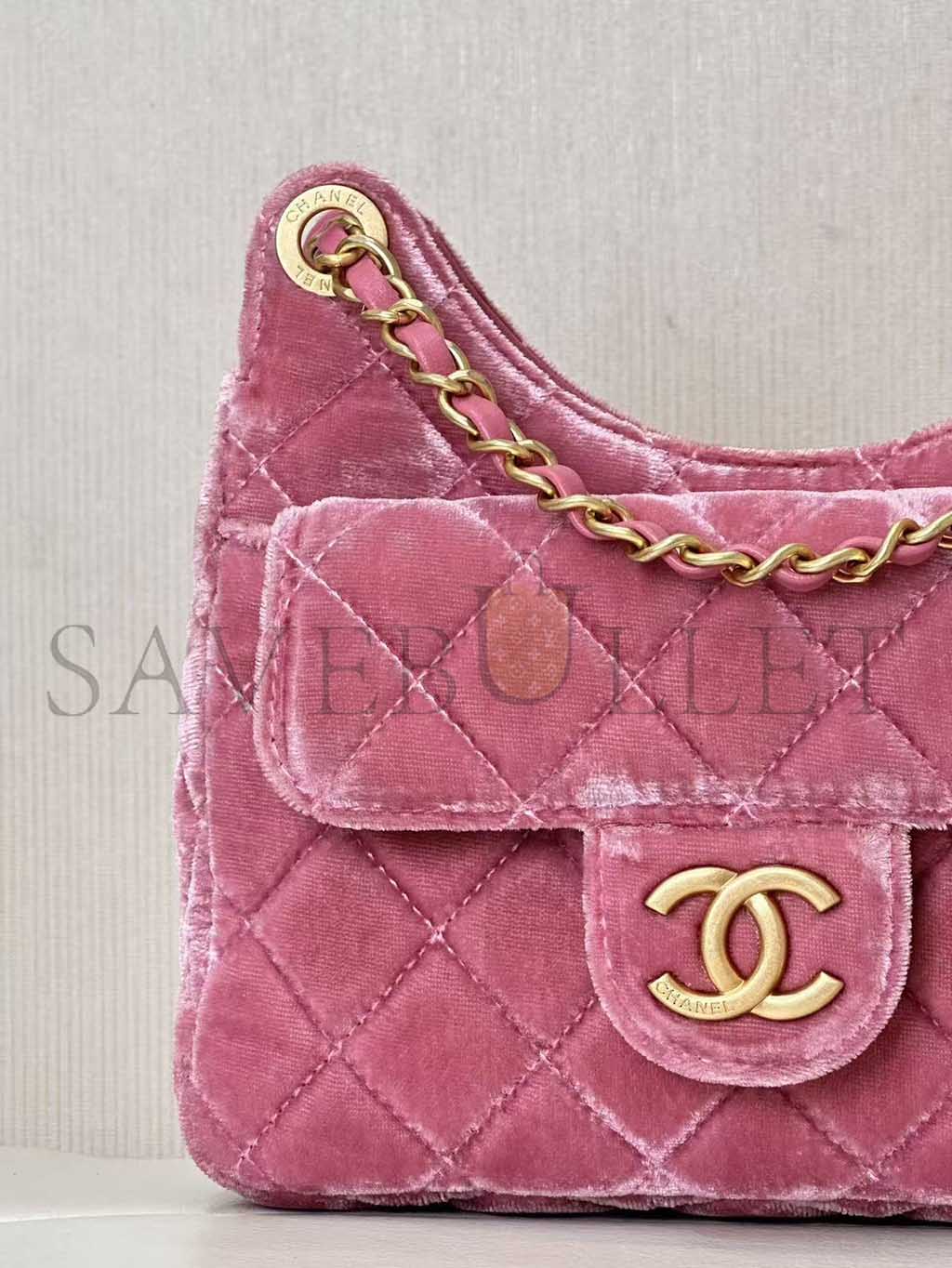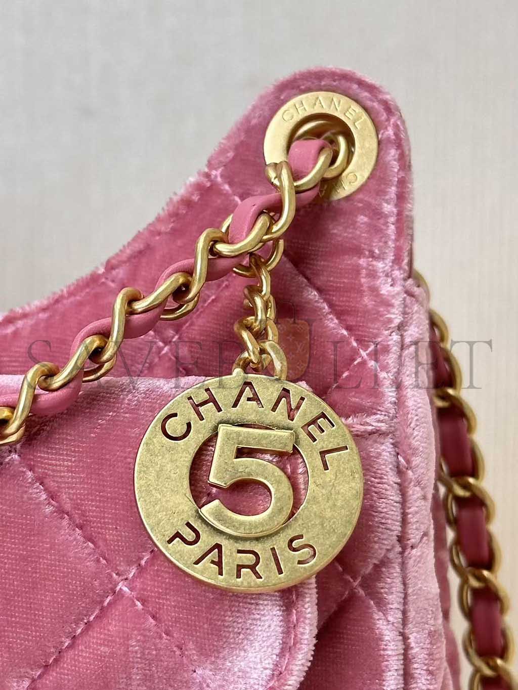 CHANEL MASTER WAVE CC HOBO SMALL PINK VELVET AS4323 (19*17*6cm)
