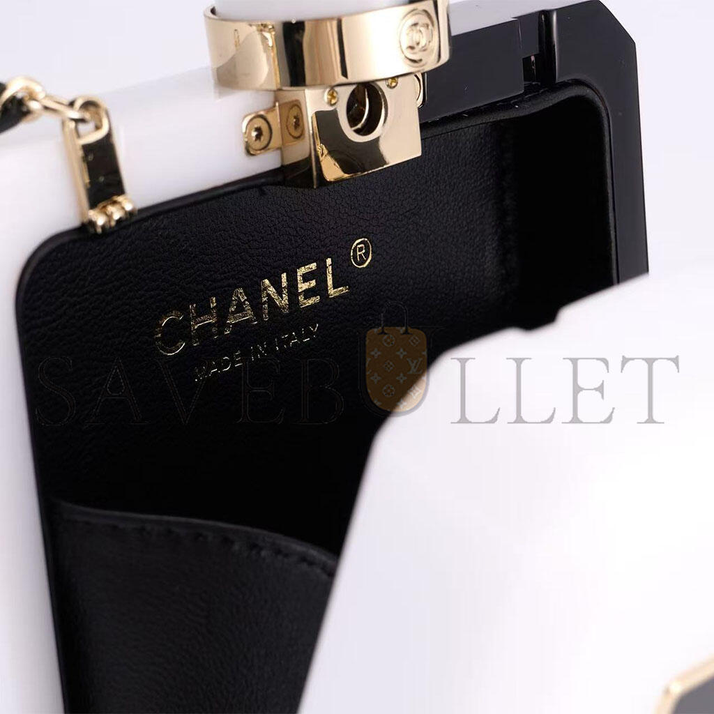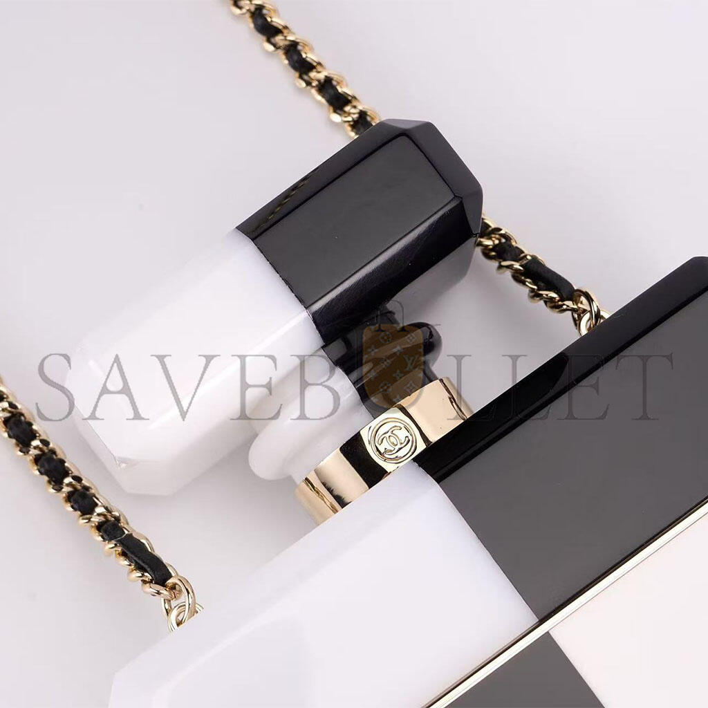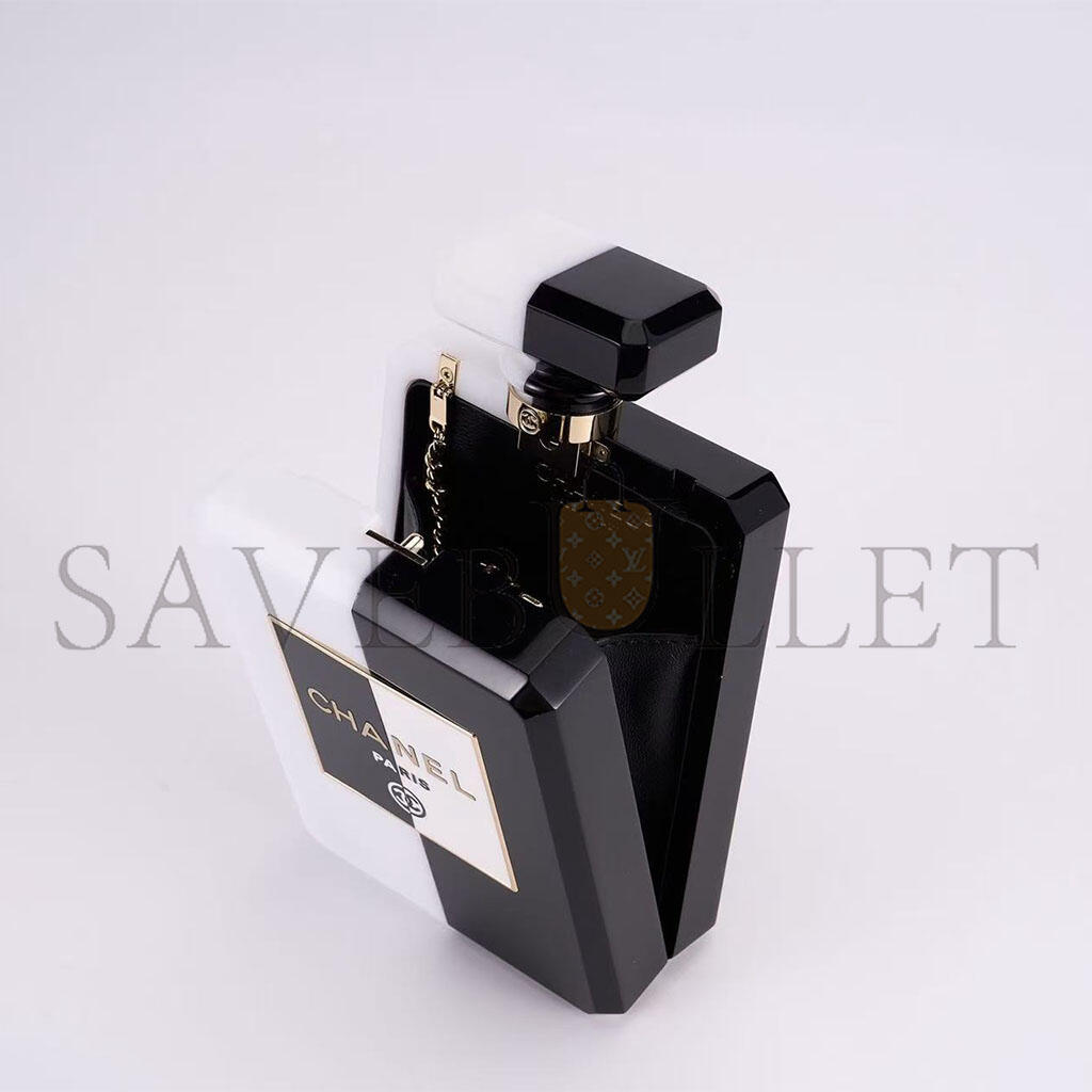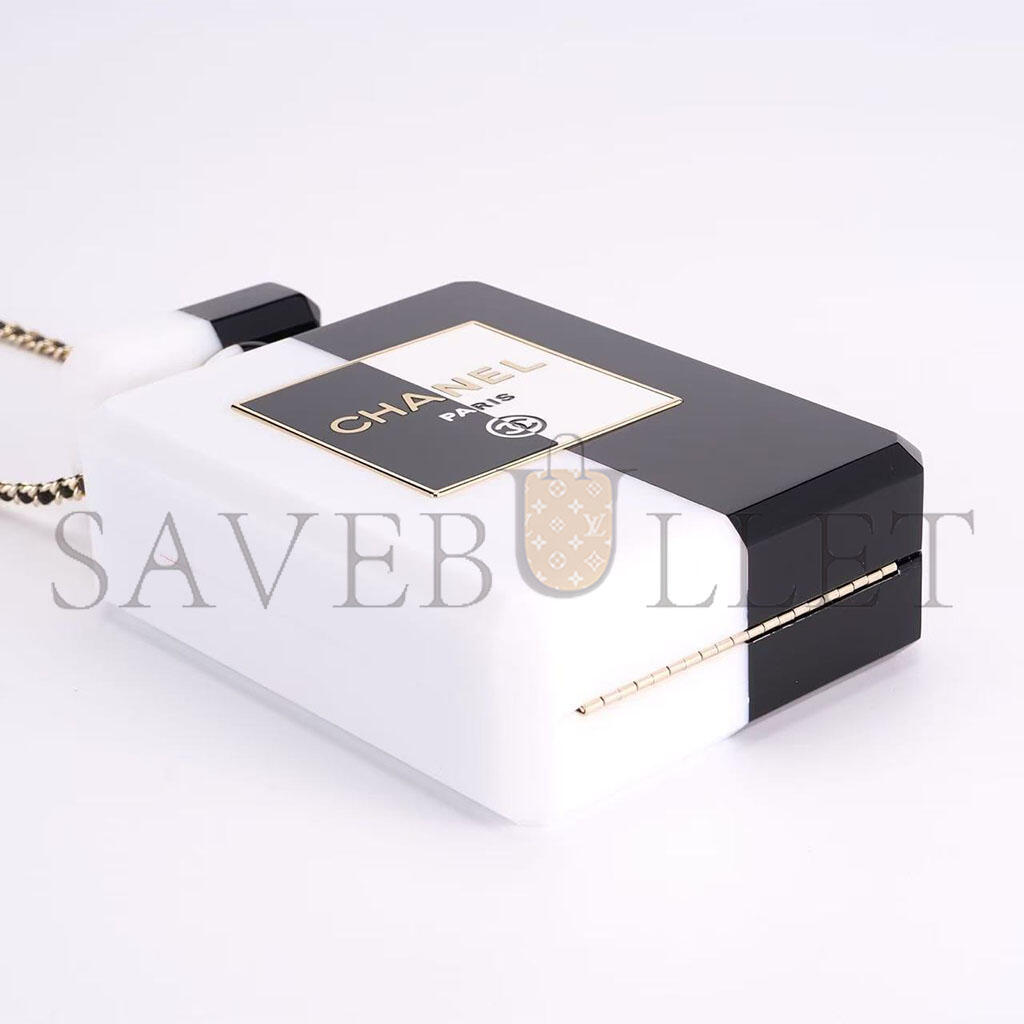 CHANEL MASTER WHITE BLACK PLEXIGLASS PERFUME BOTTLE CLUTCH (20*12*4cm)