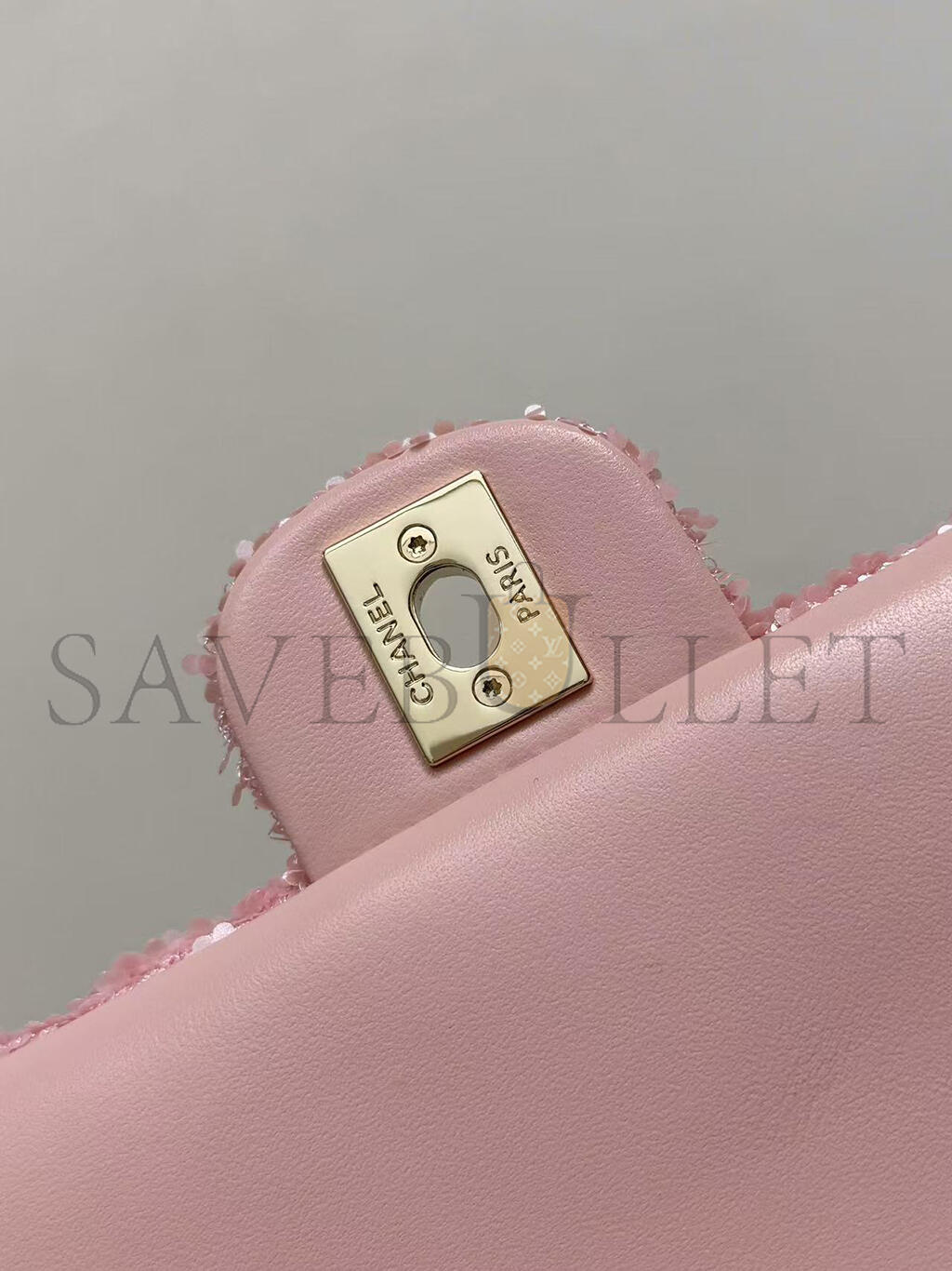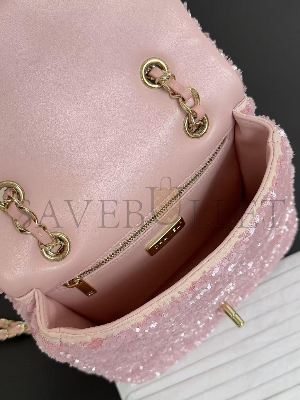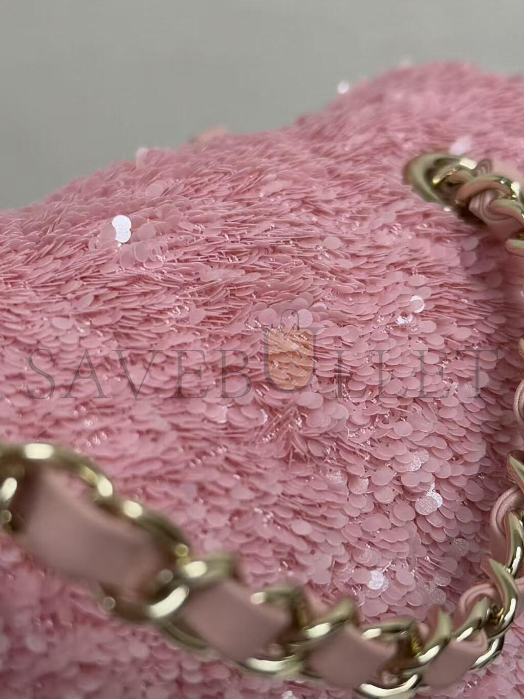 CHANEL QUILTED SEQUINS & GOLD-TONE METAL PINK BACKPACK AS5711 (21*17*7cm)