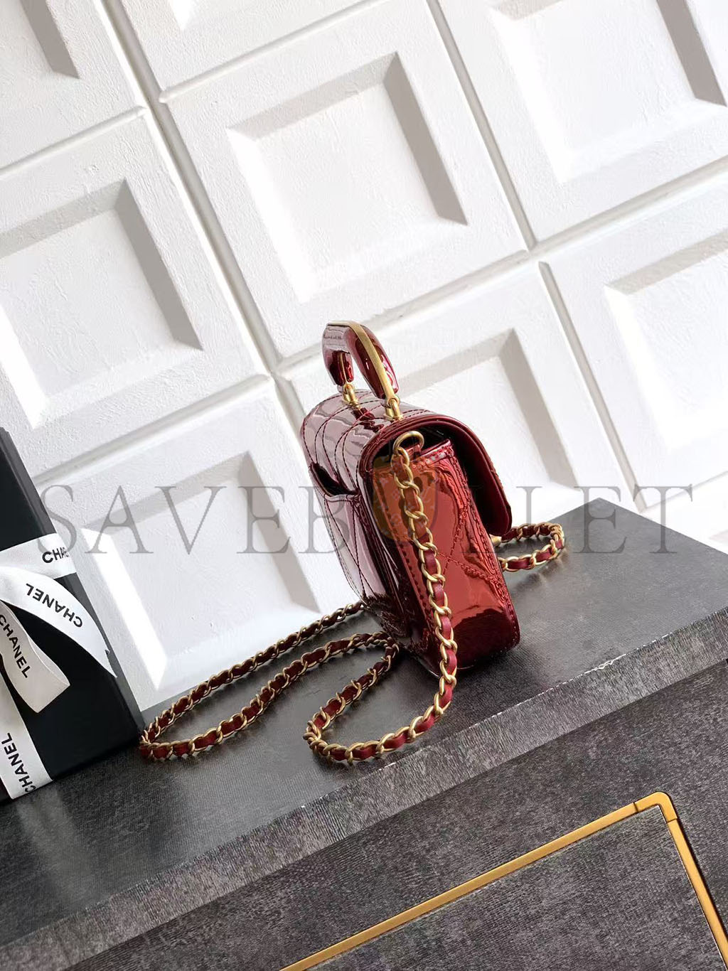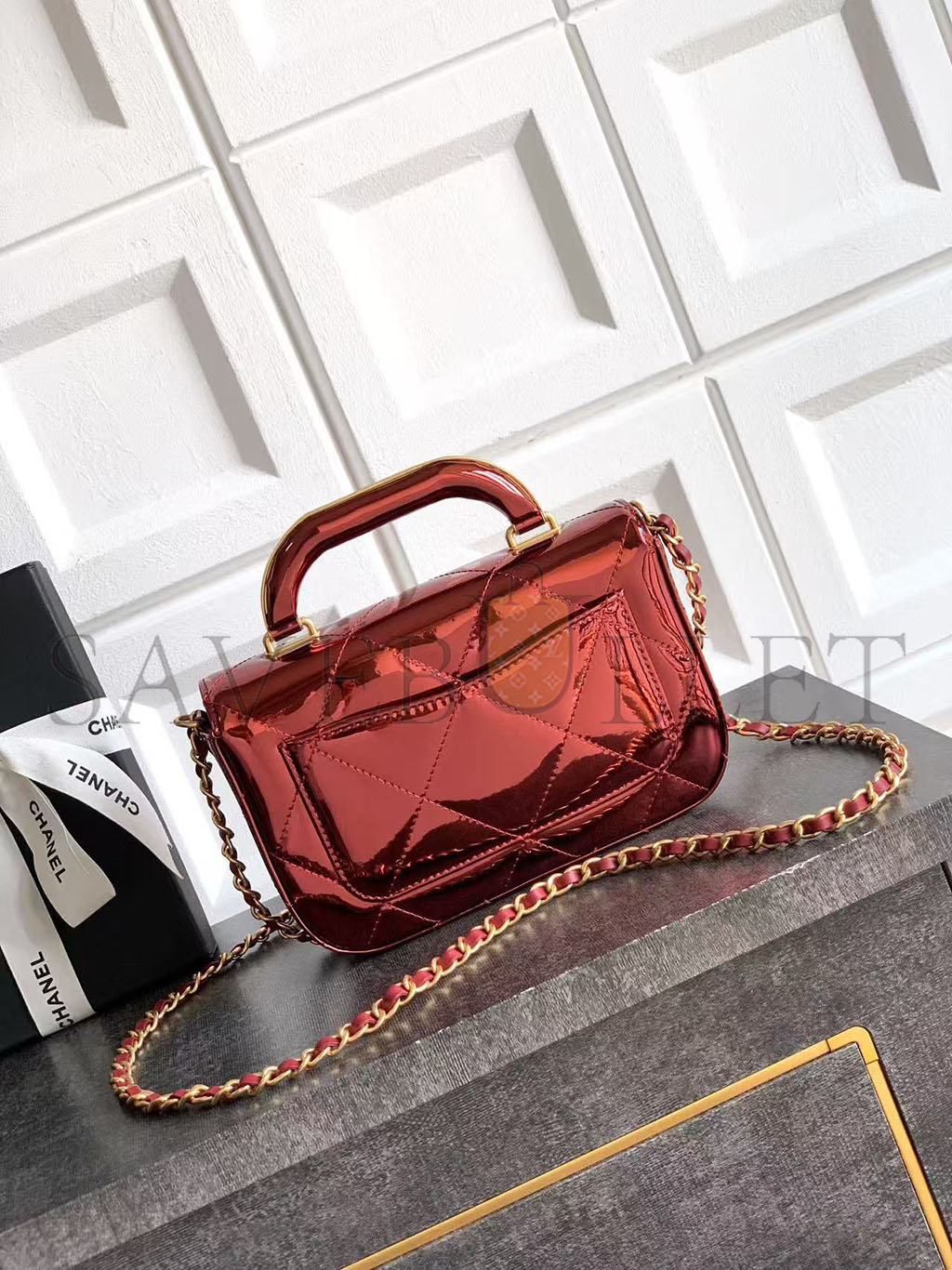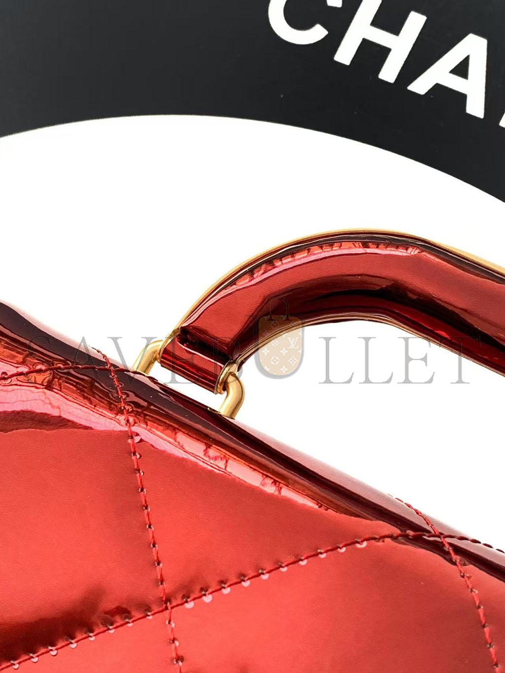 CHANEL FLAP BAG WITH TOP HANDLE METALLIC MIRROR CALFSKIN & GOLD-TONE METAL BURGUNDY AS5850 (18.5*12.9*4.5cm)