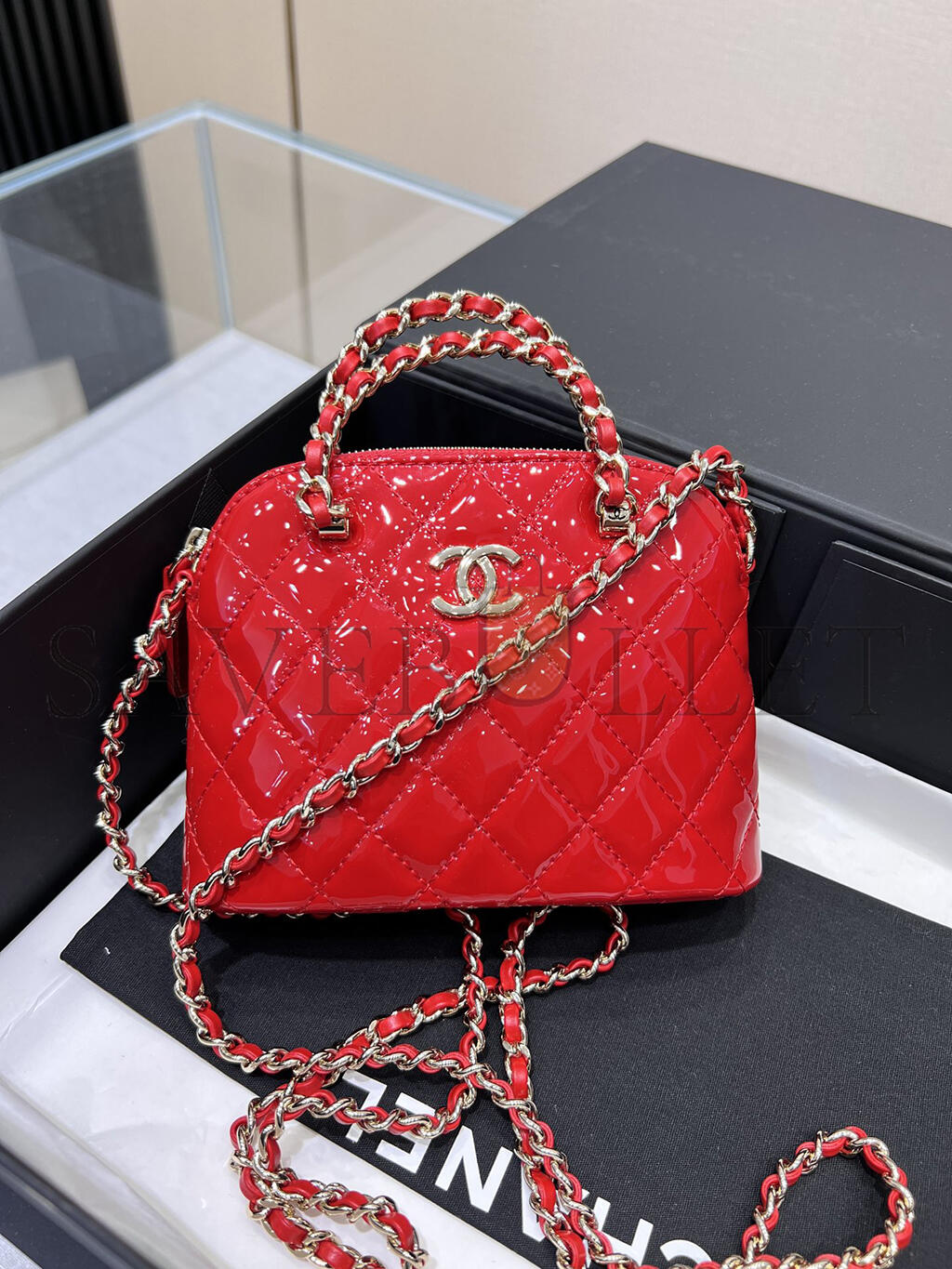CHANEL 23S PATENT CALFSKIN QUILTED CLUTCH WITH CHAIN AP3354 (16*11*5.5cm)