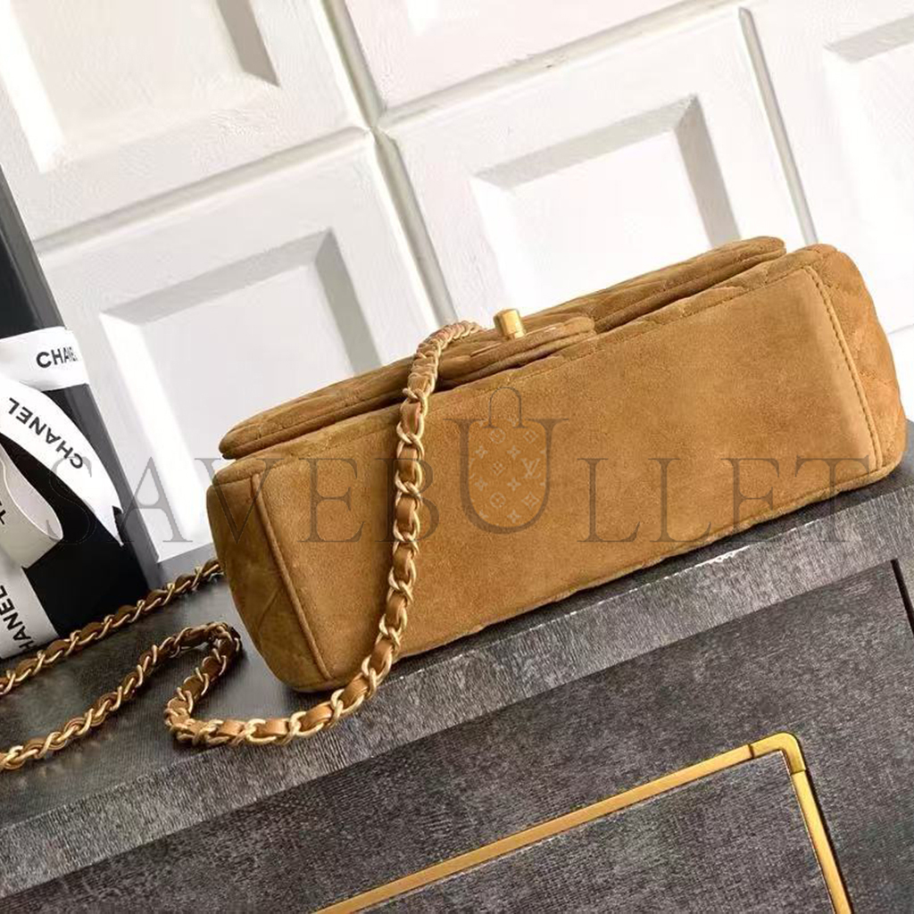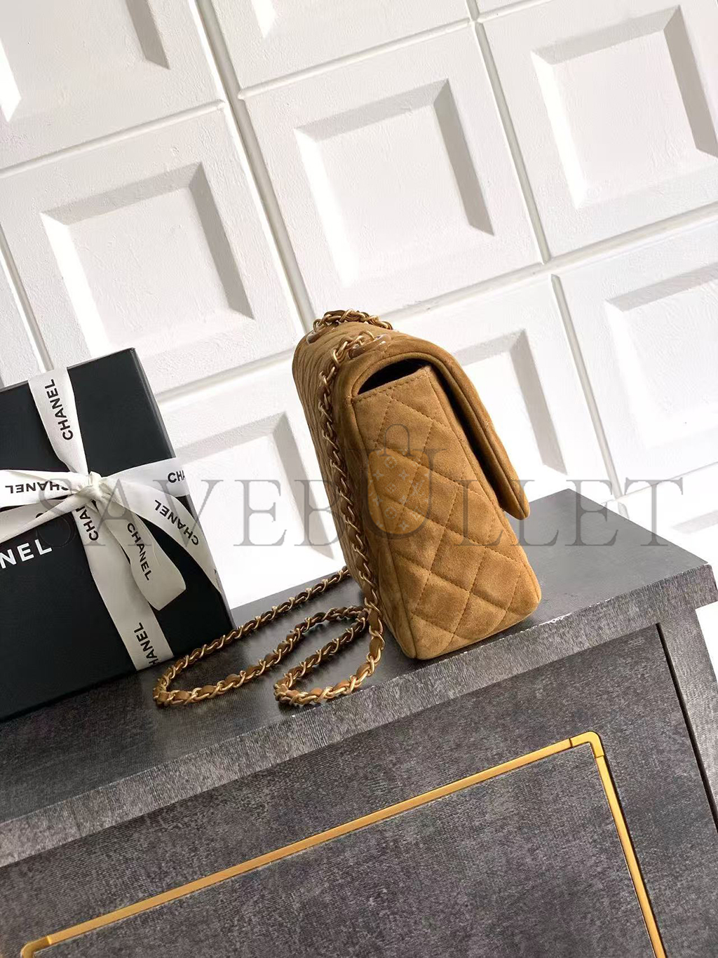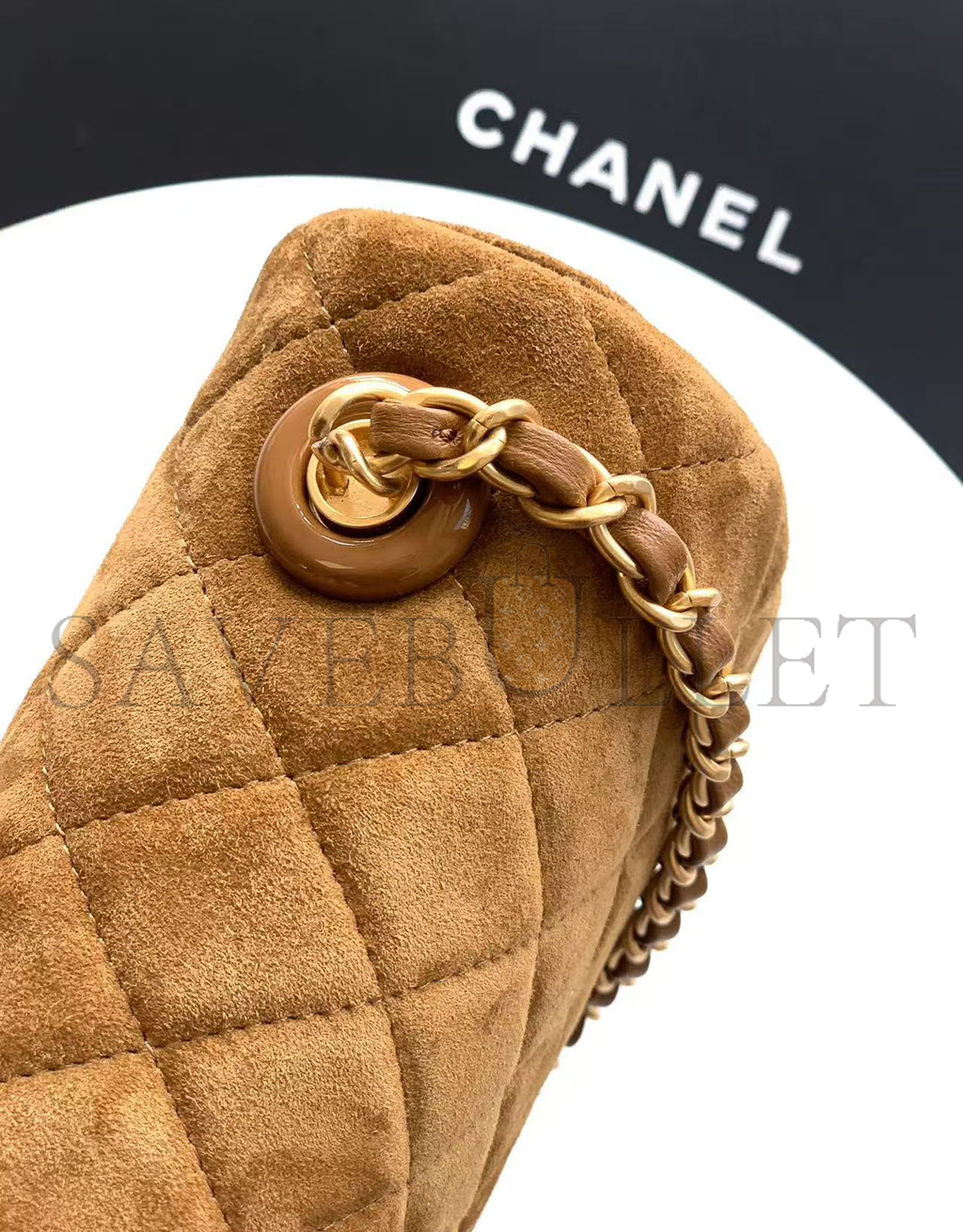 CHANEL FLAP BAG SUEDE CALFSKIN, LAMBSKIN & GOLD-TONE METAL DARK BEIGE AS5987 (26*18*7cm)