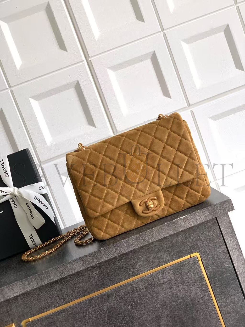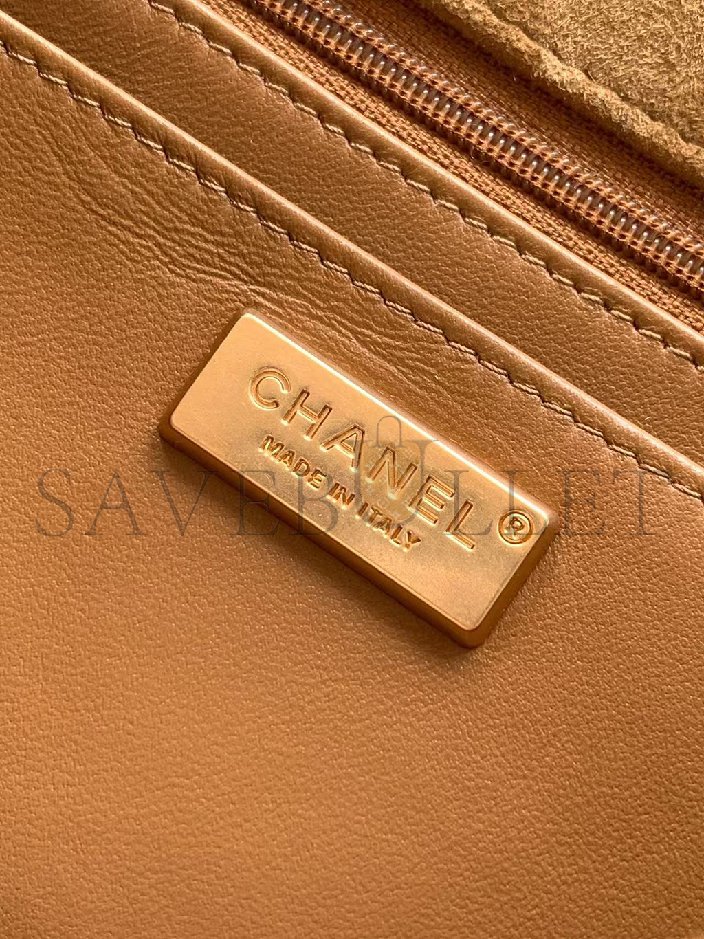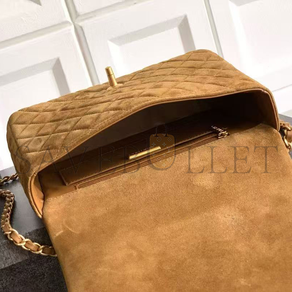 CHANEL FLAP BAG SUEDE CALFSKIN, LAMBSKIN & GOLD-TONE METAL DARK BEIGE AS5987 (26*18*7cm)